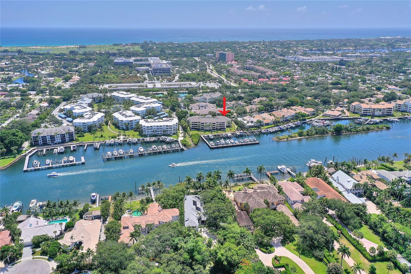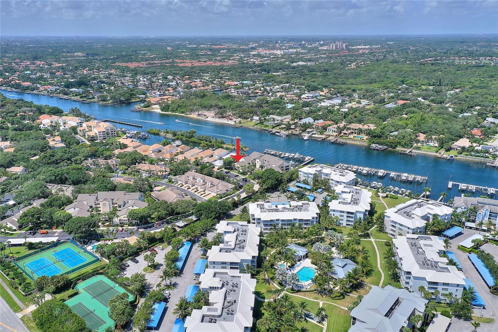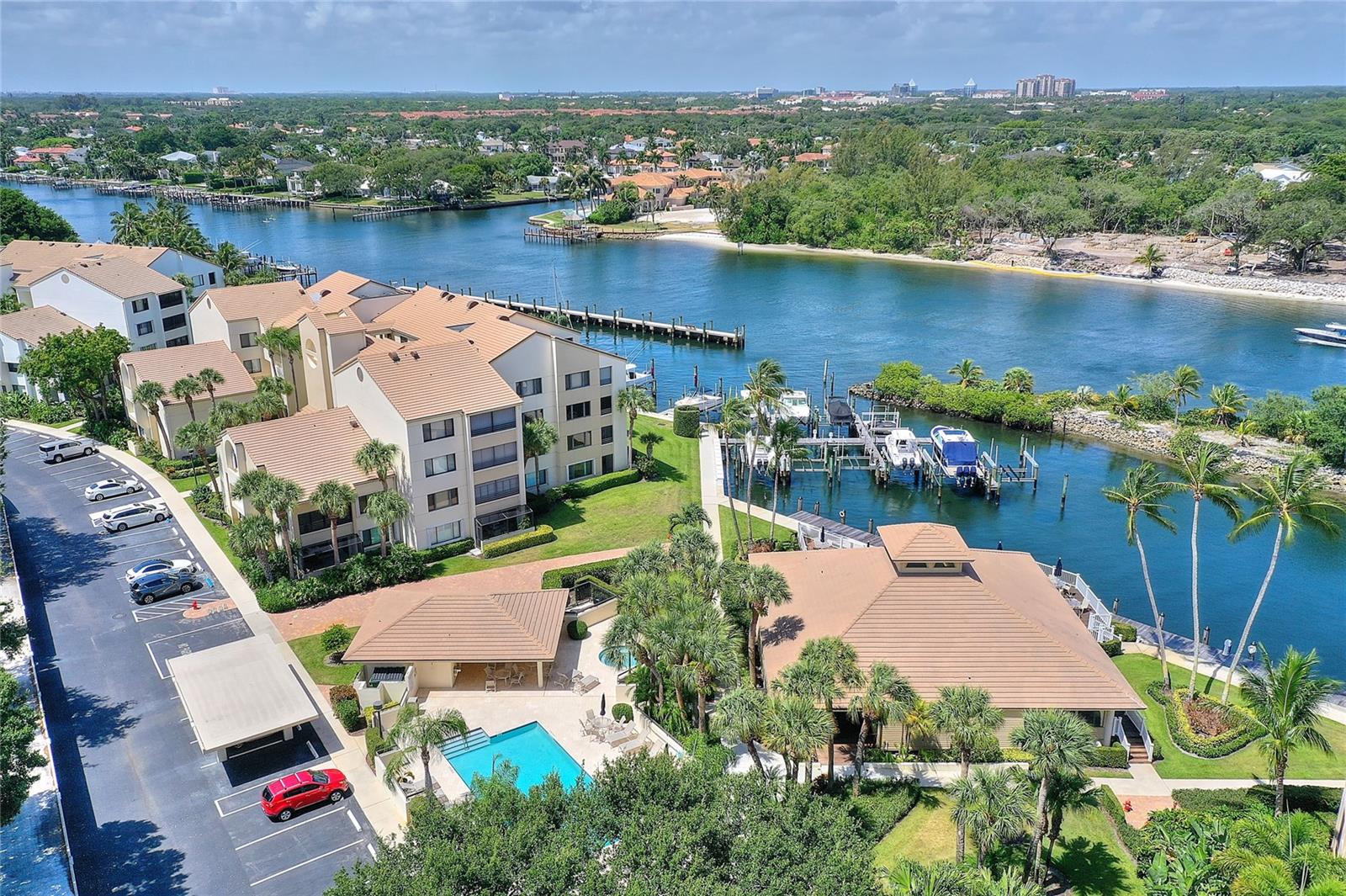 BOATERS PARADISE. CONDO AND DOCK. Beautiful waterfront condo first floor end unit a few steps to your boat dock. Dock is D-08 and has electric & water with a 20000 pound boat lift. Built in 2020. This is nestled amongst a gorgeous tree lines streets and mature landscaping. 2 bedroom and 2 bathrooms. Open floor plan. Screened in patio with a peek of Intracoastal. Clubhouse and fitness center, 2 pools, tennis courts. Resort style living with the beach and restaurants close by. Easy, relaxed living with all of the best of Florida has to offer.
