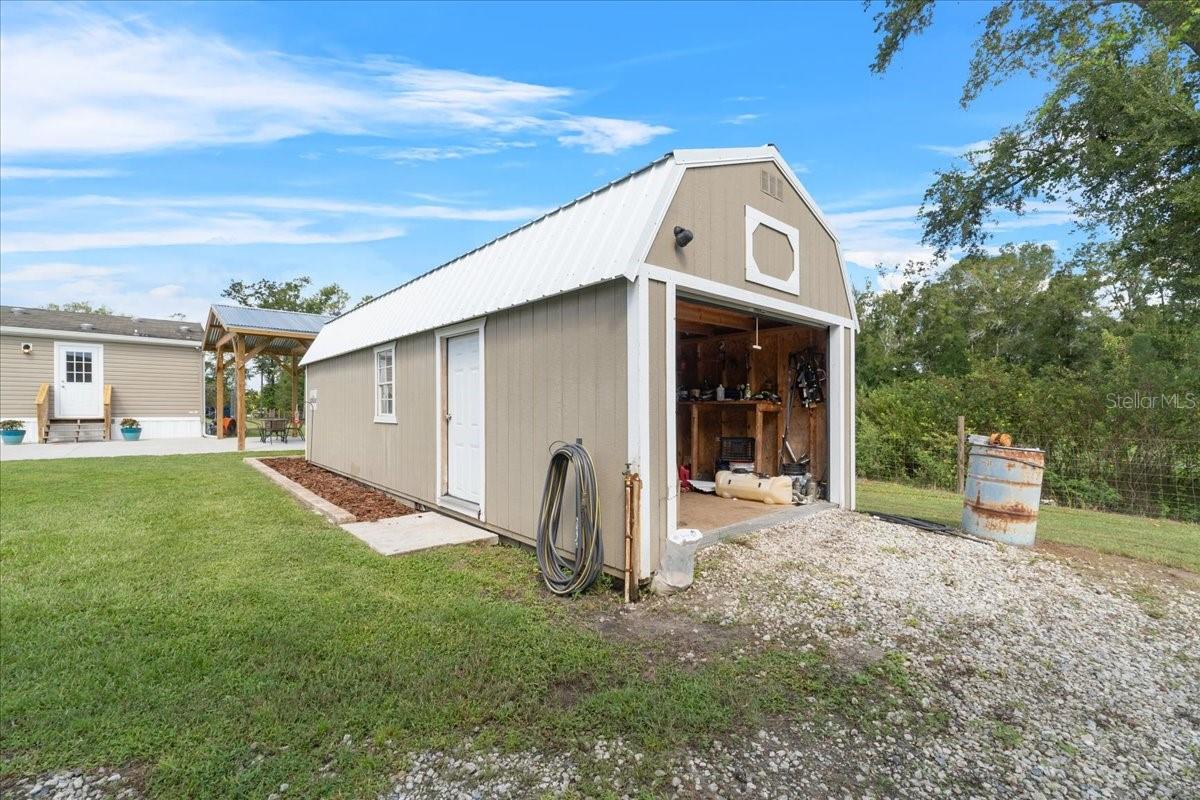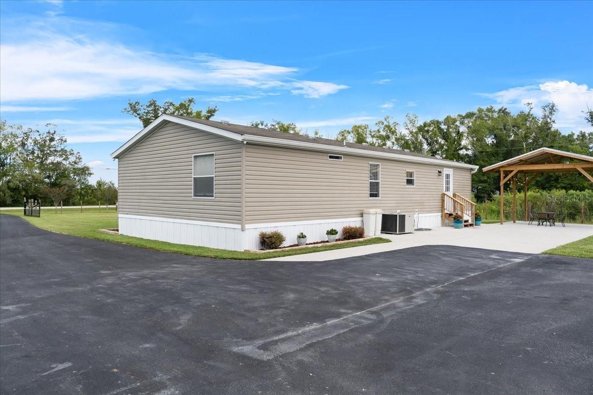 Nestled on over 3 acres of land (approx 1.5 is fenced), this 2018 manufactured home offers a blend of rural tranquility and functional space. With 3 bedrooms and 2 bathrooms, this property is ideal for those seeking a homestead with room to grow. The home site and surrounding area have been carefully elevated, ensuring it's always high and dry and ready for your needs. The commercial-grade driveway is designed to accommodate heavy trucks and equipment, making it a perfect fit for those with a business requiring vehicle space or large machinery. A spacious pole barn provides shelter for your boat, RV, or any outdoor toys, while a sizable storage shed offers ample room for all your tools and equipment. The backyard features a large concrete patio area complete with a charming gazebo, the perfect spot to unwind and enjoy peaceful evenings. This home also features a water softener and reverse osmosis system to ensure the best water quality. This property is perfect for someone looking to establish a workshop, a business requiring commercial vehicles, or even the opportunity to build a horse property. The pride of ownership is evident throughout this well-maintained homestead, offering endless possibilities for its next owner. Don’t miss your chance to make this versatile property your own!