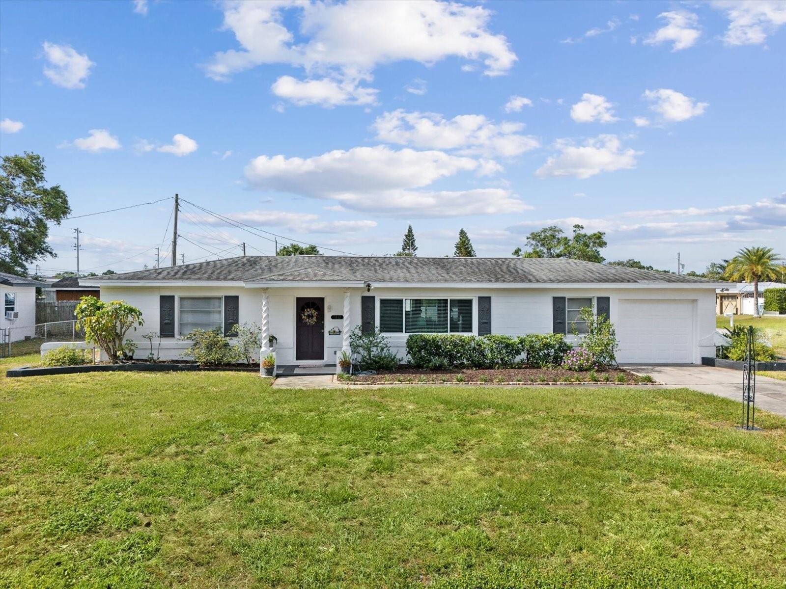 Charming 2-bedroom, 2-bathroom home located in desirable Kenneth City. Situated on a spacious corner lot, this 1,724 sq ft block home offers both living and family rooms—ideal for relaxing and entertaining. The cozy kitchen retains its classic charm with well-maintained cabinetry and countertops, providing ample storage and functionality. A new living room picture impact window was installed in 2025. New Roof will be installed prior to closing, offering added peace of mind for the future homeowner. The property also features a 1.5-car garage, perfect for additional storage or a workshop. Outdoors, enjoy the lovely yard with mature landscaping—great for gardening or outdoor activities. This home has never experienced any flooding and is located in evacuation zone E, with a current flood insurance estimate of just $920 a year. Nestled in a quiet, friendly neighborhood, it’s conveniently close to schools, parks, shopping, and other local amenities. Don’t miss this opportunity to own a beautifully maintained home in a sought-after location!