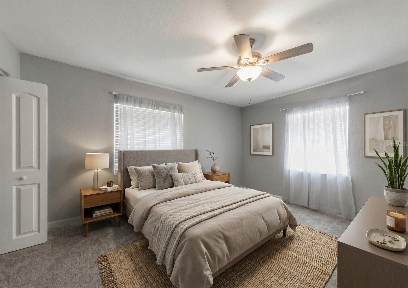 One or more photo(s) has been virtually staged. Welcome to this beautifully maintained 4-bedroom, 2-bathroom block home offering the perfect blend of comfort, functionality, and Florida outdoor living. From the moment you arrive, a grand paver circle driveway sets the tone for this impressive property. Inside, a smart split floor plan provides privacy and versatility, featuring two separate living areas ideal for entertaining or relaxing. The kitchen boasts solid wood cabinetry and flows seamlessly into a dedicated sit-down dining area — perfect for family meals and gatherings. The 4th bedroom offers flexibility as a home office or guest room, while vinyl flooring throughout keeps the home looking clean and modern. Indoor laundry adds everyday convenience. Step outside to your private backyard retreat featuring a sparkling inground pool surrounded by mature landscaping and a covered entertainment area — perfect for enjoying Florida's sunshine year-round. A large shed provides ample storage, and a dedicated fire pit area sets the stage for memorable evenings outdoors. This move-in ready home checks every box — don't miss your chance to make it yours!