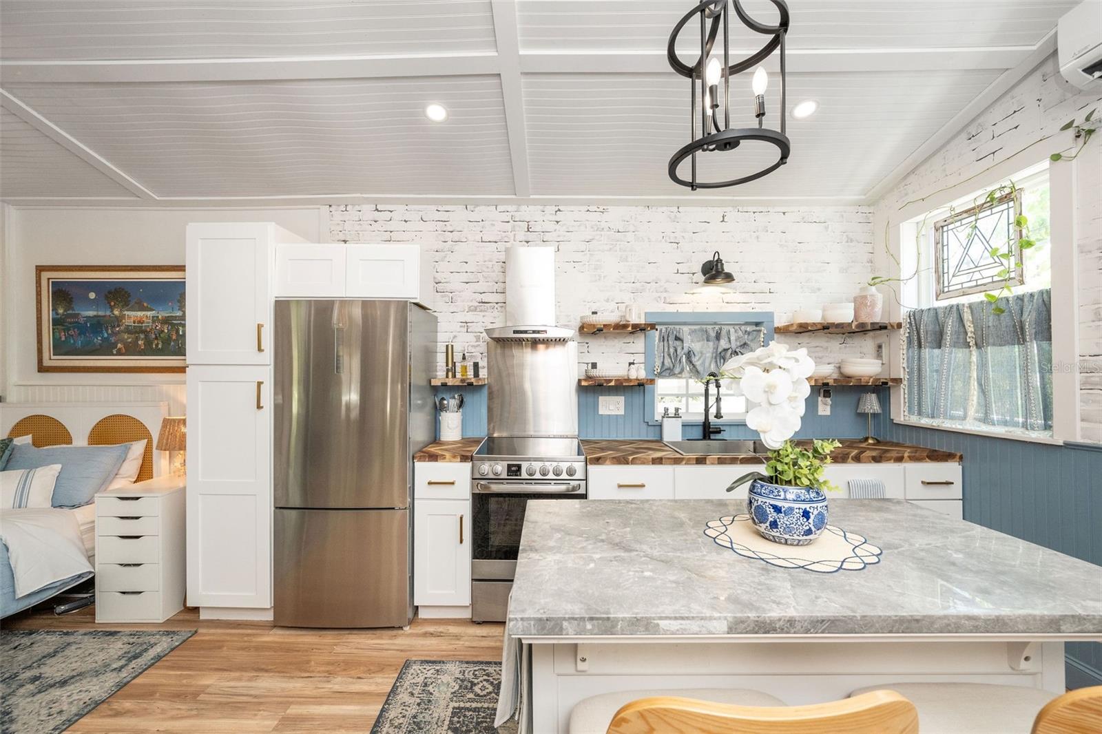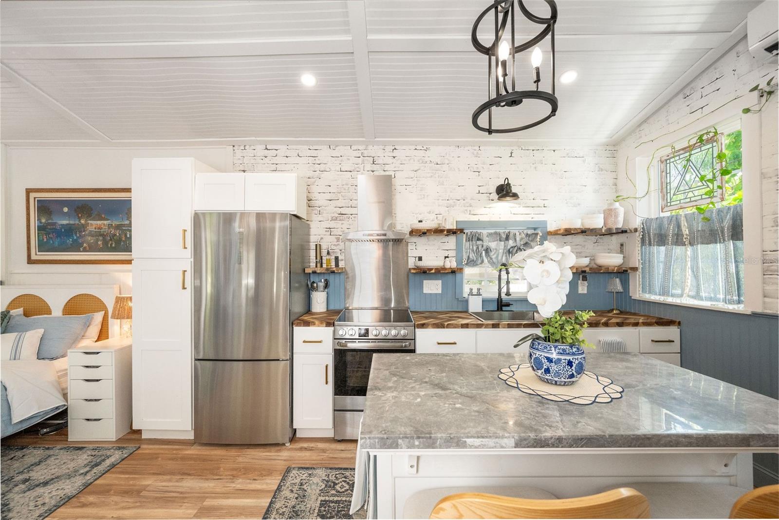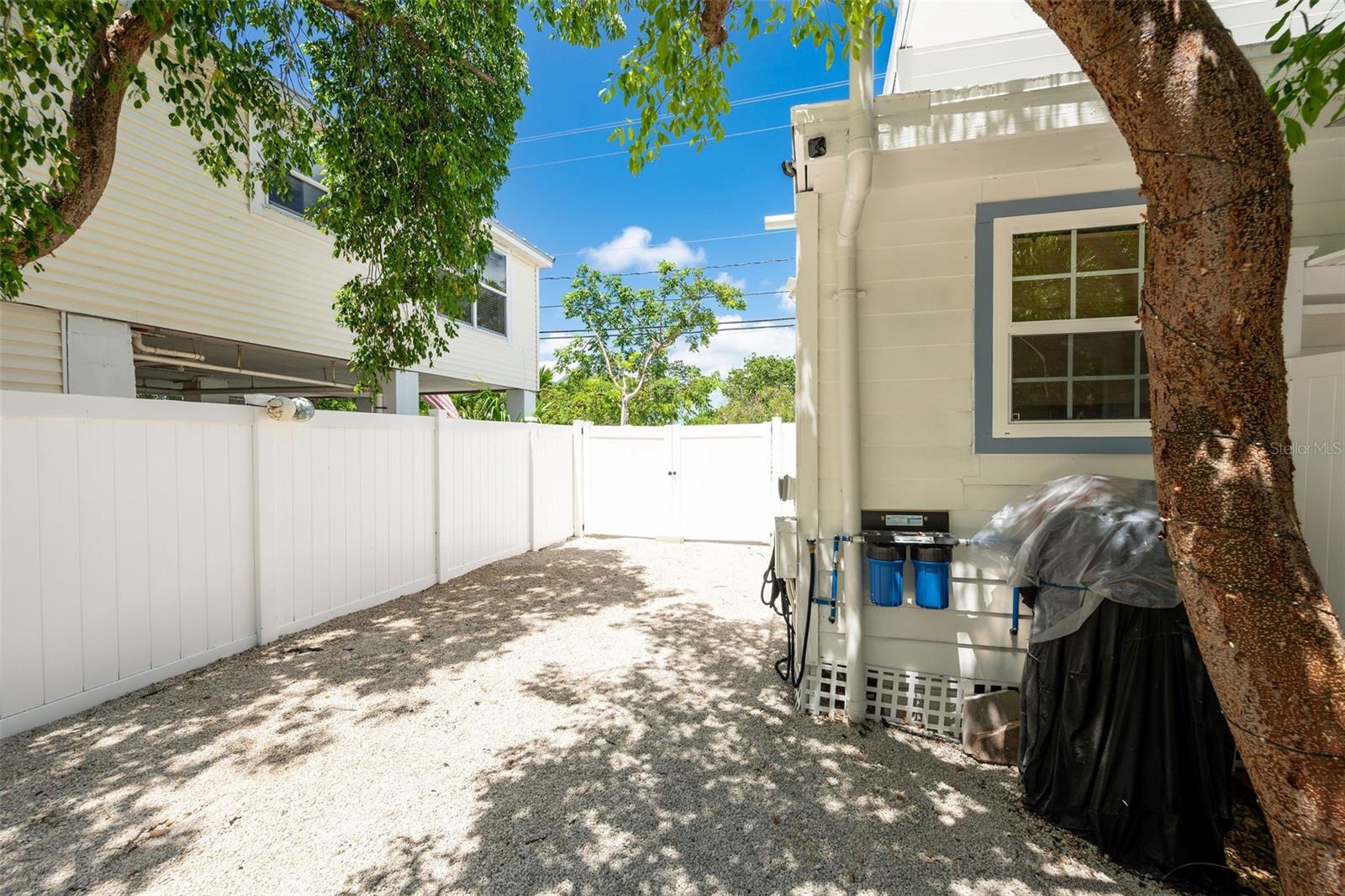 Fully furnished, turnkey, and just minutes from downtown Key West, this beautifully renovated 1-bedroom, 1-bath waterfront cottage with a spacious loft is the perfect island retreat or investment property. Whether you're looking for a full-time residence or a short-term rental opportunity, this home is ready to go—complete with all furnishings, décor, and essentials. Tucked along a quiet canal and backing up to a protected state preserve, the property offers ultimate privacy with a 60-foot concrete seawall, RV power and sewer hookups, and a fully fenced tropical backyard shaded by mature Gumbo Limbo trees, illuminated at night and designed with low-maintenance landscaping, artificial turf, and paver pathways. The interior features a brand-new kitchen and bathroom, new appliances (including refrigerator, washer, dryer, and freezer—all less than a year old), a Mitsubishi split unit, updated electric, all-new lighting, and a whole-house water filtration system. The home has been fully drywalled and insulated, with thoughtful design by a residential interior designer and flexible configurations to maximize square footage. The shaded carport offers additional space for a laundry area, art studio, or workshop. Enjoy 2–3 off-street parking spots, a full security system, and motion lights for added peace of mind. Best of all, this cottage is ROGO exempt, with no association fees, and boasts a Key West address without the city’s restrictions. A wide bike path allows easy electric bike access to Key West proper just six miles away, and a neighborhood boat launch at the end of the street puts you on a direct path to Snipe and Marvin Keys. With charm, updates, and location, this one-of-a-kind cottage is truly island living made easy.
