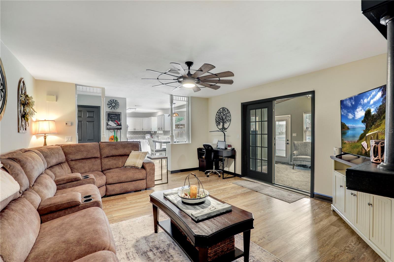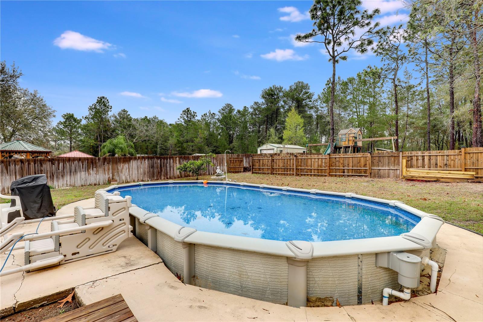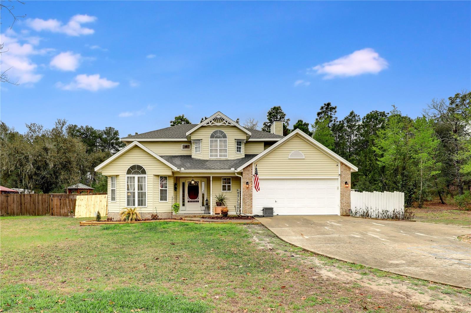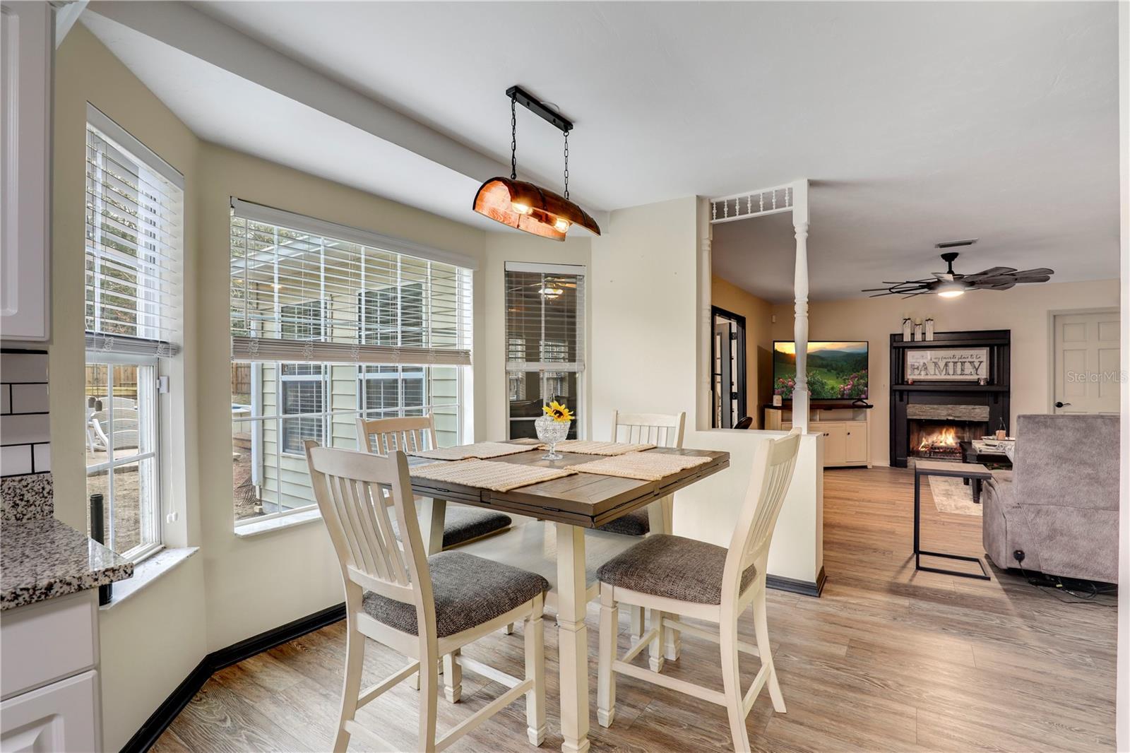 ** POOL HOME ** UPDATED ** FENCED BACKYARD ** This charming and meticulously maintained 4-bed, 3-bath home exudes character and offers comfortable living. NEW FLOORS flow throughout the home, complementing the UPDATED KITCHEN AND BATHROOMS, all featuring granite countertops. The flexible layout includes two living spaces, a dining room and a breakfast nook, along with an EXTRA OFFICE SPACE and a BONUS ROOM leading to the backyard. A FIREPLACE adds warmth to the living room. The master suite boasts a HUGE SLATE TILE SHOWER with DUAL SHOWER HEADS. Outside, a NEW FENCE encloses the backyard, which features a pool, a separate yard area, a spacious deck, and a separate patio. Laundry options are available inside the house or in the garage. A long driveway providing plenty of parking, complete this lovely home. Located just north of downtown Keystone Heights on a private cul-de-sac, this property offers both tranquility and convenience. Don’t miss this amazing opportunity!