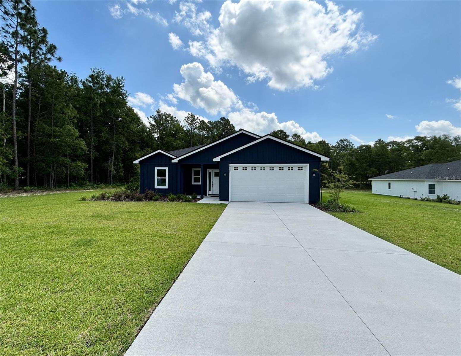 Under Construction. This boldly beautiful home sits on a half-acre, tucked away in Florida's best lake region, and enjoys every luxury a family could desire! As you step into the foyer, the eye-catching luxury vinyl plank flooring that extends throughout the home sets the stage for all the allure that's to unfold. The family room/dining room combo, that rest just beyond the kitchen, boast a magnificent tray ceiling and an open-space feel that's roomy enough for some nice-sized get togethers, yet cozy enough for a quiet family movie night. The kitchen is a chef's dream - anchored by an impressive California island that makes the ideal setting for a breakfast gathering or after school snack, plenty of 42'' cabinets with ornate molding, ample drawers, sizable pantry, stainless steel appliances, farm sink, warm granite countertops, and a glass stove-top oven that sits under a sleek island range hood. Step out onto your covered lanai while the cool breeze of the ceiling fan swirls around you and take in the lovely views and sounds of nature as you have a nice cool beverage to wind down after a long day or have yourself a steaming mug of morning coffee as you watch the day come alive! The palatial owners' suite enjoys tray ceilings and magnificent windows from which natural light pours in and embellishes the room in tranquility. The glamour bath is everything one could dream of with an enormous walk-in closet, linen closet, his and her sinks and double vanity, separate shower, and an exquisite boudoir soaking tub. Two more generous bedrooms are located off of the front hallway along with a guest bathroom that's well-appointed with bath/shower combo, large vanity with single sink and spacious countertop, and a linen closet. Across from the guest bathroom is a conveniently located laundry room. And as a bonus feature, there is a flex-space/room that could be used as an office, craft room, playroom, or even a 4th bedroom! The 2-car garage and a yard big enough to park your RV or boat just add to all the wonderful details! The location gives you the feeling of living a peaceful, country lifestyle with the commute to all the major nearby cities, just a short drive away. Isn't it time you had the best of both worlds? Come see why you want to call this place HOME!! **$5,000 credit towards closing cost**