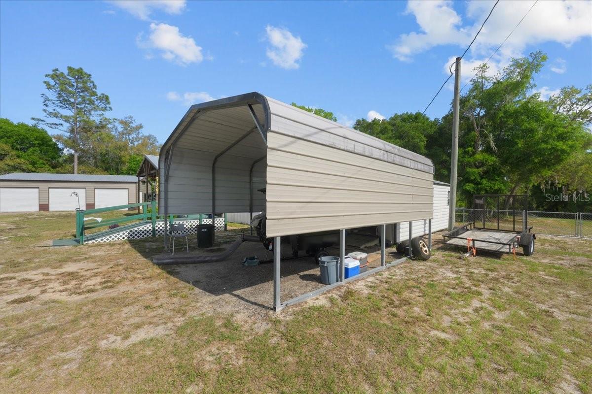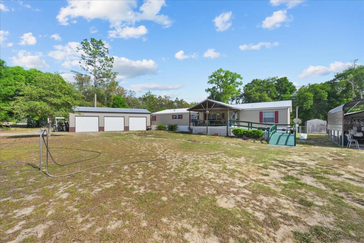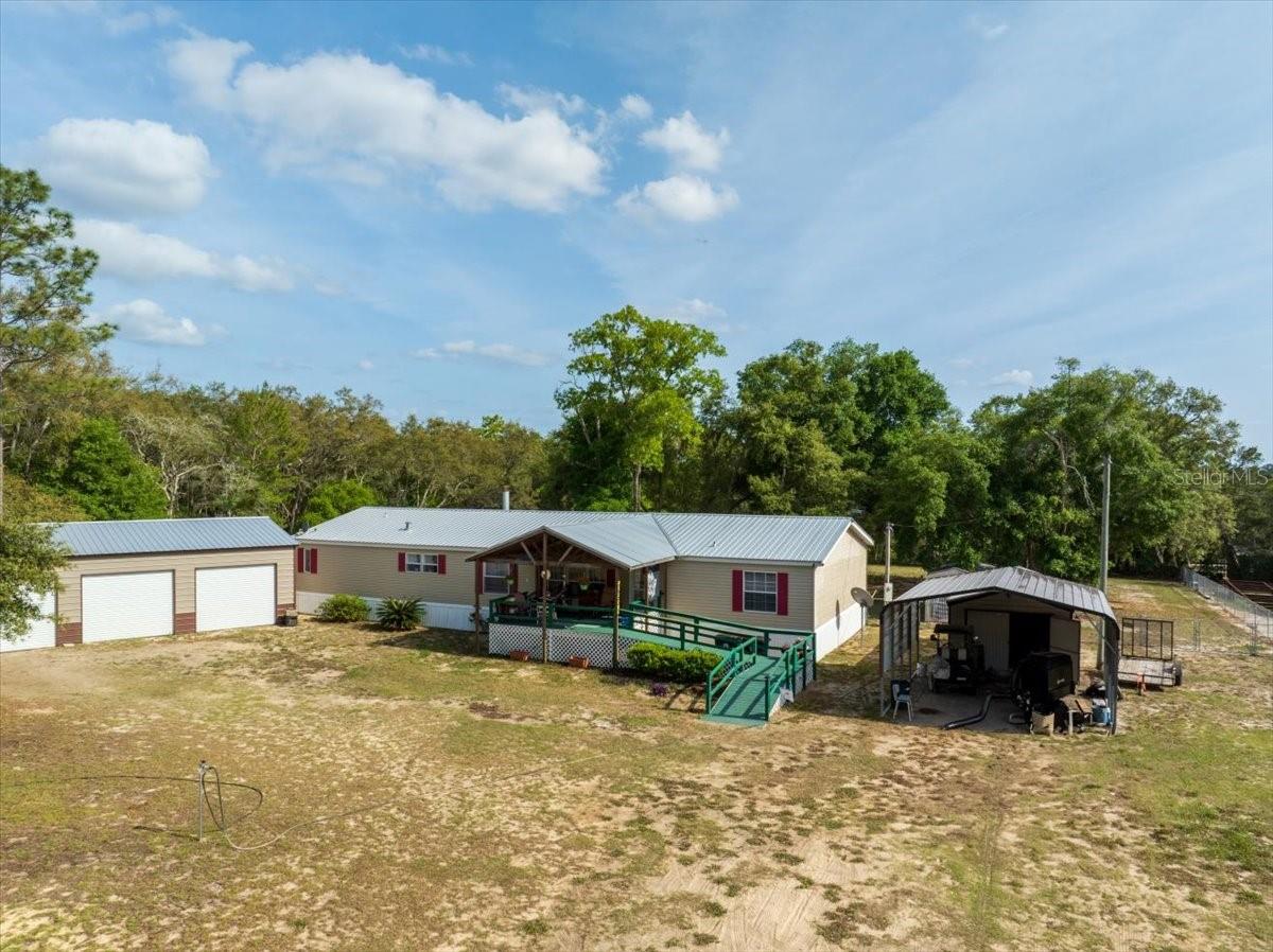 Looking for room to roam—both inside and out? This spacious 4-bedroom, 2.5-bathroom home offers 2,356 sq. ft. of living space and sits on over an acre of land—plenty of space for family, hobbies, and more! Out front, relax on the large covered porch complete with a handicap-accessible ramp. You'll love the massive 24x40 metal building featuring three roll-up garage doors and a walk-through door—perfect for your workshop, toys, or storage. Plus, there's additional covered parking under the 2-car carport. Chain link fenced back yard with both a drive-through gate and walk-through gate, a spacious back deck, 30-amp RV hookup, and 3 large storage sheds to handle all your extras. Inside, you'll find brand-new flooring, fresh paint, and updated baseboards. This home delivers space in all the right places: a formal living room, dining room, cozy family room, a generously sized kitchen with ample cabinetry and counter space, and three walk-in closets among the 4 bedrooms. If you've been searching for comfort, convenience, and room to growthis is the one! HVAC- 2024, Septic pumped in 2023, well inspected & serviced - new bladder tank, wiring & pressure valve - 2023 Roof - 2021 Skirting - 2021 HWH - 2002 survey on file - doesn't show metal building, back fencing or back deck