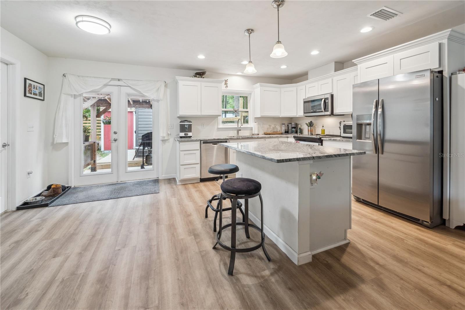PRICE IMPROVEMENT & 4.5% FHA ASSUMABLE MORTGAGE! Don't miss this Charming 3-Bed, 2-Bath Home - Walk/Bike to Lake Geneva Park & Keystone Beach/Geneva Jungle and downtown Keystone! This beautiful home, built in 2022. is situated in the heart of Keystone Heights, and just blocks from Keystone High and Elementary schools, and several neighborhood churches. The outside features include: a fenced backyard with a beautiful wooden gazebo just steps from the kitchen - perfect for grilling! You will love the 10' x 14' man/she shed with a 104 sq ft loft - great for storage, hobbies, or a retreat space. The adjacent wooded utility easement ensures no development next door for added privacy. The interior highlights boasts a spacious kitchen with a brand-new refrigerator (Feb. '25); all other appliances new in 2022 Fresh new flooring installed in Feb. '25. Large closets in every room. Separate laundry room with ample space and a pantry. City water. Septic System installed in 2022.