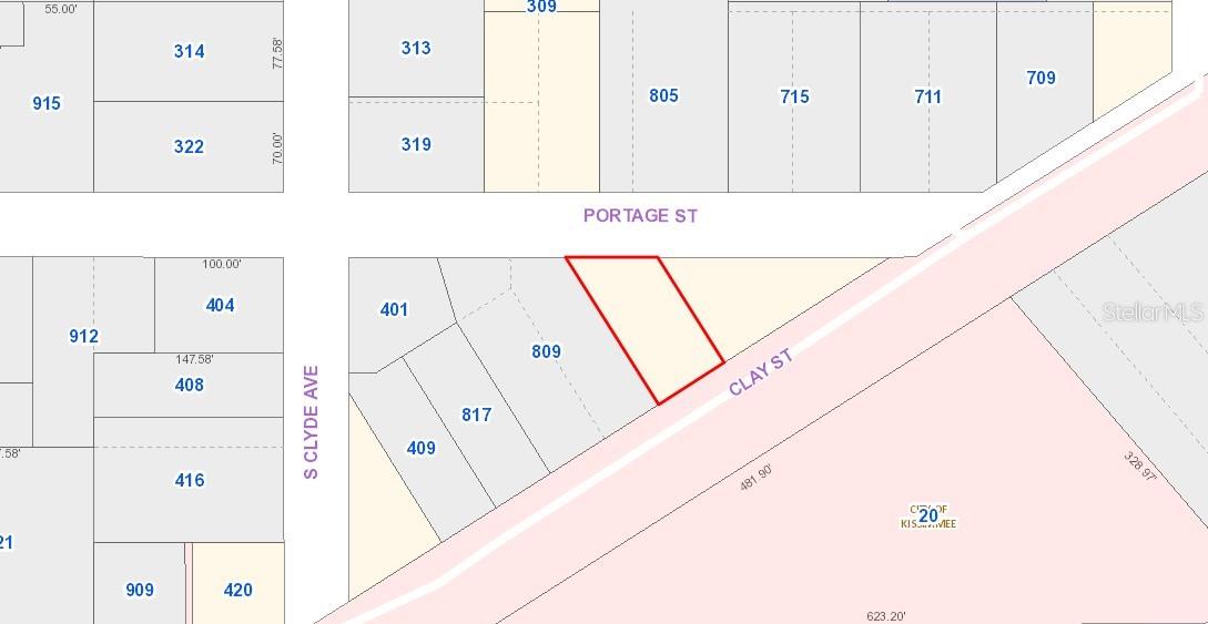 Seller may consider buyer concessions if made in an offer. This is TWO Parcels for sale! Lot 1 and 2 of this Block. Build one home per lot or Have a double lot Premium Homesite. The Corner Lot Is Triangle Shaped with 181 Feet of Frontage on W. Portage St., 153 Feet on Clay Street and 97 Feet of Depth for a total of 7,402 Square Feet. Lot Two is 135 Feet Deep on the West Boundary, 72 Feet of Frontage on W. Portage St, 97 Feet along the East Boundary and 60 Feet of Frontage on Clay St. Total square Footage is 6,990 for Lot 1. Both lots combined are 14,392 Square Feet. Great Corner Lot location for Side by Side Development Opportunity among established homes in a charming area of Kissimmee just across from Marina Square and Lakeview Dr. and Toho. NO HOA and conveniently located close to schools, shopping, medical facilities and more. Zoned for a residential single family.