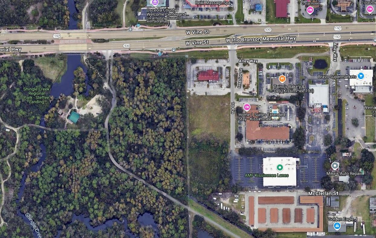 This property in Kissimmee, located on the south side of US Highway 192, offers a prime opportunity for development. With 4.53 acres of land and a zoning classification of highway commercial with mixed-use (MUV), the site is flexible for various types of businesses and developments. The future land use (FLU) designation aligns with urban-scale neighborhoods and villages, offering opportunities for a wide range of uses including hotels, multi-family residential units, commercial restaurants, retail spaces, and potentially storage units The existing stormwater management pond at the rear of the plot could provide practical benefits for development, potentially reducing some of the infrastructure costs related to water management. Key highlights include: High traffic count of 60,000 vehicles, making it a highly visible and accessible location. Situated within the Vine Street Corridor, which promotes walking, biking, and sustainable transportation options. Future land use encourages mixed-use developments and connectivity to major focal points and downtown Kissimmee, enhancing the property's appeal for various urban development projects. This property seems well-positioned for a wide range of development opportunities, from commercial ventures to residential and mixed-use projects. It’s ideal for investors or developers looking to capitalize on Kissimmee's growth, especially with the area's focus on urban-scale, sustainable development. Being next to Shingle Creek Regional Park, 456-acres, includes several old homes from the historic Shingle Creek community. The park includes fishing, hiking trails, picnicking, play area, and restrooms. Stefee Landing has a launch onto the Designated Paddling Trail, outfitter, boardwalk and bridge. The Shingle Creek Regional Trail runs through the park, when complete it will run 32 miles from Kissimmee to Wekiwa Springs State Park in Seminole County. Will add a versatile and a vibrant energy to any project you choose to accomplish.