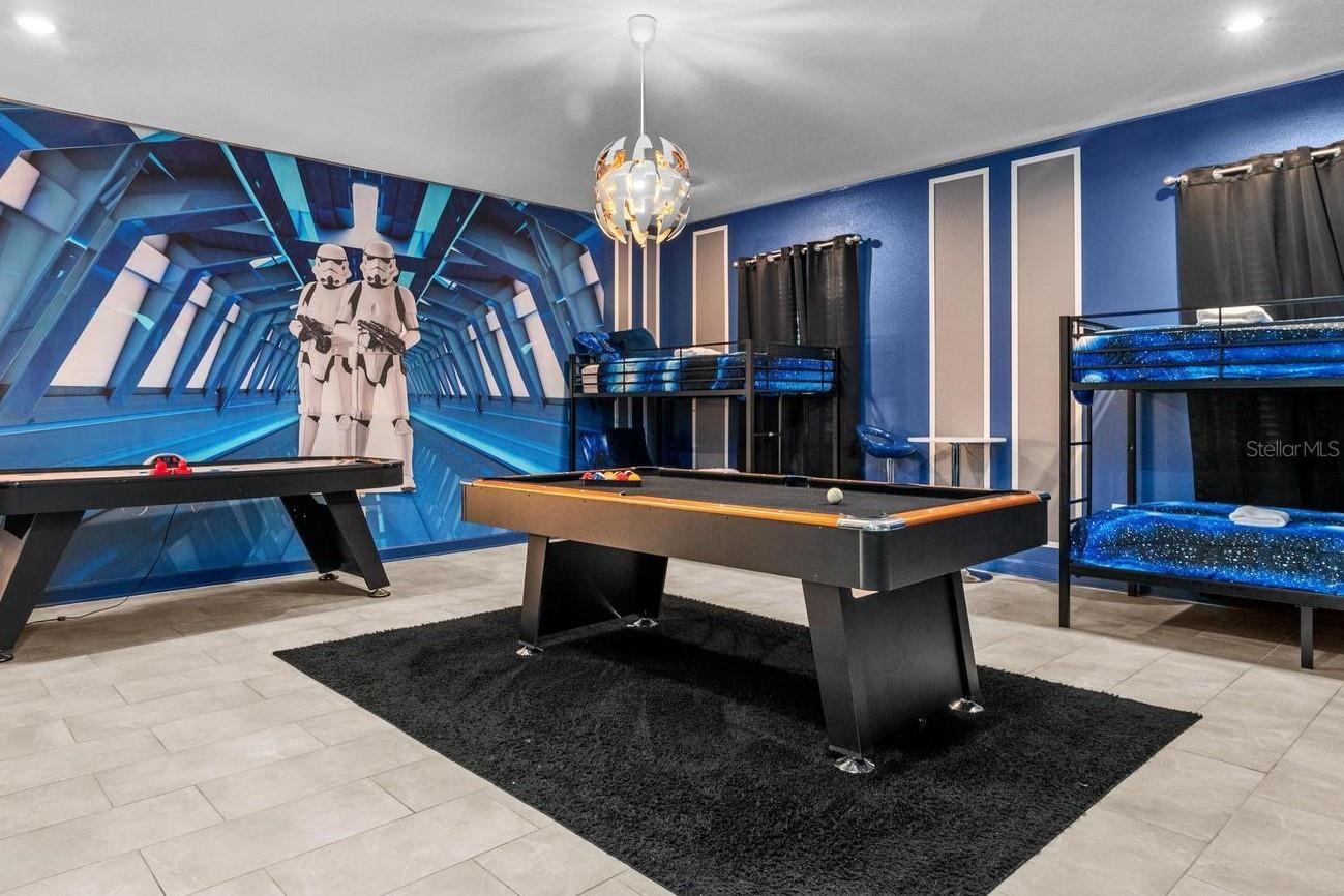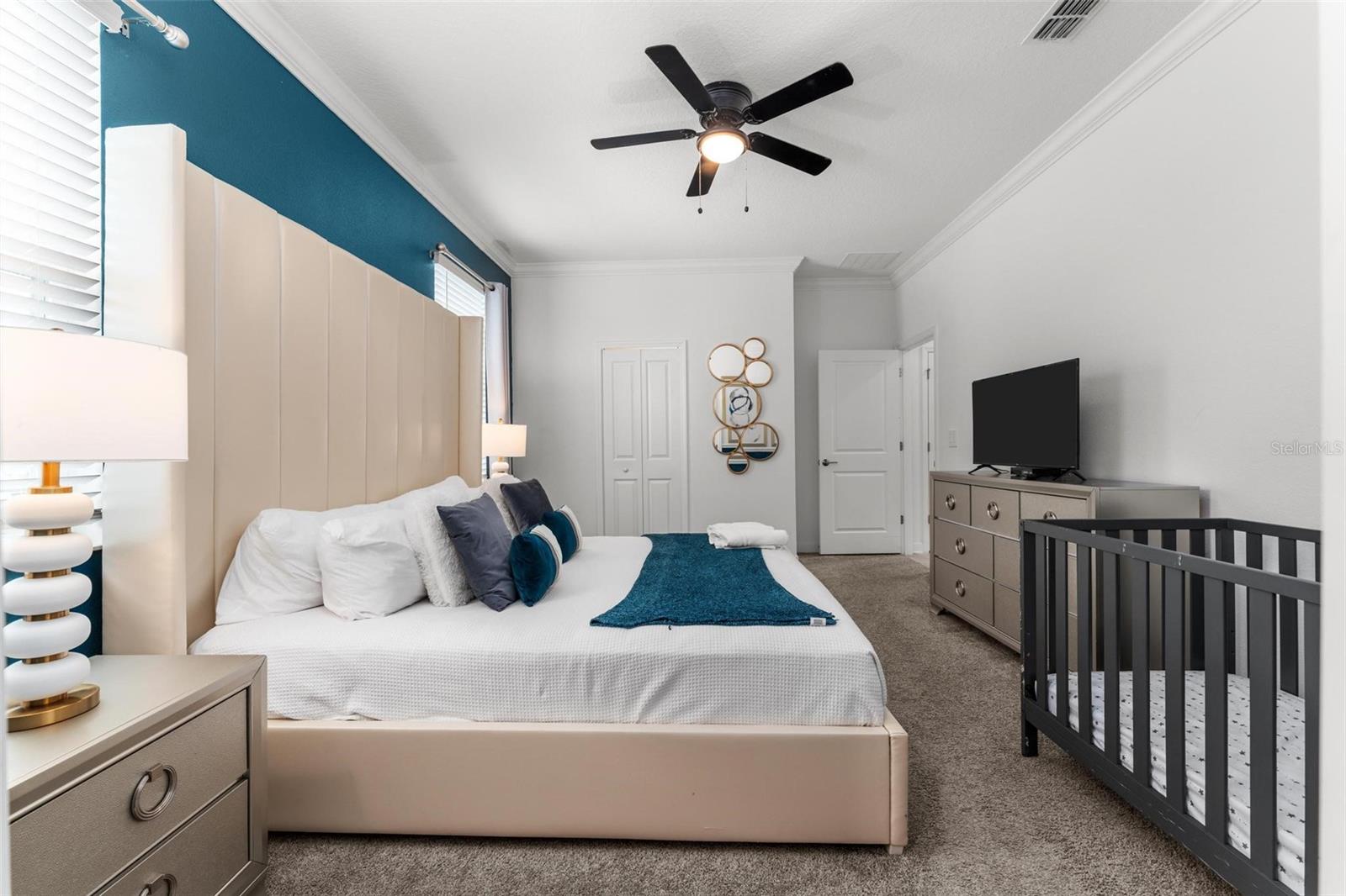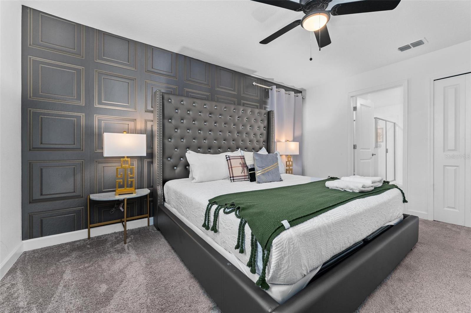 Dream of a SUNRISE view? Vacation home just minutes from Disney. Airbnb StoreyLake2901 income producing. Fully Furnished Turn key. ***** 5 stars reviews. Over $111,000 ANNUAL gross rent income. Gated 24-hours guard community with resort style amenities. NEWer built 2022. BEST lot in the luxury row of Storey Lake. Private waterview and woods view. Next to the nature trails. Corner lot with extra open parking spaces for friends and family. Relax and enjoy. Gorgeous 9 bedrooms, 5 full baths, private POOL, lanai screen enclosure, brick paver cover patio. 3,994 sqft. Owners suite on 1st level separate walk in shower & bathtub. Theme rooms with Avengers, Star Wars, Frozen, Harry Potter, Pokeman to make unforgettable family memories. Upstairs has Avengers loft space to enjoy movie night. Star Wars room with a pool table and air hockey table. Resort style amenities & kayak. Ask me for the Video Tour link!<p> Best of two worlds, you can either live there and enjoy your best life in the paradise sunny Florida, or you can own AirBnb income producing property. 8 miles drive from Walt Disney World Orlando. Fully Furnished – Turnkey. Just need to bring your clothes and toothbrush. 15 beds can sleep 25 guests. Modern high quality furnishings and décor by designer worth over $100k Modern styles throughout. Behind the house is protected and owned by the Shingle Creek at Bronson CDD, and Osceola Countys Shingle Creek Regional Park. Next to the nature trails. Corner lot with extra open parking spaces. Decor wall colors can be changed, but land and gorgeous views cannot. This truly is the best lot and best community. <p> On the first floor main level, the primary owners suite and two guest suites are situated, ensuring accessibility. Owner’s ensuite full bathroom has a separate walk-in shower and soaking bathtub. Modern kitchen is fully stocked with appliances, cookware and utensils for convenience. Open floor plan seamlessly unfolds into the open family room and luxury dining room, which connects to the generously sized covered screened lanai. Glass sliding doors merging indoor and outdoor spaces. Pool with spa, an epitome of luxury living and an ideal setting for hosting indoor & outdoor gatherings. <p> Nestled within the sought after Storey Lake Community, 24-hour gated community, resort style living, and family friendly. Club fees $248/month include amenities access to 2 clubhouses (Bronson & Hideaway Club), resort style pool, hot tub, lazy river, water park slides, splash pad, cabana, fitness gym, putt-putt mini golf, playground, dock with canoe kayak rental, beach volleyball, basketball, ping pong, pool table, business center. Homeowner’s Association HOA fee $294/month included gated entrance with 24/7 attendant, landscapes, cable, internet, community events and community manager, trash pickup 7 days a week. HOA reserves include exterior paint, roof replacement, exterior pest control, street paving, ponds maintenance. <p> This home is centrally located near restaurants, shopping, and theme parks. Disney (8 miles), SeaWorld (8 miles), Convention Center (9 miles), Universal (12 miles). Orlando International Airport (MCO) ~30 minutes. Publix grocery, Target, Sam club , Walmart Super, outlet, Disney, Gatorland, Zip Line, ESPN Wide World of Sports, Shingle Creek Regional Park. So sit back, relax and enjoy. Your fully realized dream home, where luxury and convenience converge to live your best life. Schedule your showing today!