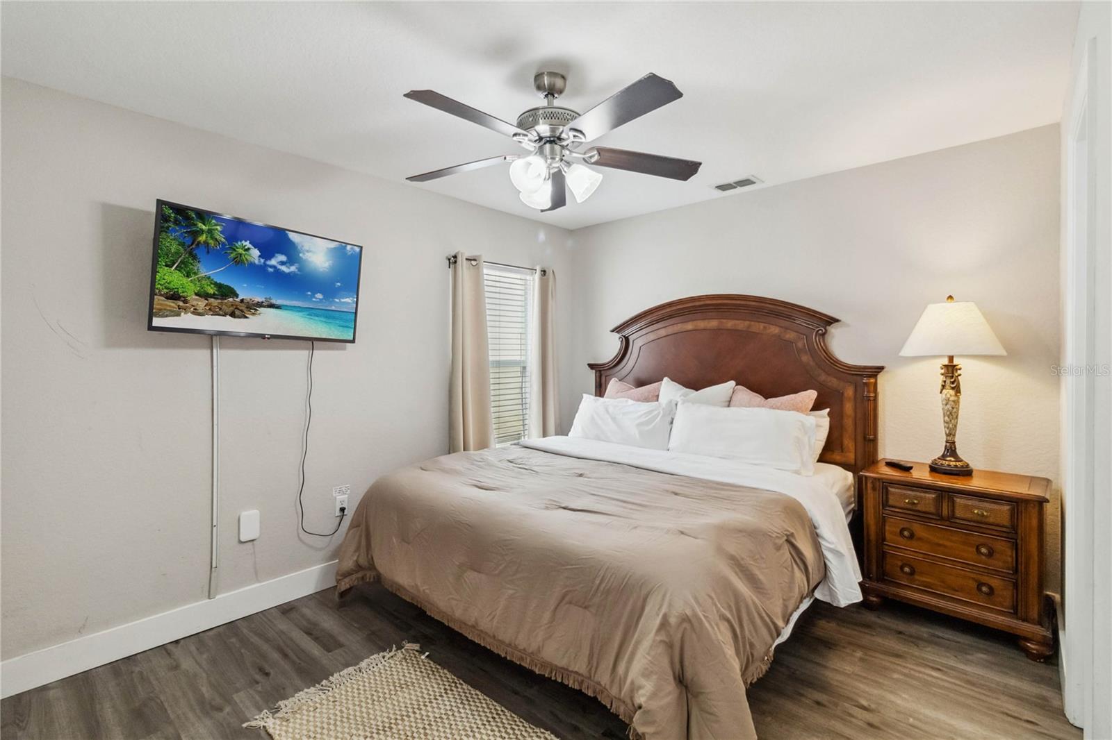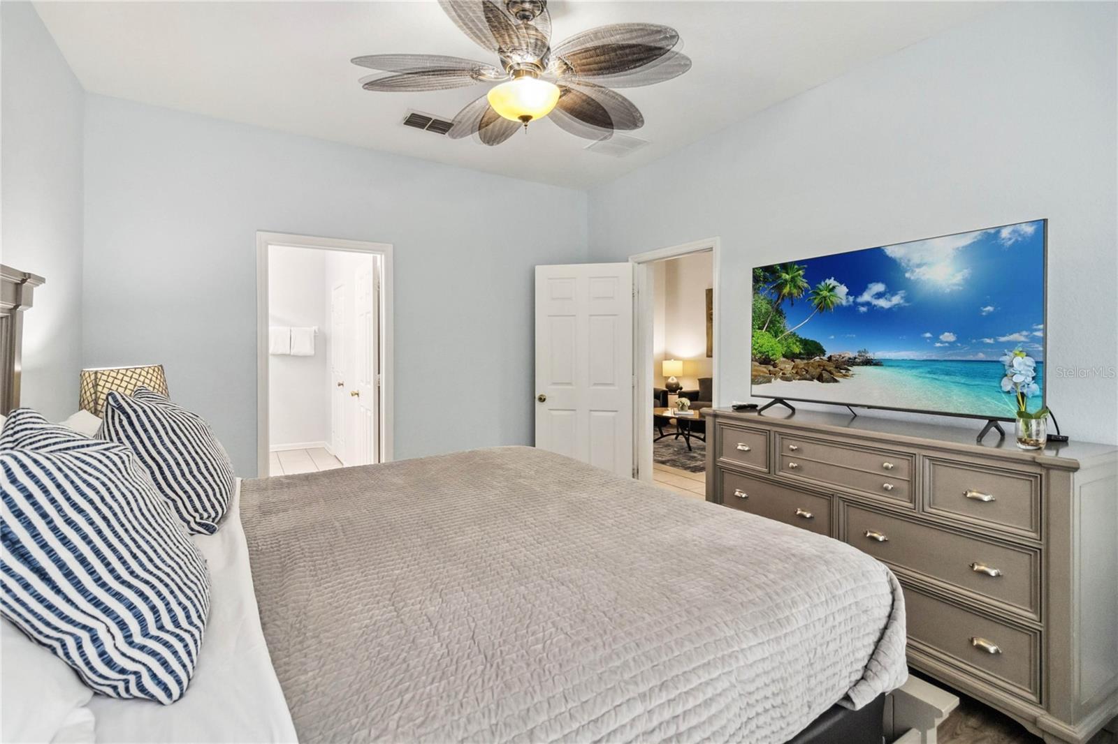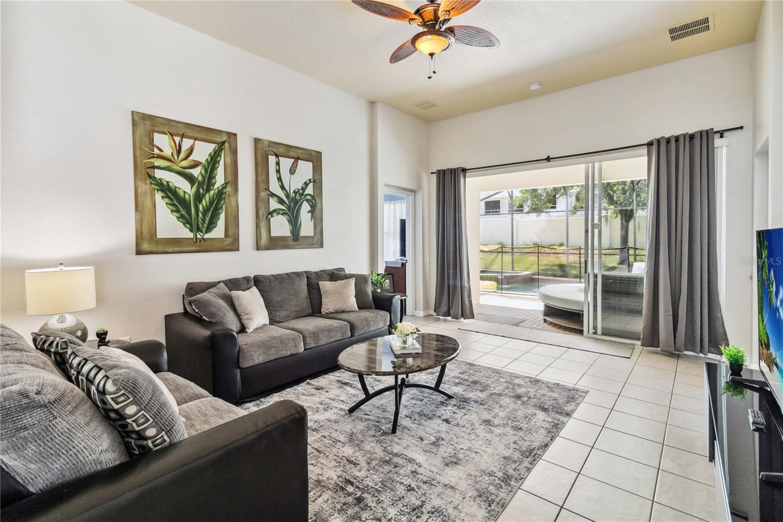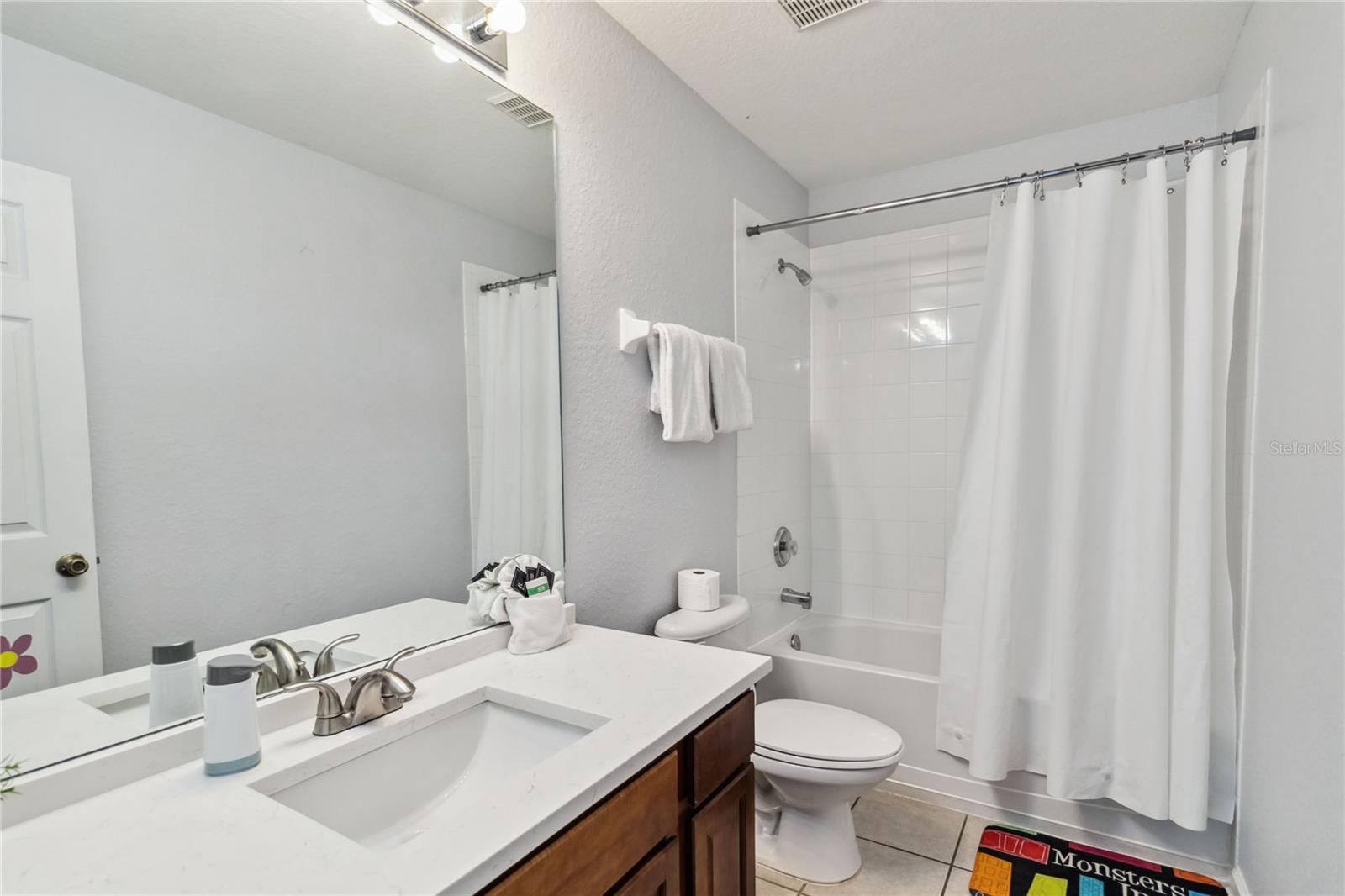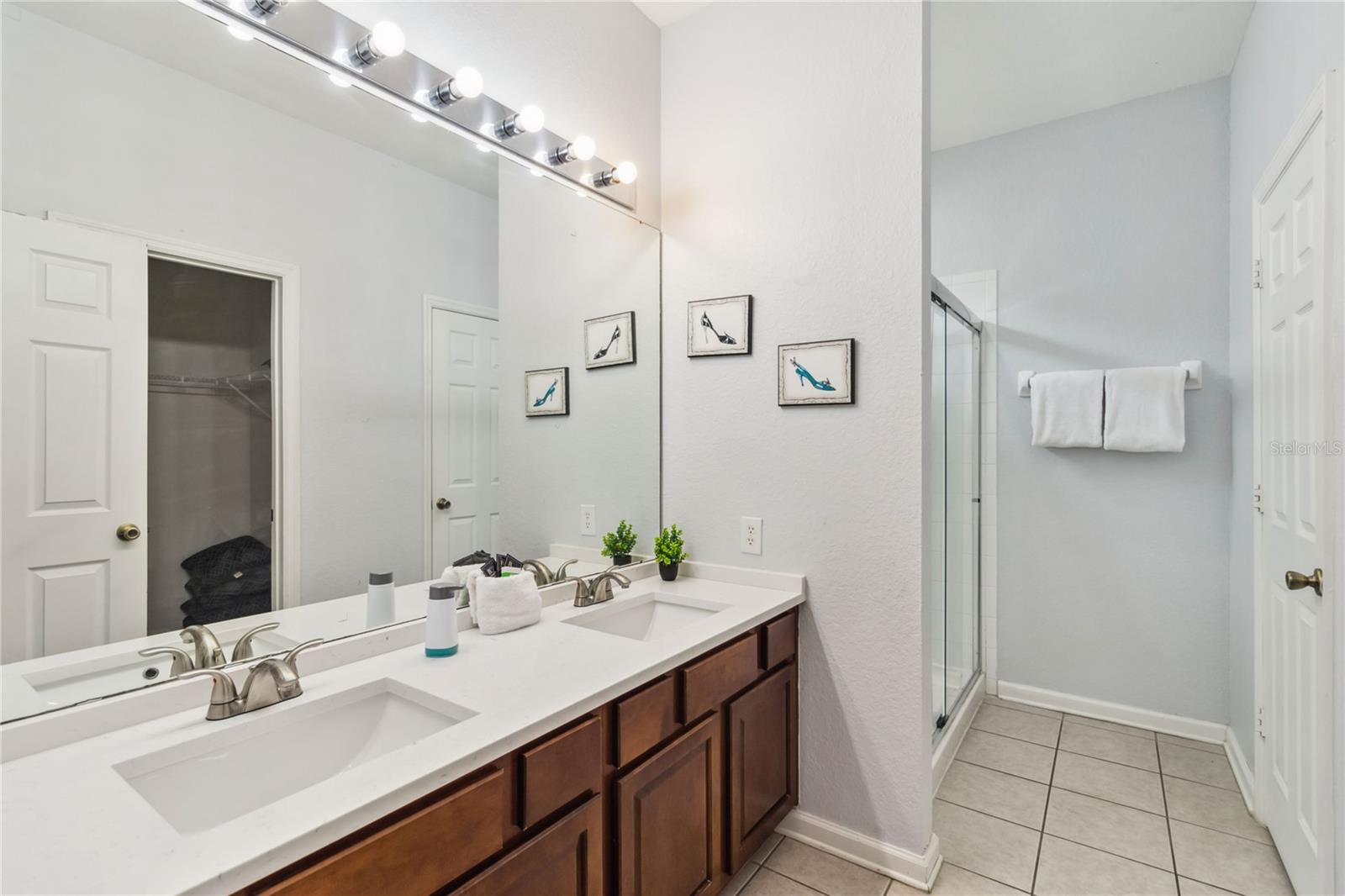 WELCOME to your DREAM vacation home! Located only 0.4 miles (away short 7-10 minute walk) to the the insane water park and community amenity center. Windsor Hills has everything you could want from water slides, to community events, movie theater, arcade and more! But you don’t even need to leave your home to enjoy the Movie and arcade experience since the garage has been professionally converted into a THEATER/GAMING ROOM! This home also features 2 large primary bedrooms (both on the first floor) each with walk in showers, private toilet, walk in closets and view of the backyard. The split floorpan is perfect for entertaining guests. 2 themed bedrooms, each with own en-suite are located upstairs. This one is NOT TO MISS!