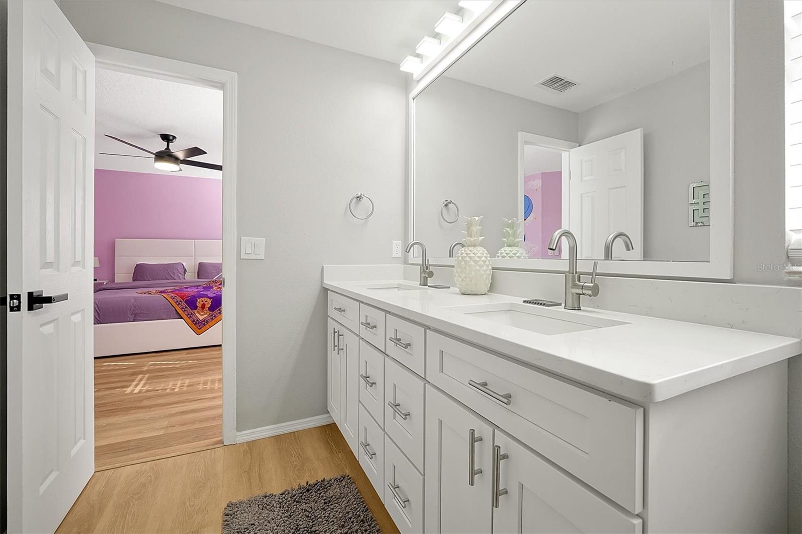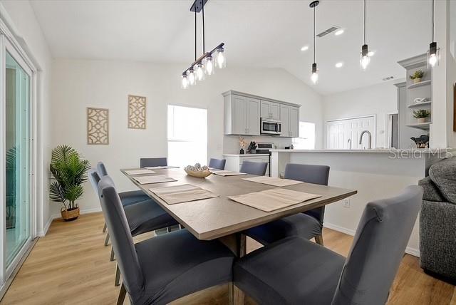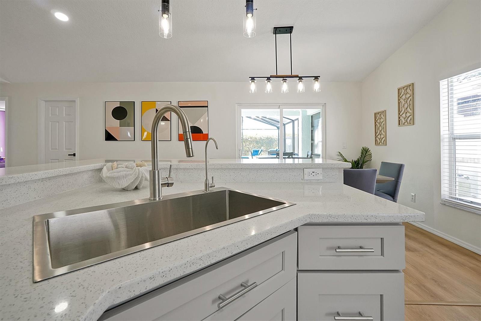 One or more photo(s) has been virtually staged. Welcome to this magical home just minutes from Disney World! This 5-bedroom, 3-full-bath, 2-car garage pool home offers 1,546 sq. ft. of move-in ready living with luxury vinyl plank flooring, fresh paint, stainless steel appliances, and updated fixtures. Nearly $70,000 has been invested in updates, upgrades, and brand-new furnishings—all included! Major Updates & Features: 7 beds, fully furnished: living room sectional, dining table, new suspended LED lighting, each bedroom includes beds, nightstands, decor, TV, and Nest alarms New irrigation system, pool heater, and privacy fence New cabinetry in the kitchen Full interior remodel of ceiling and walls Converted garage into insulated 5th bedroom with separate mini-split AC Remodeled bathrooms, including a 3rd bathroom in the living room with new plumbing to make it a full bath Partially covered outdoor patio with pool furniture included Smart home features: Nest door lock, thermostat, smoke/co alarms Enjoy vaulted ceilings, a split-bedroom floor plan, and no rear neighbors. The screened-in pool overlooks a peaceful pond—perfect for relaxing or entertaining. The community offers resort-style amenities, including a pool, tennis court, playground, and picnic areas. Located in Phase 3, this property allows short-term rentals and is currently earning up to $3,500 each month (rental records available). Just minutes from Disney World, Disney Springs, and countless attractions, this home is ideal as a primary residence, vacation retreat, or income-producing investment.