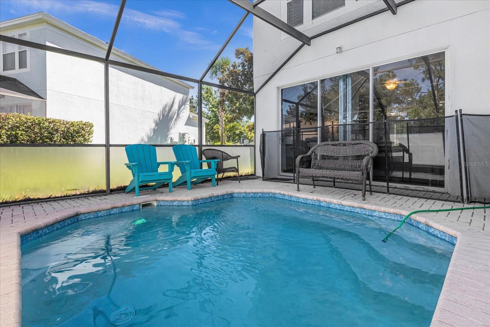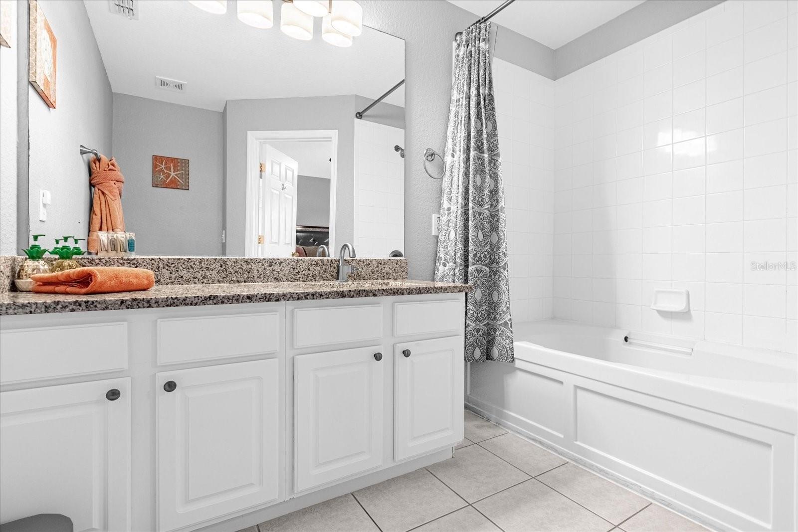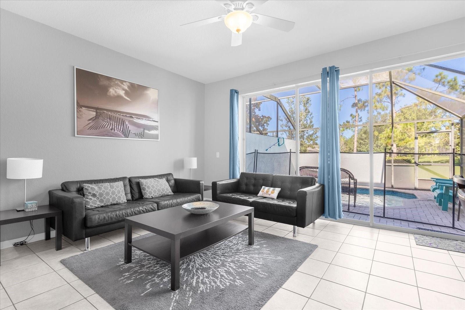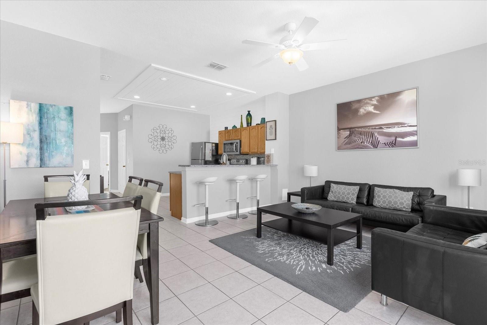 Welcome to this exquisite end unit 3-bedroom, 3-bathroom townhome in the renowned Windsor Hills resort community, just a few miles from Disney. Perfect for short-term rentals and Airbnb, this fully furnished home features an open floor plan integrating the kitchen, living, and dining areas, ideal for the relaxed Florida lifestyle. The first floor includes a guest bedroom with an en suite bathroom, while the second floor boasts a large primary suite with a walk-in closet and spacious en suite bathroom overlooking the west-facing pool with no rear neighbors. Recent upgrades include granite countertops, new kitchen appliances, ceiling fans, bathroom fixtures, a Nest thermostat, new furniture (2017), a color-changing pool light (2017), pool heater, pool filter, HVAC, water heater, shiplap ceiling in the kitchen (2020), a remodeled hallway closet with a full-size washer and dryer (2020), WIFI front door lock, disposal, microwave (2021), double-paned windows (2023), and a new sliding glass door panel (2024). Windsor Hills offers amenities like a clubhouse with games, playground, pools, water slides, fitness center, movie theater, sundry store, and sports courts. The HOA covers cable, internet, trash, and provides guard-gated access. Located just one mile south of US 192 and a 10-minute drive from I-4, it offers easy access to Orlando’s main attractions. If you are an investor, future bookings are in place. Experience luxury, comfort, and convenience in this stunning Windsor Hills townhome.