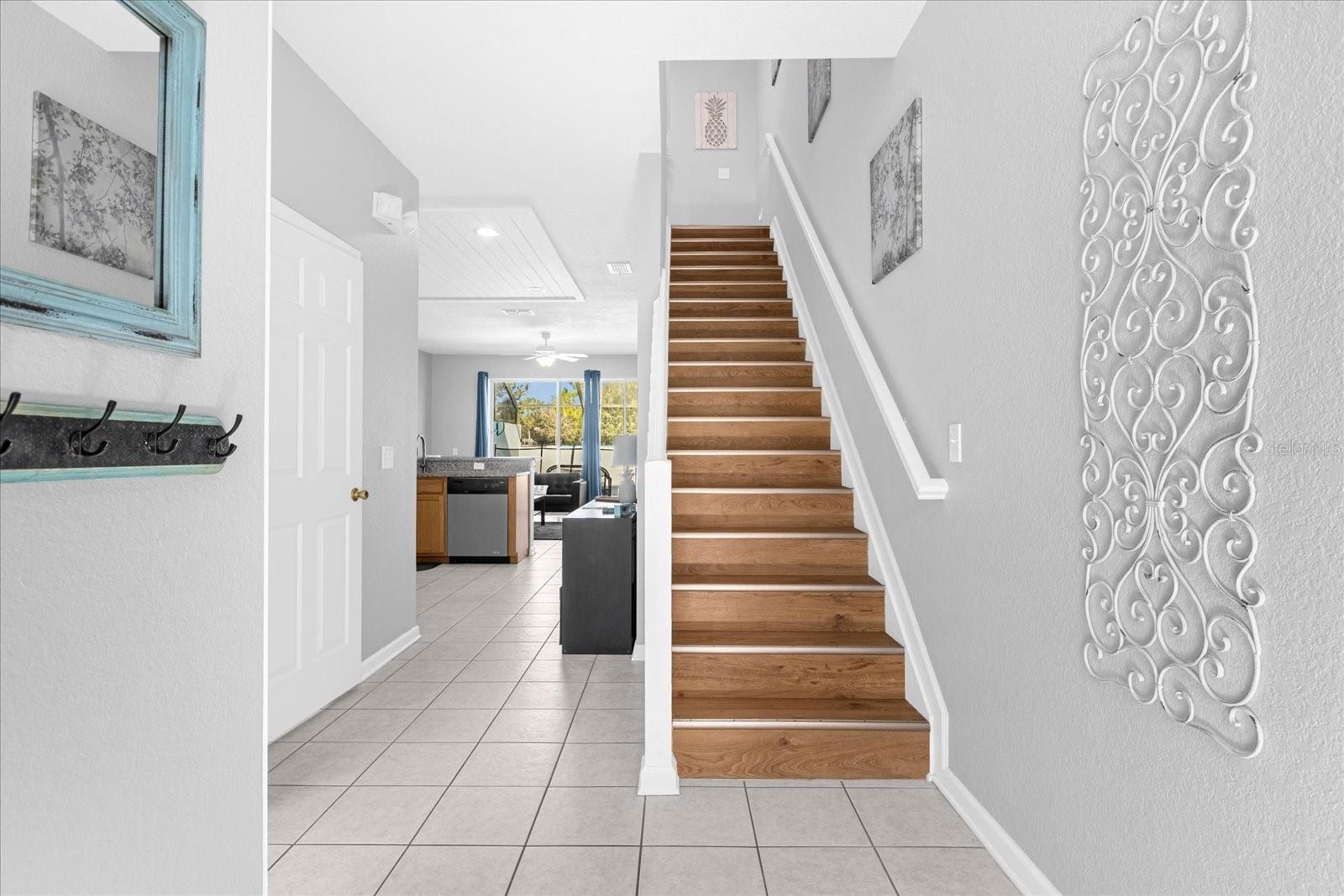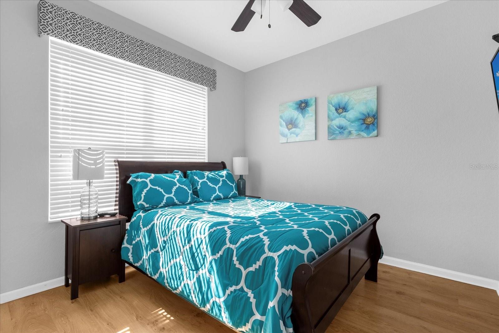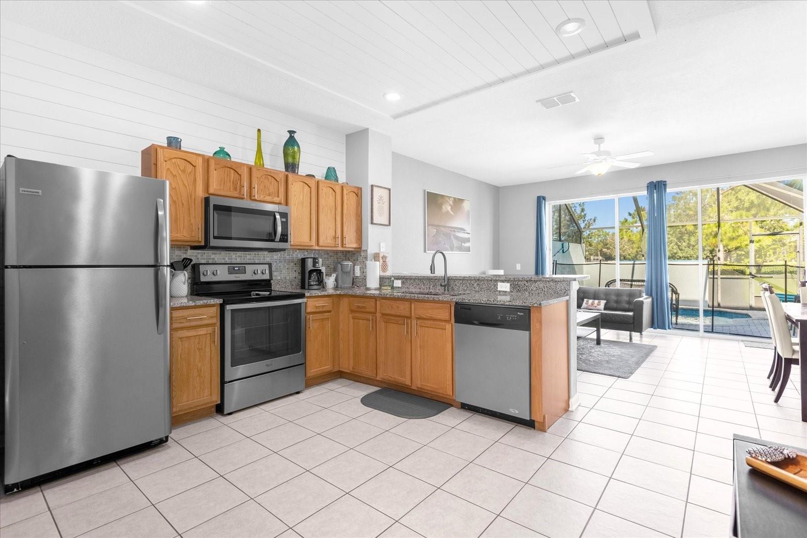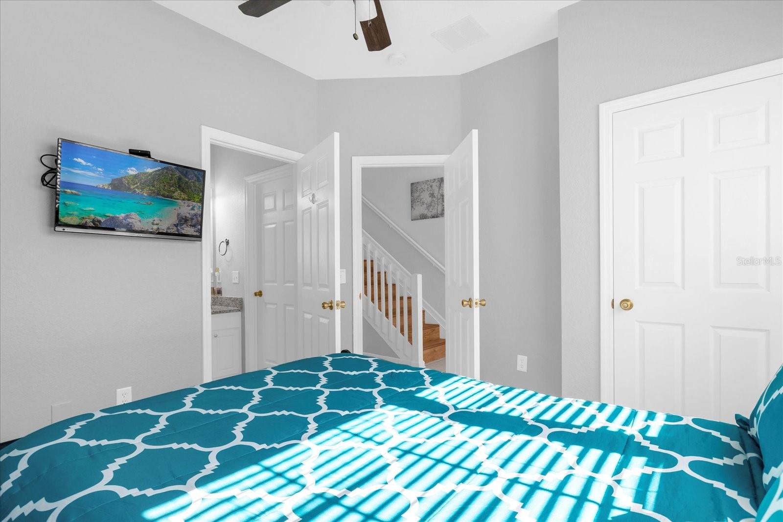 Welcome to this exquisite end unit 3-bedroom, 3-bathroom townhome in the renowned Windsor Hills resort community, just a few miles from Disney. Perfect for short-term rentals and Airbnb, this fully furnished home features an open floor plan integrating the kitchen, living, and dining areas, ideal for the relaxed Florida lifestyle. The first floor includes a guest bedroom with an en suite bathroom, while the second floor boasts a large primary suite with a walk-in closet and spacious en suite bathroom overlooking the west-facing pool with no rear neighbors. Recent upgrades include granite countertops, new kitchen appliances, ceiling fans, bathroom fixtures, a Nest thermostat, new furniture (2017), a color-changing pool light (2017), pool heater, pool filter, HVAC, water heater, shiplap ceiling in the kitchen (2020), a remodeled hallway closet with a full-size washer and dryer (2020), WIFI front door lock, disposal, microwave (2021), double-paned windows (2023), and a new sliding glass door panel (2024). Windsor Hills offers amenities like a clubhouse with games, playground, pools, water slides, fitness center, movie theater, sundry store, and sports courts. The HOA covers cable, internet, trash, and provides guard-gated access. Located just one mile south of US 192 and a 10-minute drive from I-4, it offers easy access to Orlando’s main attractions. If you are an investor, future bookings are in place. Experience luxury, comfort, and convenience in this stunning Windsor Hills townhome.