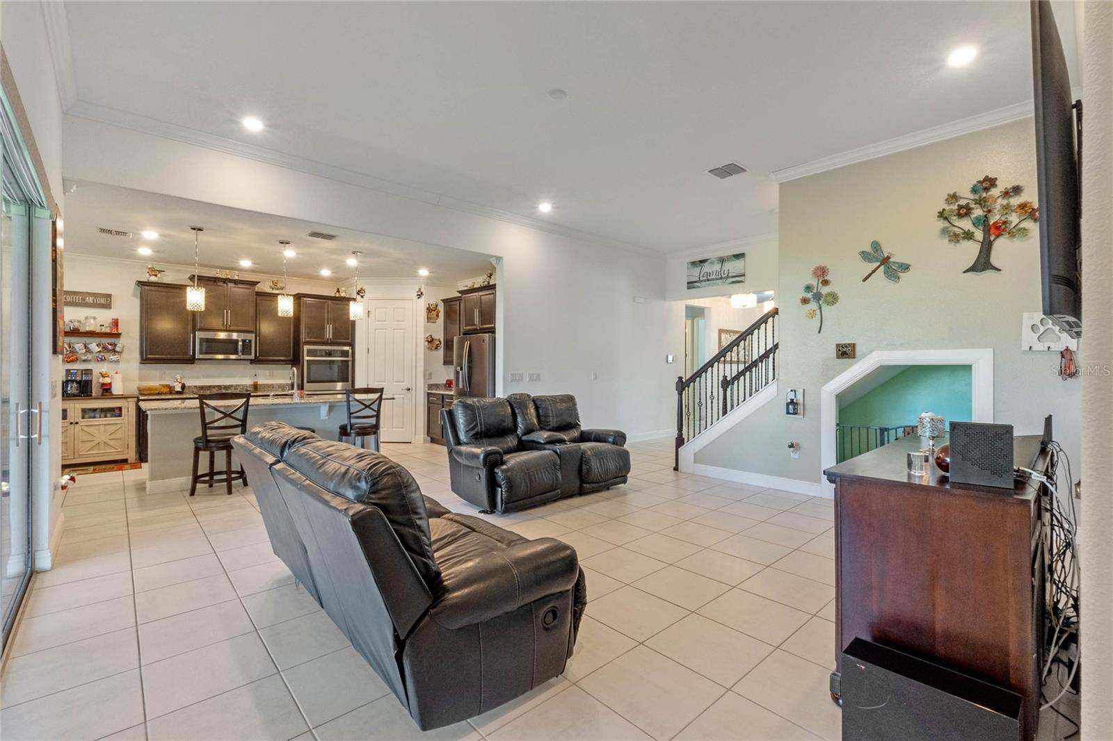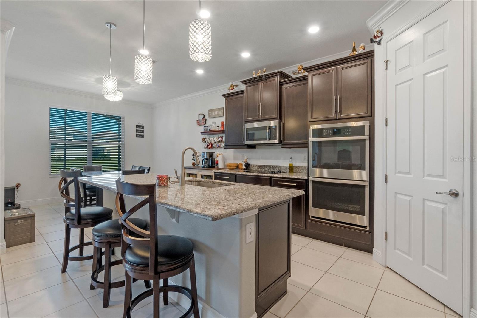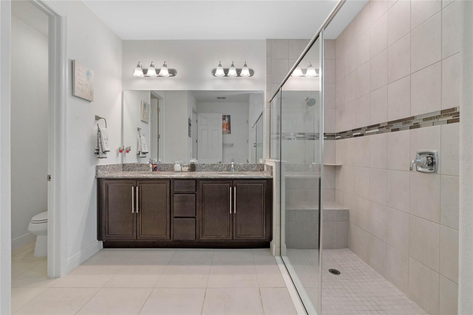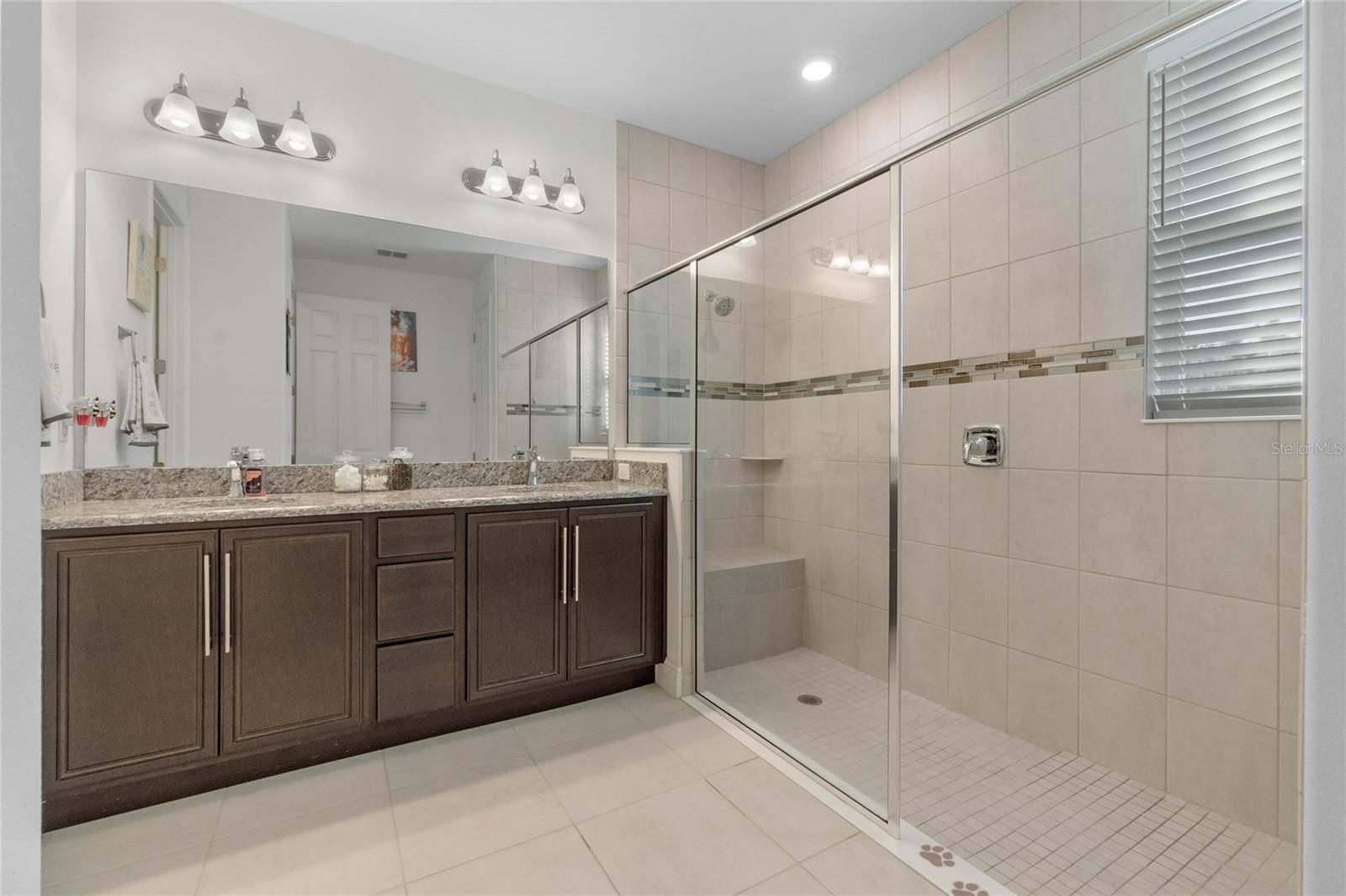 Welcome to the magnificent and impeccably maintained home nestled in the stunning resort-style community of Bellalago! This exquisite 4-bedroom, 4-bath residence, complete with an upstairs bonus room, boasts luxurious features such as crown molding, 5-inch baseboards, 8-foot doors, 12-foot ceilings, and elegant bullnose cornering throughout. As you arrive, you'll be captivated by the charming paver driveway, Spanish-style roof, manicured landscaping adorned with palm trees, covered rear porch, and a screened lanai. Step inside to discover an elegant foyer with tray ceilings, tile floors, and recessed lighting. To the right, two guest bedrooms share a full bath featuring a granite single sink vanity and a tiled tub/shower combo. On the left, through double doors, you'll find a perfect office space for remote work or hobbies. The heart of this home is the spacious and cozy living room, seamlessly connected to an open-concept kitchen. This airy space is ideal for entertaining, featuring an eat-in kitchen with additional bar top seating. The gourmet kitchen showcases 42-inch soft-close cabinets with crown molding, granite countertops, walk-in pantry storage, stainless steel appliances, double ovens, an electric cooktop, and elegant crystal pendant lighting. The living room opens to a covered paver patio, perfect for summer grilling. Retreat to the primary suite for rest and relaxation, where the primary bath offers dual vanities, extra counter space, a separate water closet, a glass door shower, and a walk-in closet. The versatile upstairs bonus room, with its ensuite bathroom and walk-in closet, offers additional storage and can easily serve as a fifth bedroom or a fantastic movie room, perfect for entertaining or watching the big game. This home also includes a large 20' x 20' garage with high ceilings, attic access with stairs, and a water softener. The laundry room is equally impressive with wood cabinets, a granite countertop, and a convenient laundry sink. The outdoor patio, pre-plumbed and awaiting your creative touch, is perfect for an outdoor kitchen. This home boasts upgrades not found in new construction, and you can move in without delay. Bellalago offers a wealth of resort-style amenities, including Club Vialago with 2 fitness centers, 2 swimming pools, a hot tub and splash pad, a fishing pier, public boat ramp, restaurant/bar, workout classes, community events, parks, playgrounds, a dog park, scenic bike routes, and walking trails. Conveniently located near shopping, dining, Publix, Walgreens, Walmart, Bellalago Academy, and Valencia College, this home is perfect for boat or nature enthusiasts, or anyone seeking their own piece of paradise close to beaches, Disney, and Universal Theme Parks. Experience all Florida has to offer—this home will not disappoint!