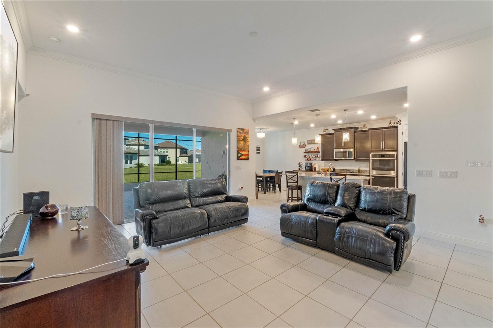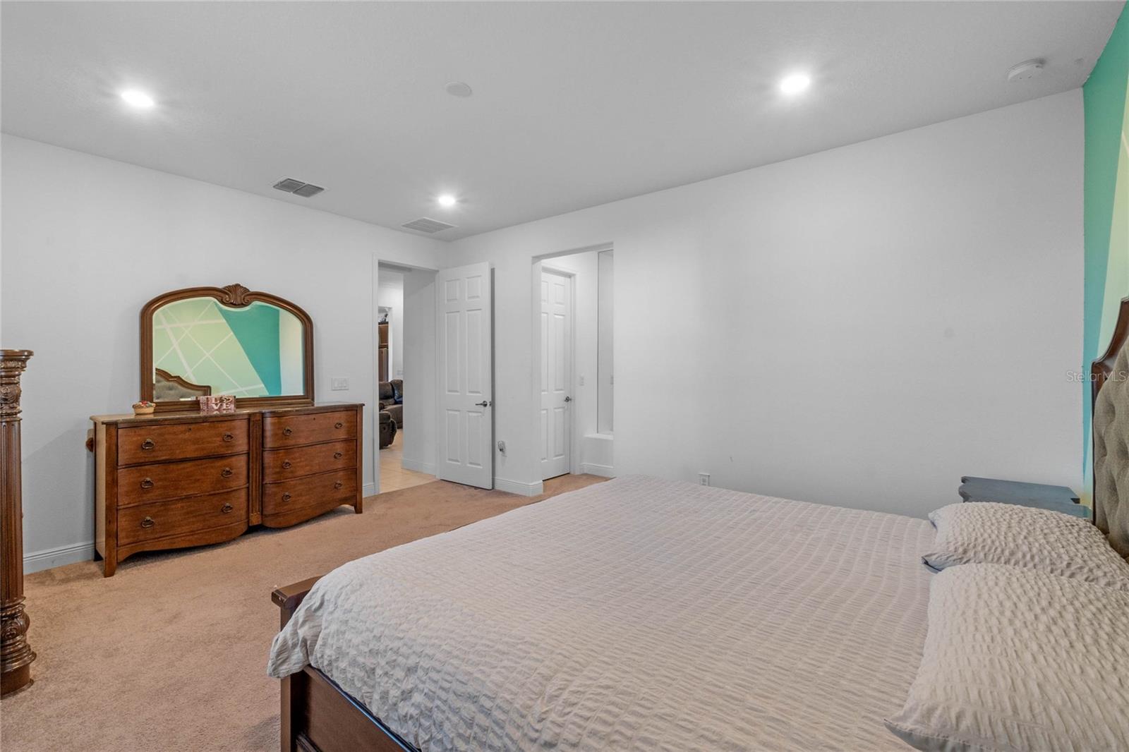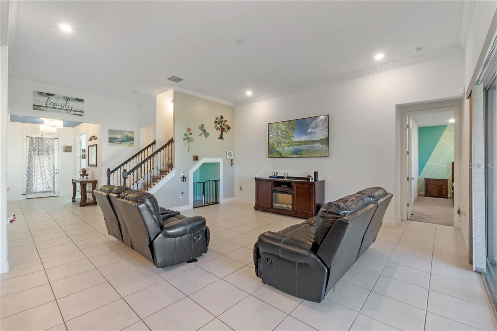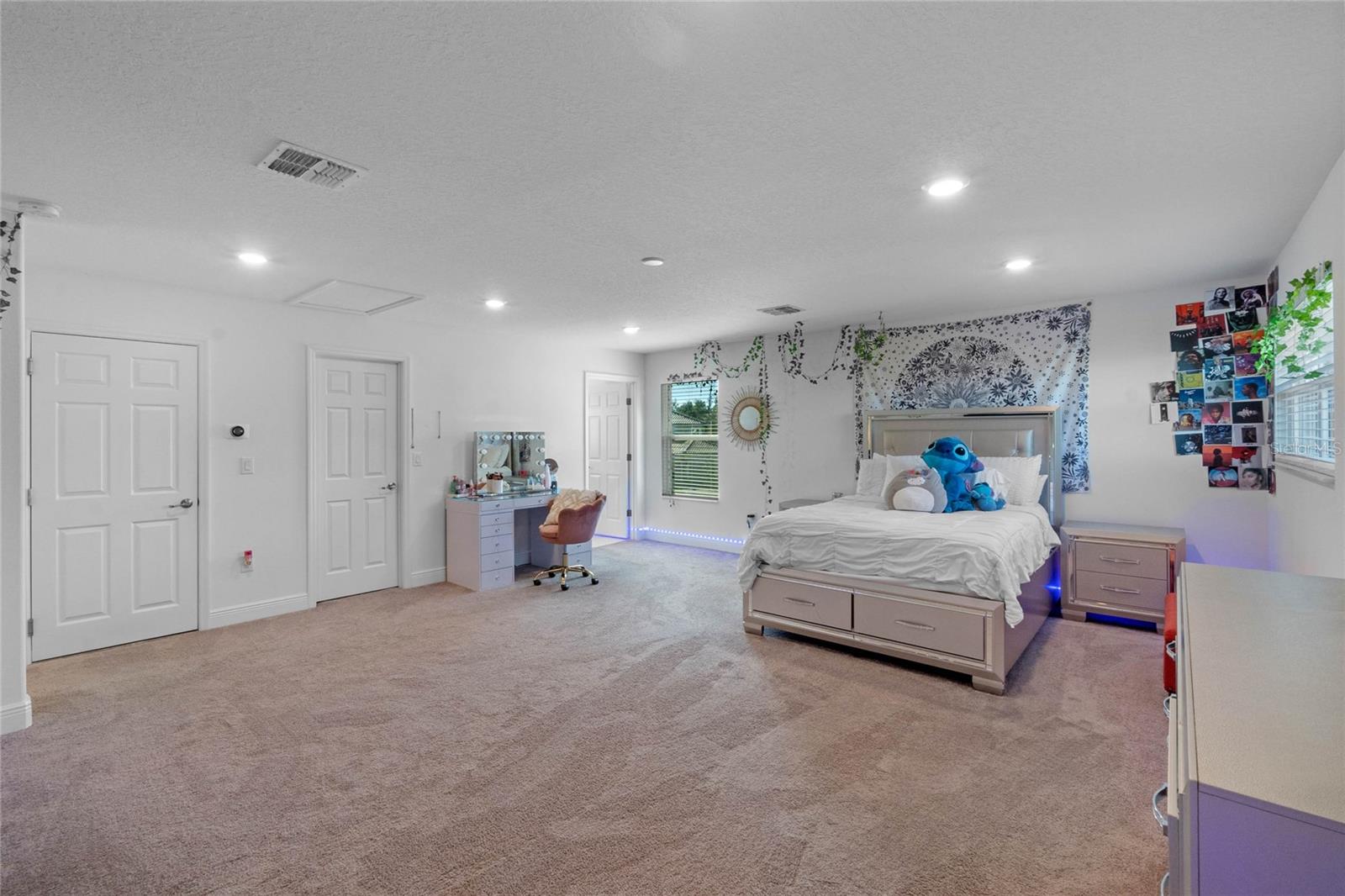 Welcome to the magnificent and impeccably maintained home nestled in the stunning resort-style community of Bellalago! This exquisite 4-bedroom, 4-bath residence, complete with an upstairs bonus room, boasts luxurious features such as crown molding, 5-inch baseboards, 8-foot doors, 12-foot ceilings, and elegant bullnose cornering throughout. As you arrive, you'll be captivated by the charming paver driveway, Spanish-style roof, manicured landscaping adorned with palm trees, covered rear porch, and a screened lanai. Step inside to discover an elegant foyer with tray ceilings, tile floors, and recessed lighting. To the right, two guest bedrooms share a full bath featuring a granite single sink vanity and a tiled tub/shower combo. On the left, through double doors, you'll find a perfect office space for remote work or hobbies. The heart of this home is the spacious and cozy living room, seamlessly connected to an open-concept kitchen. This airy space is ideal for entertaining, featuring an eat-in kitchen with additional bar top seating. The gourmet kitchen showcases 42-inch soft-close cabinets with crown molding, granite countertops, walk-in pantry storage, stainless steel appliances, double ovens, an electric cooktop, and elegant crystal pendant lighting. The living room opens to a covered paver patio, perfect for summer grilling. Retreat to the primary suite for rest and relaxation, where the primary bath offers dual vanities, extra counter space, a separate water closet, a glass door shower, and a walk-in closet. The versatile upstairs bonus room, with its ensuite bathroom and walk-in closet, offers additional storage and can easily serve as a fifth bedroom or a fantastic movie room, perfect for entertaining or watching the big game. This home also includes a large 20' x 20' garage with high ceilings, attic access with stairs, and a water softener. The laundry room is equally impressive with wood cabinets, a granite countertop, and a convenient laundry sink. The outdoor patio, pre-plumbed and awaiting your creative touch, is perfect for an outdoor kitchen. This home boasts upgrades not found in new construction, and you can move in without delay. Bellalago offers a wealth of resort-style amenities, including Club Vialago with 2 fitness centers, 2 swimming pools, a hot tub and splash pad, a fishing pier, public boat ramp, restaurant/bar, workout classes, community events, parks, playgrounds, a dog park, scenic bike routes, and walking trails. Conveniently located near shopping, dining, Publix, Walgreens, Walmart, Bellalago Academy, and Valencia College, this home is perfect for boat or nature enthusiasts, or anyone seeking their own piece of paradise close to beaches, Disney, and Universal Theme Parks. Experience all Florida has to offer—this home will not disappoint!