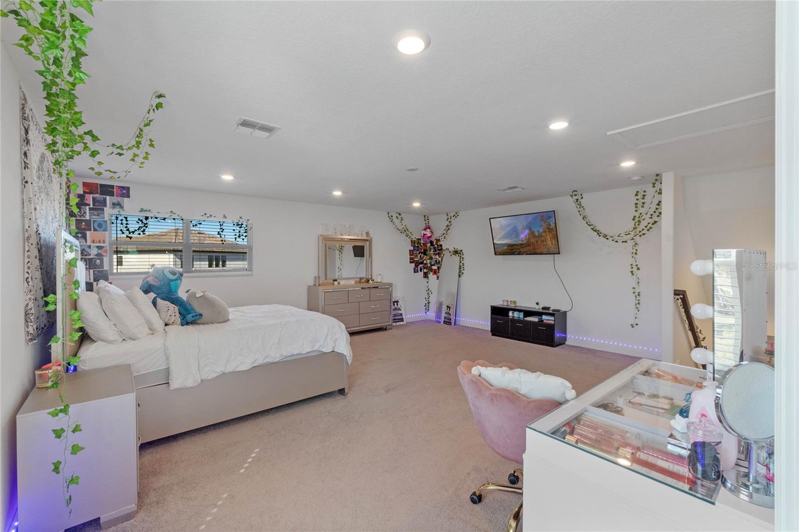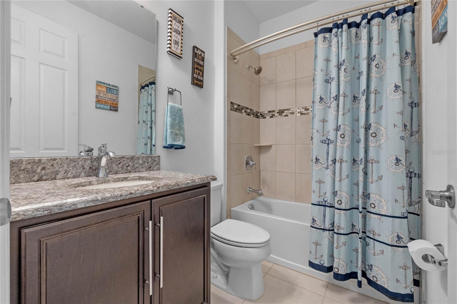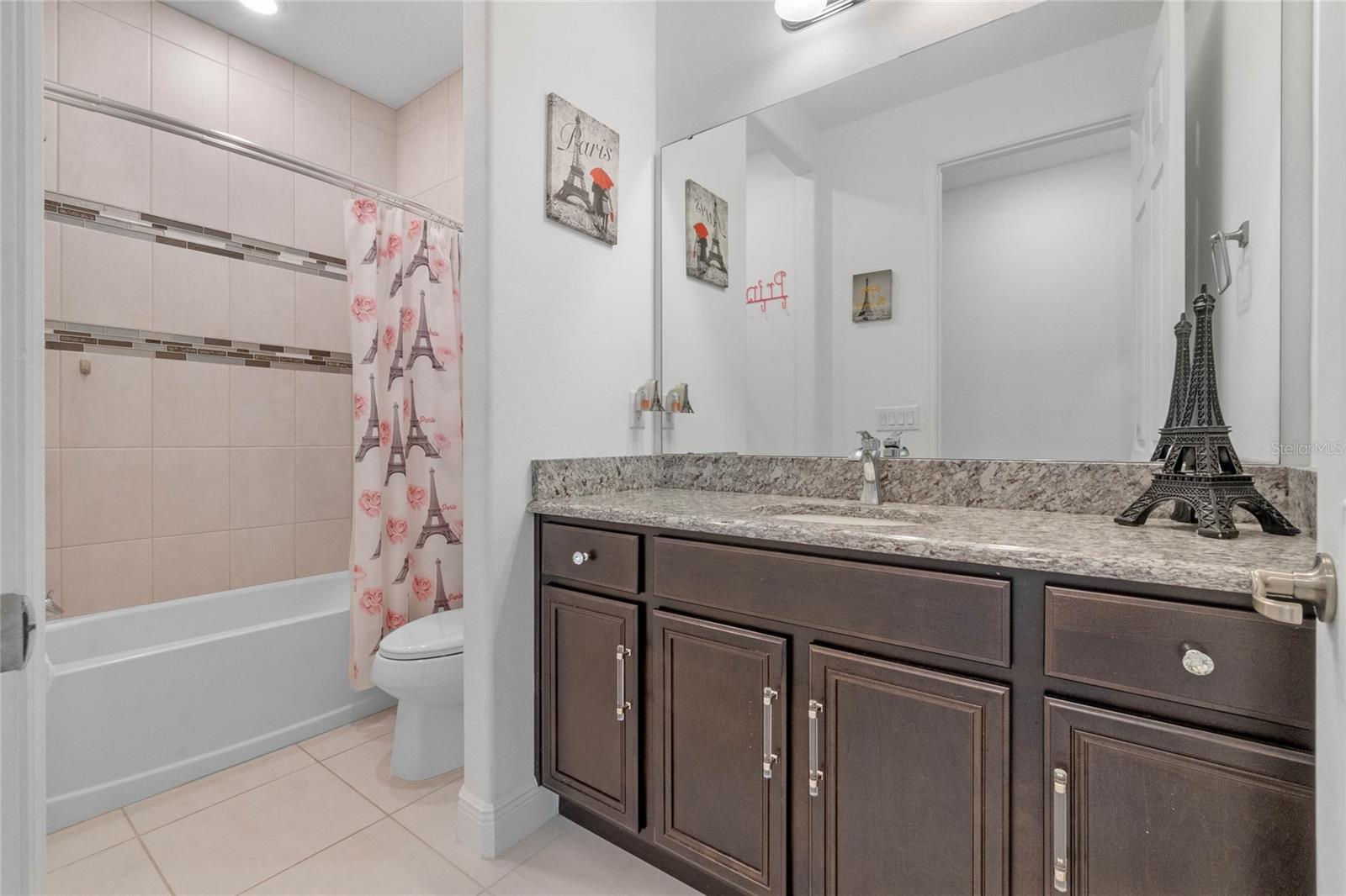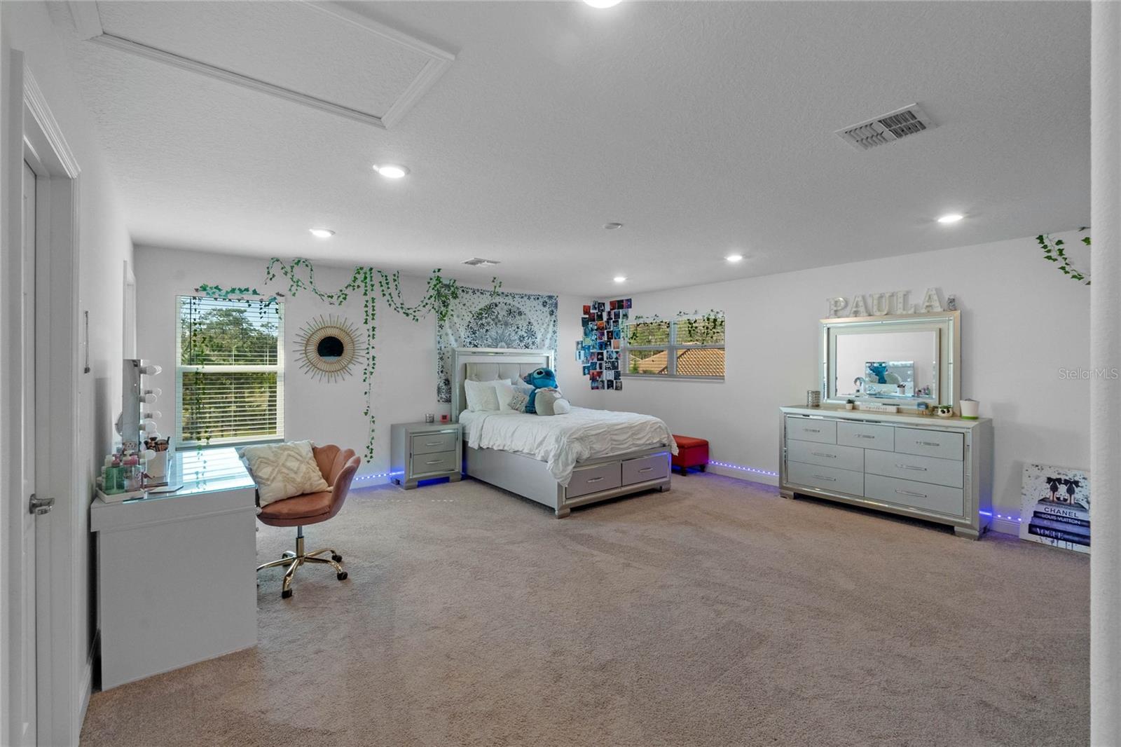 Welcome to the magnificent and impeccably maintained home nestled in the stunning resort-style community of Bellalago! This exquisite 4-bedroom, 4-bath residence, complete with an upstairs bonus room, boasts luxurious features such as crown molding, 5-inch baseboards, 8-foot doors, 12-foot ceilings, and elegant bullnose cornering throughout. As you arrive, you'll be captivated by the charming paver driveway, Spanish-style roof, manicured landscaping adorned with palm trees, covered rear porch, and a screened lanai. Step inside to discover an elegant foyer with tray ceilings, tile floors, and recessed lighting. To the right, two guest bedrooms share a full bath featuring a granite single sink vanity and a tiled tub/shower combo. On the left, through double doors, you'll find a perfect office space for remote work or hobbies. The heart of this home is the spacious and cozy living room, seamlessly connected to an open-concept kitchen. This airy space is ideal for entertaining, featuring an eat-in kitchen with additional bar top seating. The gourmet kitchen showcases 42-inch soft-close cabinets with crown molding, granite countertops, walk-in pantry storage, stainless steel appliances, double ovens, an electric cooktop, and elegant crystal pendant lighting. The living room opens to a covered paver patio, perfect for summer grilling. Retreat to the primary suite for rest and relaxation, where the primary bath offers dual vanities, extra counter space, a separate water closet, a glass door shower, and a walk-in closet. The versatile upstairs bonus room, with its ensuite bathroom and walk-in closet, offers additional storage and can easily serve as a fifth bedroom or a fantastic movie room, perfect for entertaining or watching the big game. This home also includes a large 20' x 20' garage with high ceilings, attic access with stairs, and a water softener. The laundry room is equally impressive with wood cabinets, a granite countertop, and a convenient laundry sink. The outdoor patio, pre-plumbed and awaiting your creative touch, is perfect for an outdoor kitchen. This home boasts upgrades not found in new construction, and you can move in without delay. Bellalago offers a wealth of resort-style amenities, including Club Vialago with 2 fitness centers, 2 swimming pools, a hot tub and splash pad, a fishing pier, public boat ramp, restaurant/bar, workout classes, community events, parks, playgrounds, a dog park, scenic bike routes, and walking trails. Conveniently located near shopping, dining, Publix, Walgreens, Walmart, Bellalago Academy, and Valencia College, this home is perfect for boat or nature enthusiasts, or anyone seeking their own piece of paradise close to beaches, Disney, and Universal Theme Parks. Experience all Florida has to offer—this home will not disappoint!