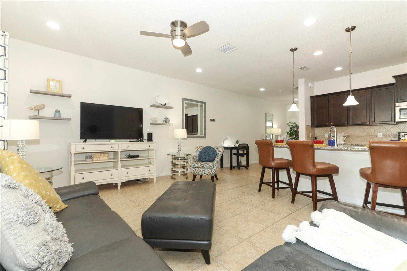 Location, location location !!!! This beautiful turn key ready townhome WITH ALLL THE FURNITURE INCLUDED !!! located in the desirable Windsor at Westside community. Use as your own live in property or Airbnb or both ? When entering the front door to the left is the perfect guest bedroom with a full bathroom right out in the hallway. As you continue in the foyer, you’re welcomed into the open concept space. This immaculate kitchen features stainless steel appliances, dark cabinetry with crown molding, and granite countertops with a large middle island with breakfast bar seating. The sliding glass doors at the back of the home open to create the best indoor-outdoor space overlooking the PRIVATE HEATED POOL. Upstairs is a great loft space for an additional family room to relax after a long day at the parks. The 3 remaining bedrooms and 2 bathrooms are located on the 2nd floor including the primary bedroom. This Windsor at Westside community offers spectacular Resort amenities including a Clubhouse, resort style pool & lounge complex, lazy river, jacuzzi, slides, volleyball, basketball, and tennis courts and a full exercise room/gym. The resort is strategically located in the West Kissimmee area, with easy access to all the theme parks, dining, and shopping. Oh yes , did i already mention the furniture is included . schedule your showing now !!:)