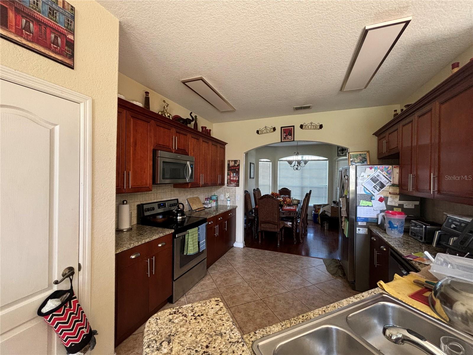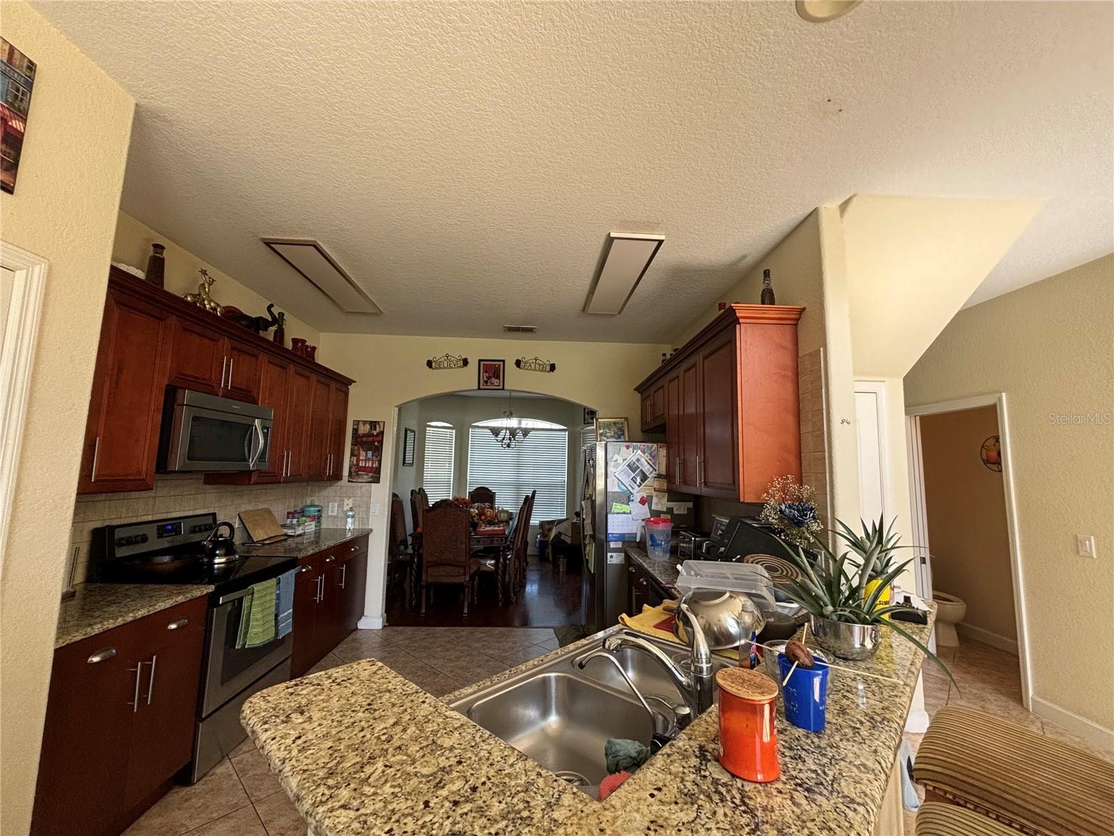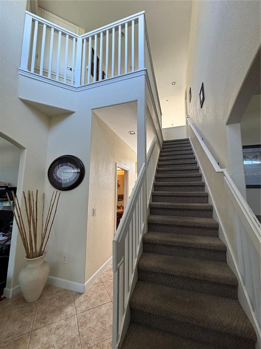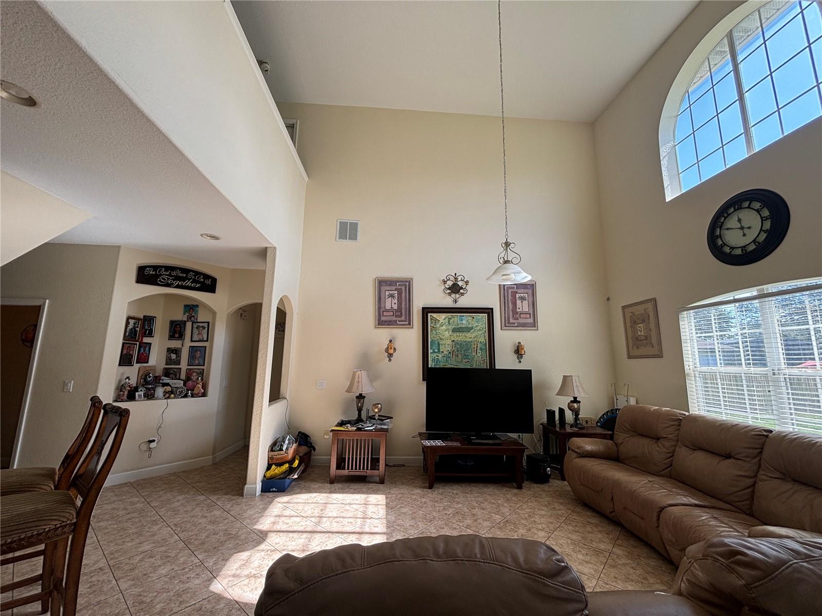 Look no further you are home sweet home. Welcome to the gorgeous neighborhood of Poinciana Village, a quaint community, on a quiet street yet close to everything. This home used to be a model home, boasting huge 4-bedrooms and two-and-a-half-baths, a bonus room/office on the primary level, and a two-car garage. Enjoy conversations with your family with this open floor plan concept while preparing meals in this impressive kitchen boasting tall cabinets, and granite countertops. Lighting, ceiling fans, and fixtures flow throughout the house, with large windows bringing in the natural light. The main bedroom is located downstairs and boasts a private ensuite with dual sinks and a separate tub and shower. There is tile throughout the downstairs, while the upstairs bedrooms feature carpet, ceiling fans, and ample closet space. Looking for some R&R after a long day? Step outside onto your lanai and enjoy the view of the vast over 1/2 an acre property with limitless potential. Don't miss this incredible opportunity to purchase your dream home, schedule a showing today this one won't last long.