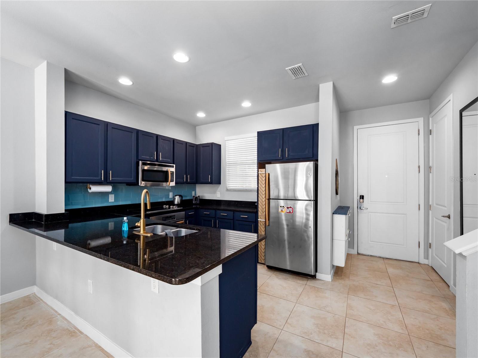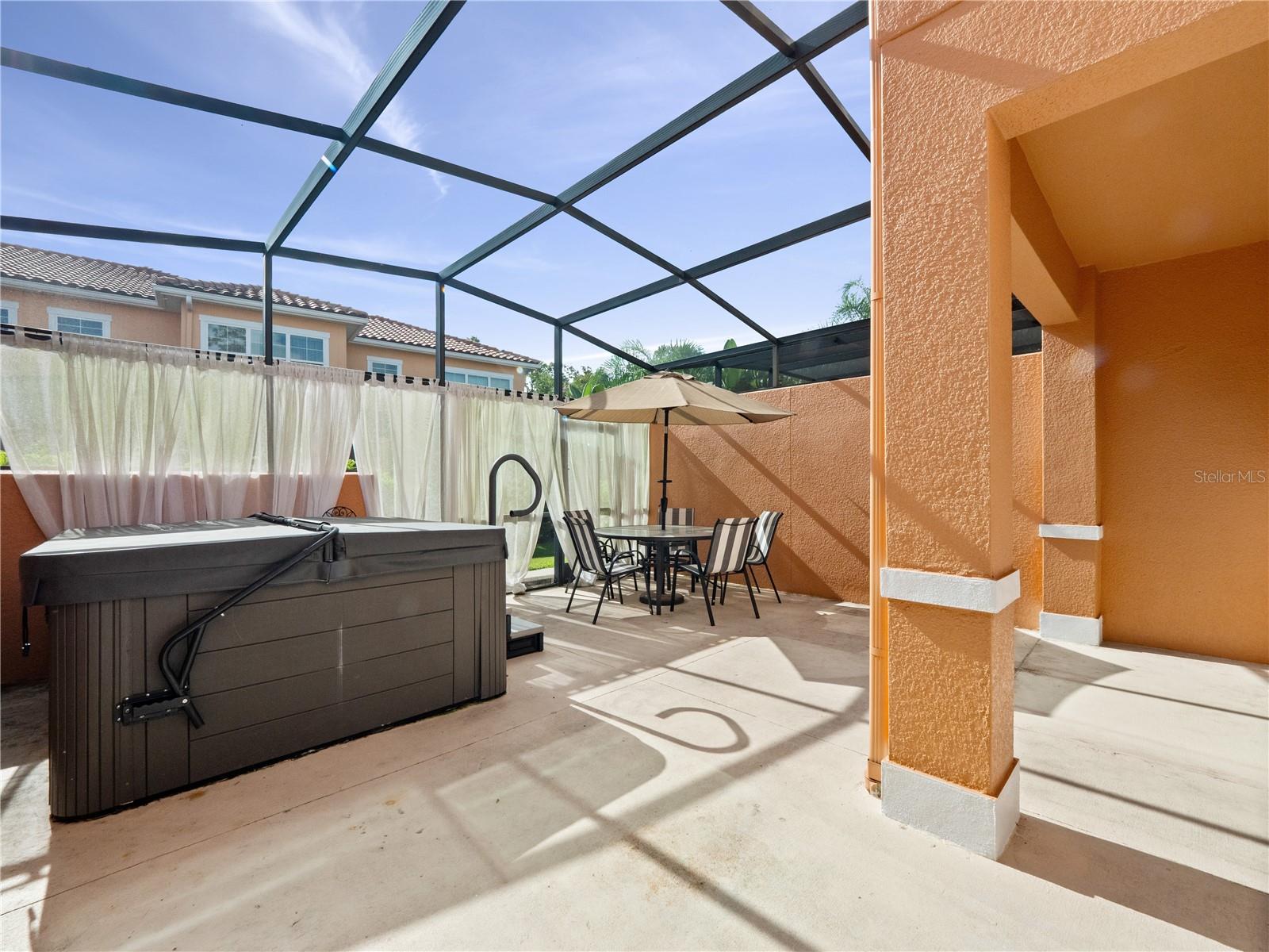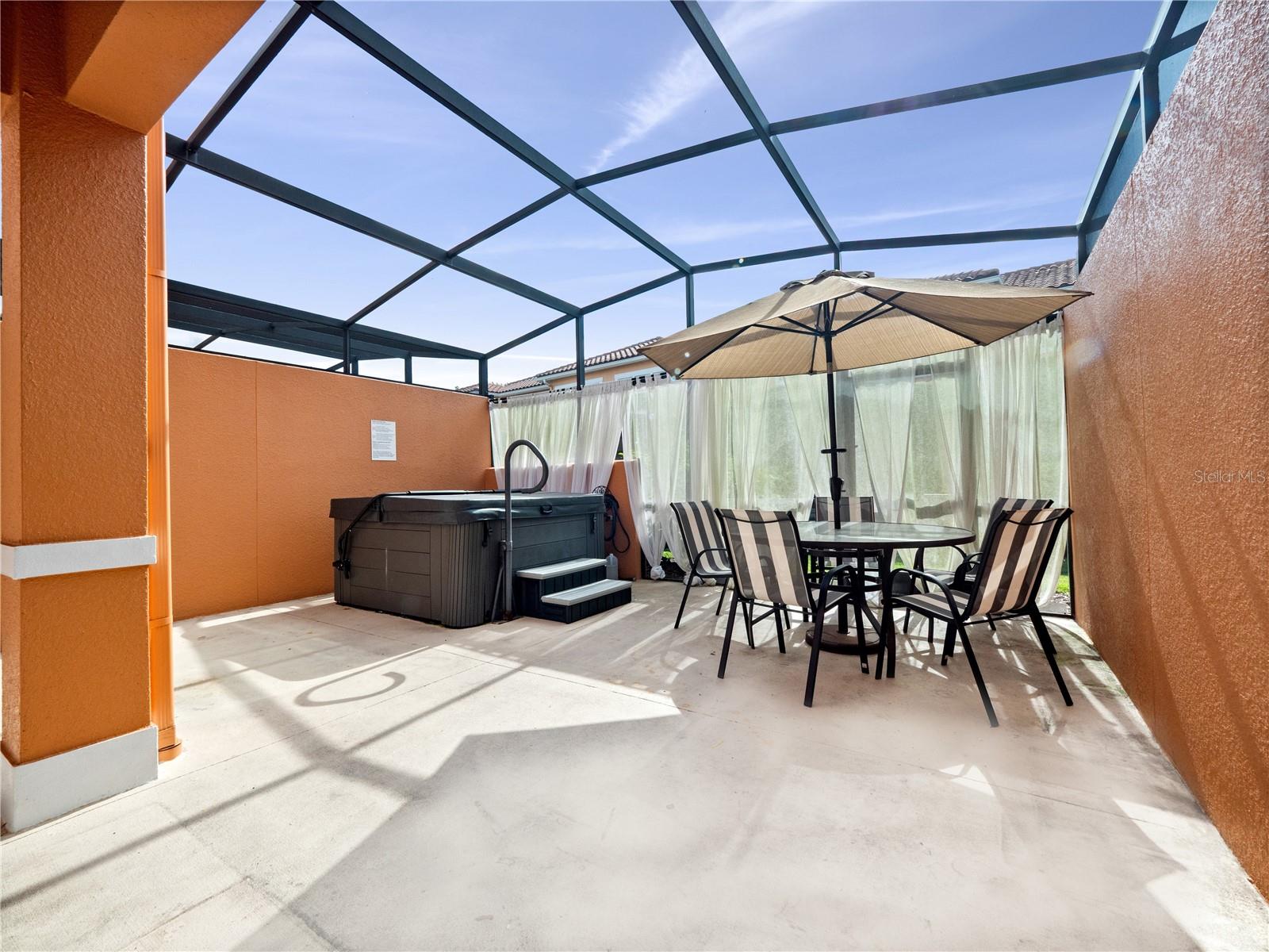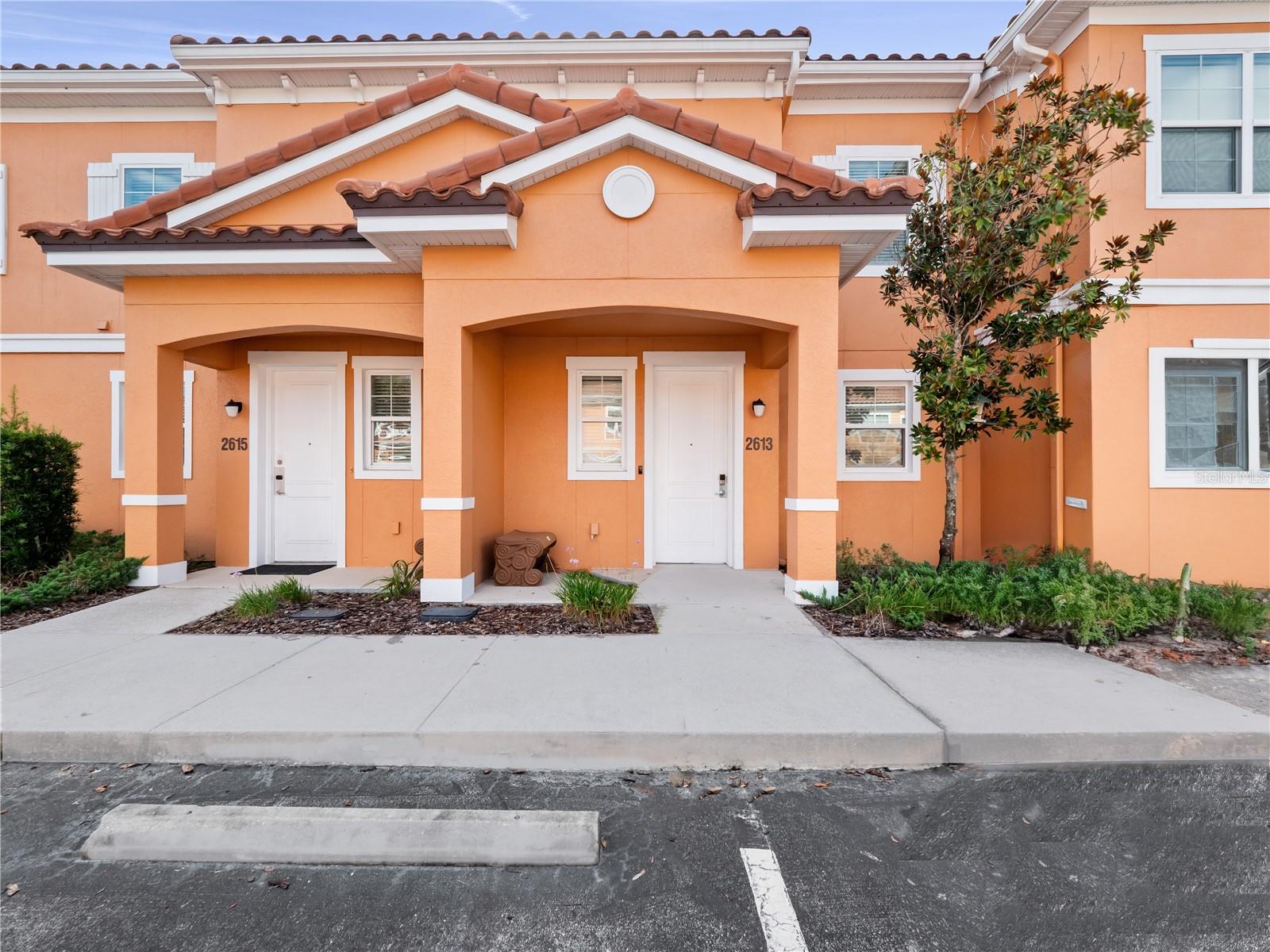 Beautiful Resort Community! This Tastefully decorated 2 Bedrooms 2.5 Bath Townhome in Regal Oaks at Old Town comes furnished and is perfect for a Vacation Rental or Primary Residence. Luxury Vinyl Plank was recently put on stairs and upstairs. Tile throughout the first floor. Stone countertops in kitchen and bathrooms. Location is key and close to all of the magic! You can ride your golf cart ?that is included with purchase? within the community and enjoy the wonderful Amenities that Regal Oaks offers or just take a short drive up the street to enjoy the fun at Old Town or go five miles to the gates of Walt Disney World! Enjoy all the restaurants and shopping that surrounds the area. Open floorplan on the first floor with your own personal outdoor oasis as you continue to the lanai. Completely screened and equipped with a free -standing hot tub for your enjoyment. Upstairs, the two bedrooms are on opposite sides of the home, adding to the privacy of each room. The primary suite features an ensuite bathroom, complete with dual sinks, and a shower/tub combo with glass enclosure. The second bedroom also has ensuite bathroom, with dual sinks and a glass-enclosed walk-in shower. Amenities at this resort include a large zero-entry pool; water slides; clubhouse situated on a picturesque pond; restaurant; fitness center; sundries shop; and tennis court. **Zoned for Short term and Long term Leasing **Golf Cart included