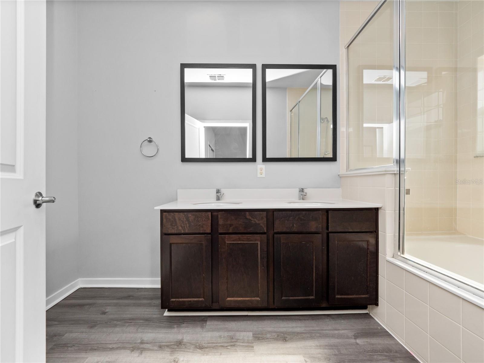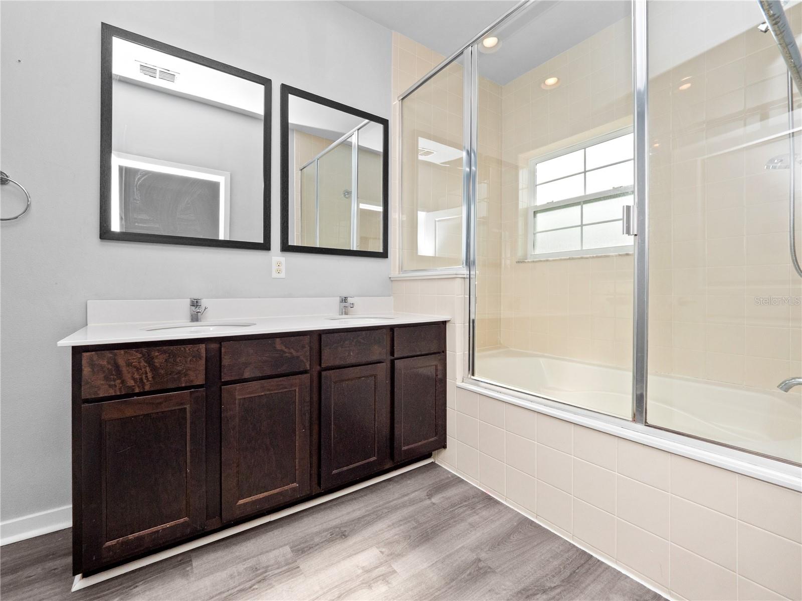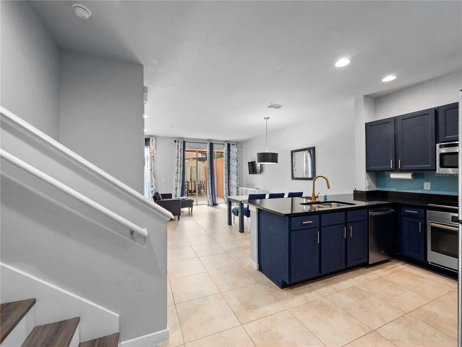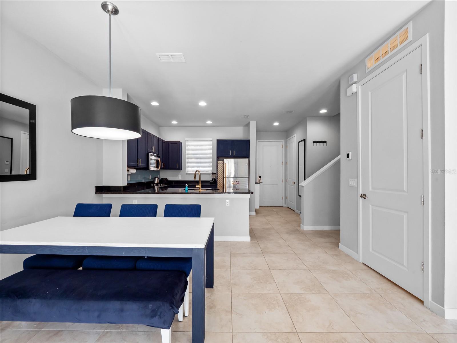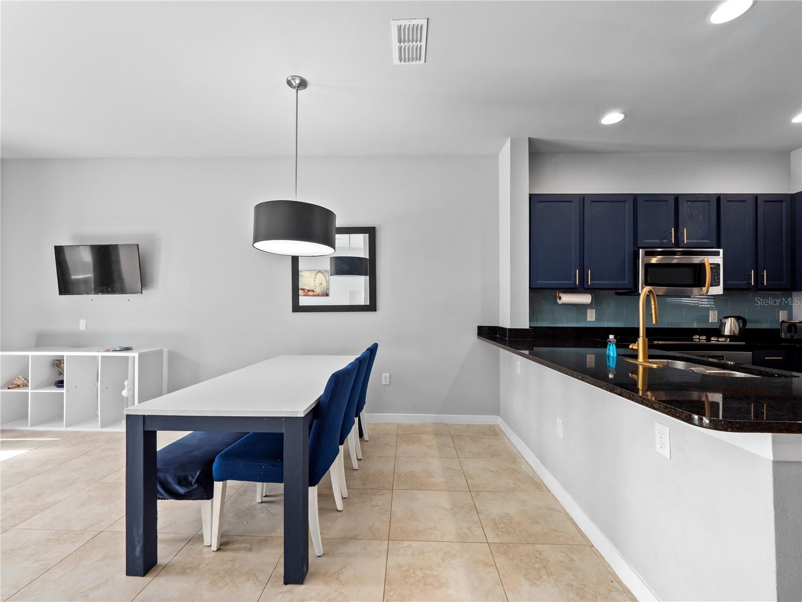 Beautiful Resort Community! This Tastefully decorated 2 Bedrooms 2.5 Bath Townhome in Regal Oaks at Old Town comes furnished and is perfect for a Vacation Rental or Primary Residence. Luxury Vinyl Plank was recently put on stairs and upstairs. Tile throughout the first floor. Stone countertops in kitchen and bathrooms. Location is key and close to all of the magic! You can ride your golf cart ?that is included with purchase? within the community and enjoy the wonderful Amenities that Regal Oaks offers or just take a short drive up the street to enjoy the fun at Old Town or go five miles to the gates of Walt Disney World! Enjoy all the restaurants and shopping that surrounds the area. Open floorplan on the first floor with your own personal outdoor oasis as you continue to the lanai. Completely screened and equipped with a free -standing hot tub for your enjoyment. Upstairs, the two bedrooms are on opposite sides of the home, adding to the privacy of each room. The primary suite features an ensuite bathroom, complete with dual sinks, and a shower/tub combo with glass enclosure. The second bedroom also has ensuite bathroom, with dual sinks and a glass-enclosed walk-in shower. Amenities at this resort include a large zero-entry pool; water slides; clubhouse situated on a picturesque pond; restaurant; fitness center; sundries shop; and tennis court. **Zoned for Short term and Long term Leasing **Golf Cart included