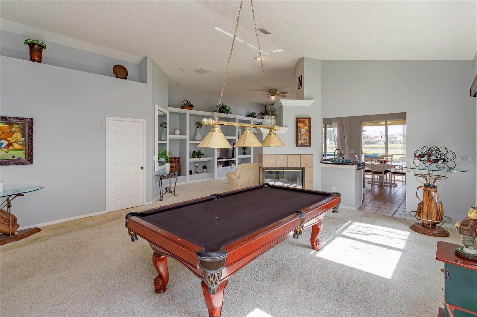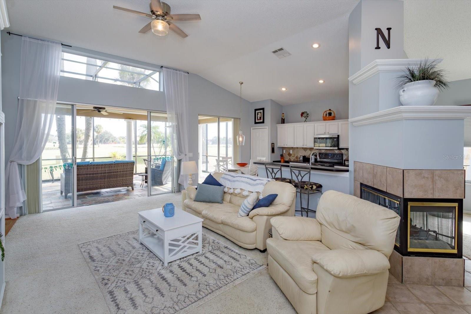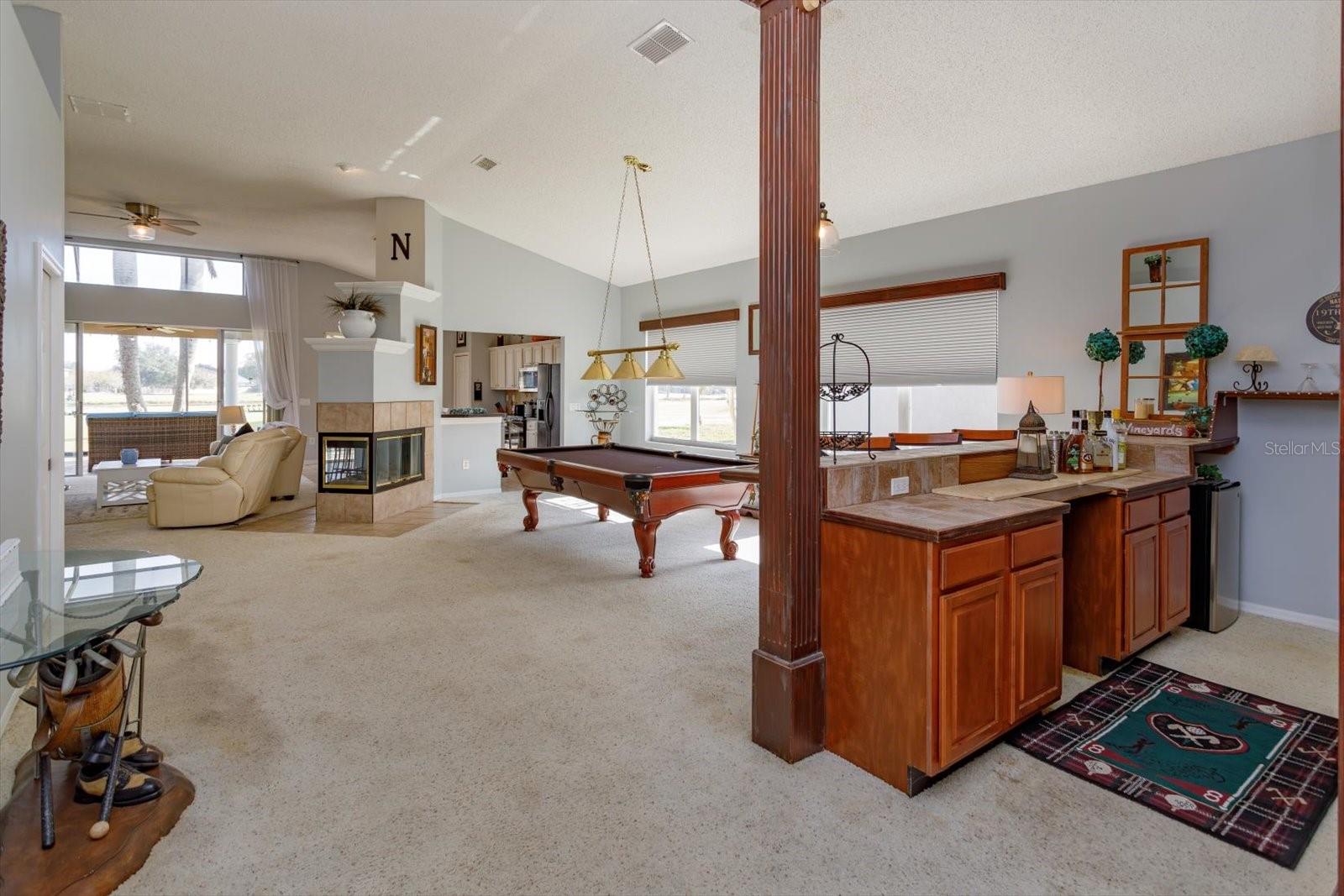 LOCATION LOCATION LOCATION GOLF FRONT! WATER VIEW! A canopy of trees welcomes you inside this GATED community and guide you to this 3-BED / 3-BATH home, quietly tucked deep inside the Remington community away from the street. This home boasts AN EXPANSIVE LANAI and GORGEOUS SLATE pavers which delightfully accouter the overlook of the wide FAIRWAY of the 5th tee and enjoys a POND VIEW too – perfect for hosting or just relaxing in the morning sun. Connect with your OUTDOOR LIVING SPACE through the multi-panel sliding doors just off the GREAT ROOM! CATHEDRAL CEILINGS frame an OPEN FLOOR PLAN including KITCHEN with white wood cabinets and Whirlpool appliances; GREAT ROOM has built-ins and new ceiling fan fixture; and a massive DINING AREA complete with a MAGNIFICIENT WET BAR, large enough, and OPEN enough, to accommodate a full-sized POOL TABLE (purportedly built for Grant Hill). The wet bar includes a BRASS SINK plus a KEG PUMP. The 3-sided WOOD-BURNING FIREPLACE accents the heart of it all! EACH BEDROOM can claim its OWN BATHROOM – perfect for hosting your overnight guests! The PRIMARY SUITE is spacious with two gorgeous windows and a built-in headboard that surround the bed and is situated with an ensuite bath -- graced with a large soaking garden tub and shower! The Laundry Room is centrally located for convenience. AC is 2 YEARS and the ROOF is 4 YEARS young! The GARAGE flaunts high ceilings, a side door egress, and is large enough to house an 18’ fishing boat (on the diagonal, of course). The Remington Community IS GATED and features a private and public Par 72 CHAMPIONSHIP LEVEL GOLF COURSE, tennis courts, POOL, volleyball court, and playground. The HOA/Maintenance and Operating dues are affordable for all of these amenities. The community is close to Disney-themed attractions, Osceola Performing Arts, Valencia College, Osceola Heritage Park (rodeo), MCO airport, and some of the FINEST FISHING AROUND at TOHO AND EAST LAKE TOHO which are just a few short minutes away! The Atlantic coast is just one hour away! Come discover it all for yourself!