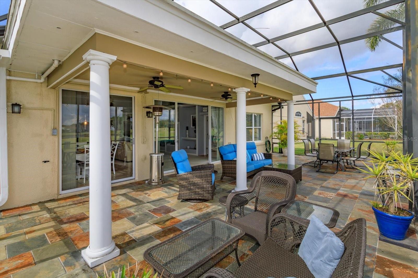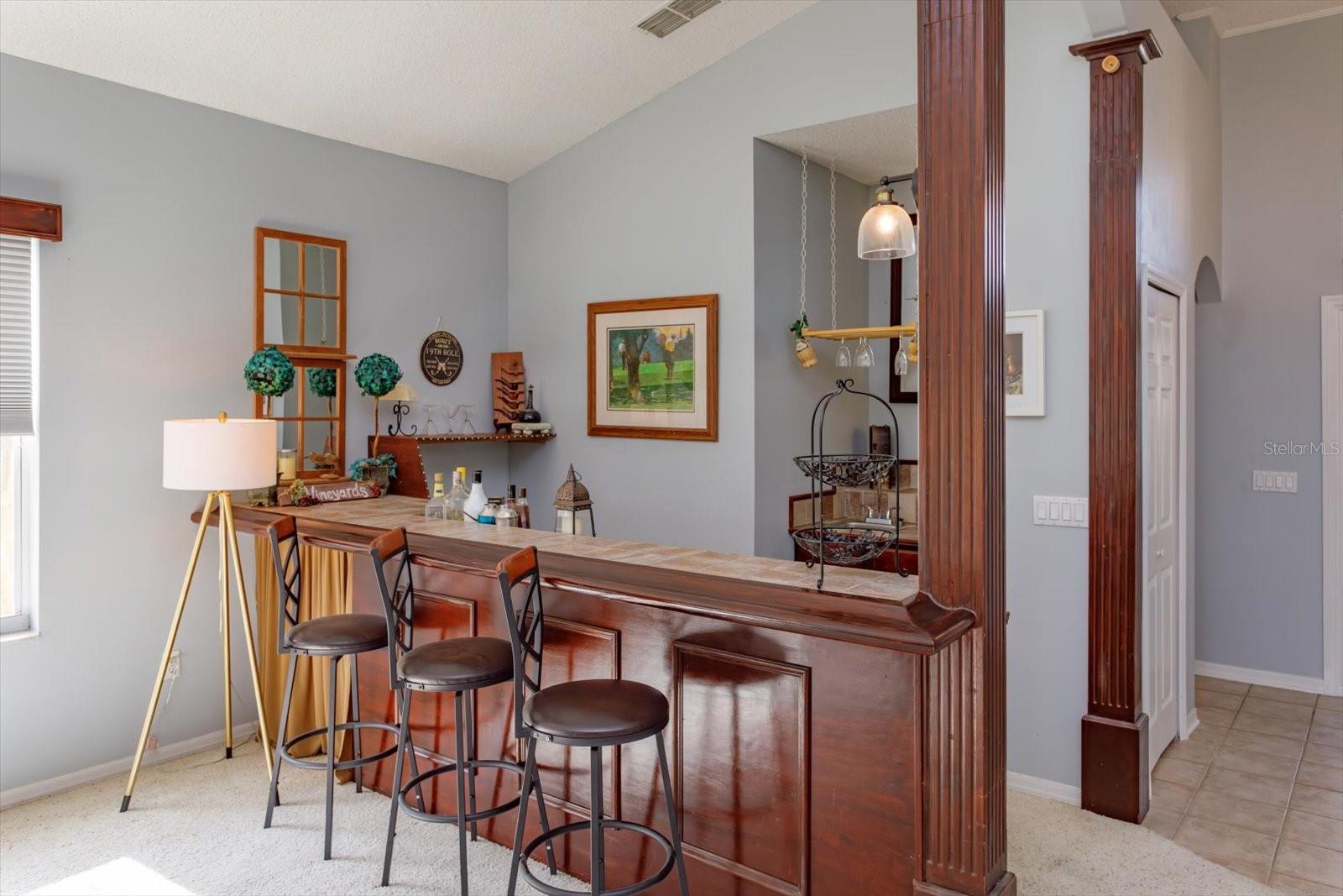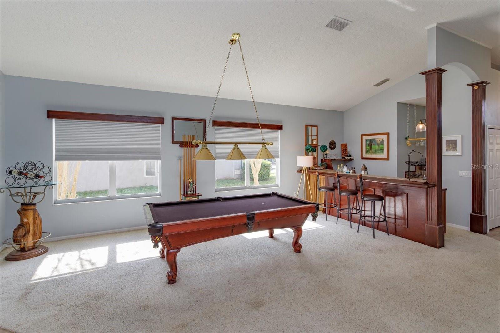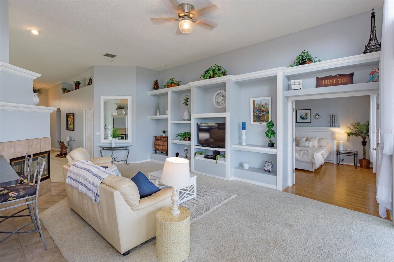 LOCATION LOCATION LOCATION GOLF FRONT! WATER VIEW! A canopy of trees welcomes you inside this GATED community and guide you to this 3-BED / 3-BATH home, quietly tucked deep inside the Remington community away from the street. This home boasts AN EXPANSIVE LANAI and GORGEOUS SLATE pavers which delightfully accouter the overlook of the wide FAIRWAY of the 5th tee and enjoys a POND VIEW too – perfect for hosting or just relaxing in the morning sun. Connect with your OUTDOOR LIVING SPACE through the multi-panel sliding doors just off the GREAT ROOM! CATHEDRAL CEILINGS frame an OPEN FLOOR PLAN including KITCHEN with white wood cabinets and Whirlpool appliances; GREAT ROOM has built-ins and new ceiling fan fixture; and a massive DINING AREA complete with a MAGNIFICIENT WET BAR, large enough, and OPEN enough, to accommodate a full-sized POOL TABLE (purportedly built for Grant Hill). The wet bar includes a BRASS SINK plus a KEG PUMP. The 3-sided WOOD-BURNING FIREPLACE accents the heart of it all! EACH BEDROOM can claim its OWN BATHROOM – perfect for hosting your overnight guests! The PRIMARY SUITE is spacious with two gorgeous windows and a built-in headboard that surround the bed and is situated with an ensuite bath -- graced with a large soaking garden tub and shower! The Laundry Room is centrally located for convenience. AC is 2 YEARS and the ROOF is 4 YEARS young! The GARAGE flaunts high ceilings, a side door egress, and is large enough to house an 18’ fishing boat (on the diagonal, of course). The Remington Community IS GATED and features a private and public Par 72 CHAMPIONSHIP LEVEL GOLF COURSE, tennis courts, POOL, volleyball court, and playground. The HOA/Maintenance and Operating dues are affordable for all of these amenities. The community is close to Disney-themed attractions, Osceola Performing Arts, Valencia College, Osceola Heritage Park (rodeo), MCO airport, and some of the FINEST FISHING AROUND at TOHO AND EAST LAKE TOHO which are just a few short minutes away! The Atlantic coast is just one hour away! Come discover it all for yourself!