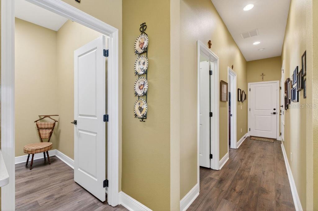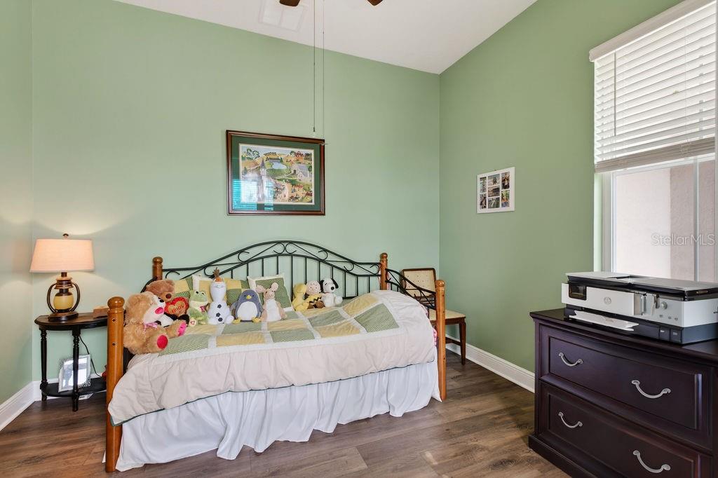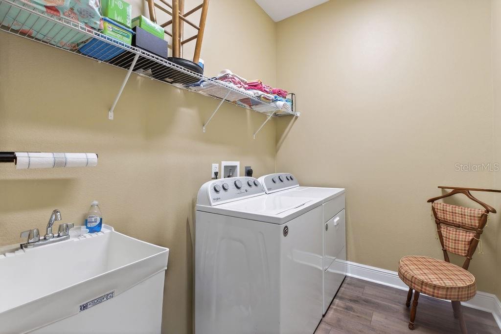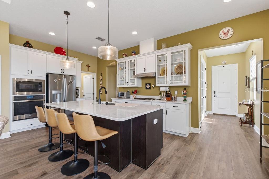 Welcome home to this beautifully appointed 2 bedroom, 2 bath home located in the desirable Four Seasons at Orlando, a premier 55+ community just 15 minutes from Disney! This home sits on a premium corner lot overlooking serene wetlands, offering added privacy and peaceful views. The gourmet kitchen is a standout, featuring granite countertops, 42" cabinets, GE Profile appliances, gas cooktop, in-wall electric oven/microwave, and counter-depth refrigerator (all appliances convey, including washer and dryer). Luxury vinyl flooring flows throughout the home, complemented by thoughtful upgrades such as a tankless gas water heater, water purification system, whole-house gutters, MyQ garage door opener, and an electric vehicle outlet in the garage. Enjoy indoor-outdoor living with an extended covered lanai accessed through triple French doors, perfect for relaxing or entertaining. The spacious primary suite offers an upgraded master shower with seating and frameless (trackless) shower doors. A dedicated office with french doors provides the ideal work or hobby space. Four Seasons at Orlando offers resort-style living with a clubhouse, on-site recreation director, adult and family pools, games, and a full calendar of social events! HOA fees include lawn and shrub care, irrigation, mulching, termite bond, exterior painting, and roof replacement every 10+ years, allowing for truly low-maintenance living. This exceptional home combines luxury, convenience, and an active lifestyle schedule your private showing today!