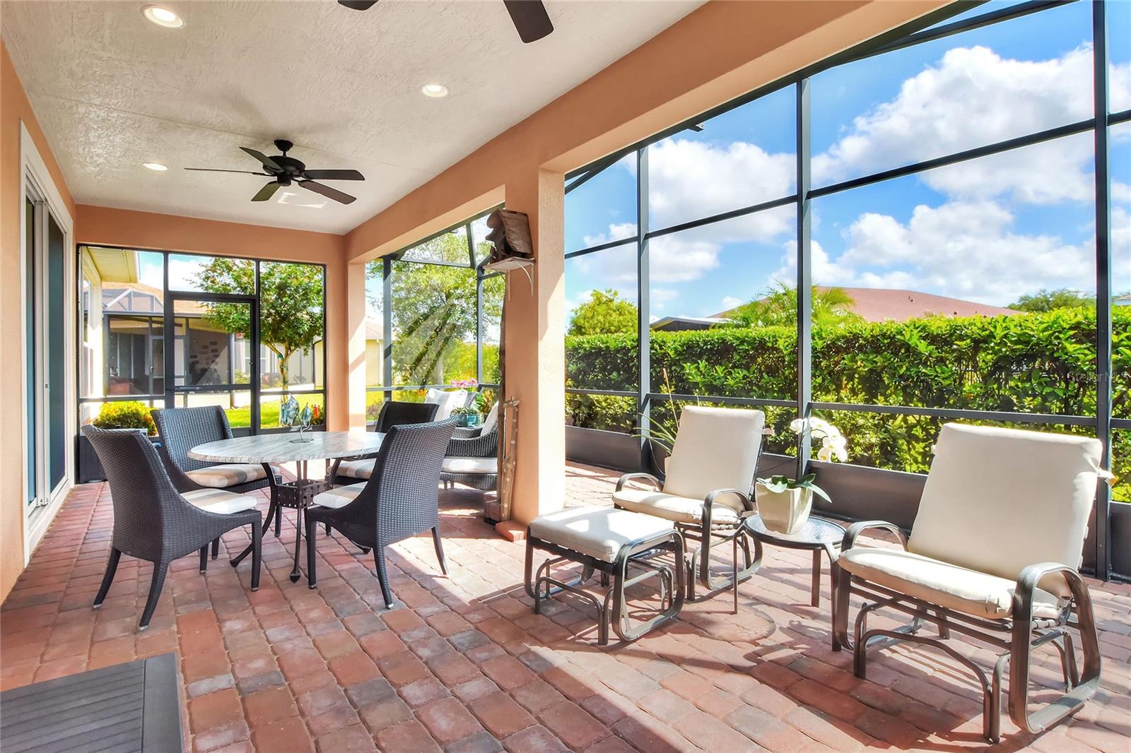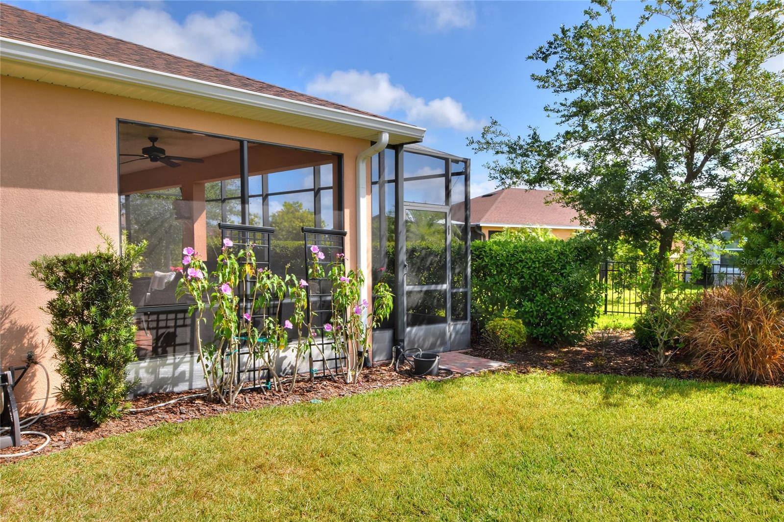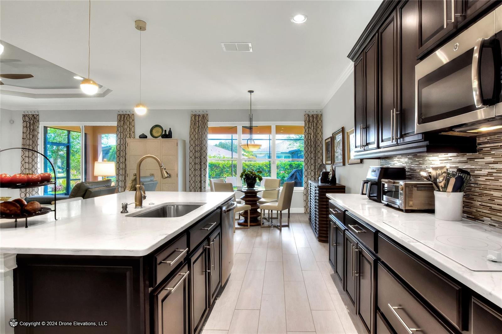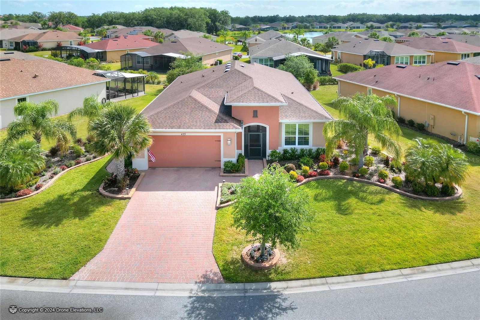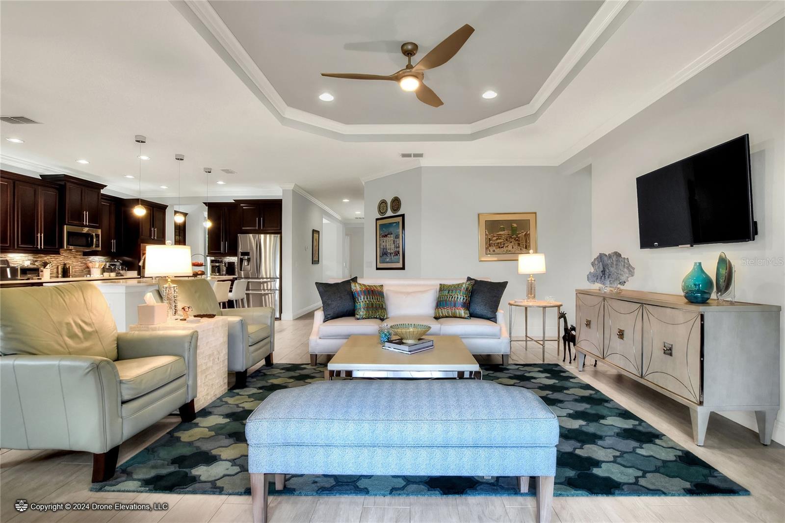 Welcome to this stunning 3-bedroom, 2-bathroom, 2-car garage home in the welcoming Solivita community! Boasting an expansive 2,241 square feet of living space, this meticulously landscaped property showcases beautiful surroundings where no detail has been left undone. Inside, you'll find tray ceilings that add a touch of elegance throughout the home. The gorgeous modern kitchen is a chef's dream, complete with quartz countertops, stainless steel appliances, and a convenient butler's pantry. A lovely dinette just off the kitchen offers a view of the backyard, creating the perfect spot for morning coffee or casual meals. The separate formal dining area and oversized family room provide ideal spaces for entertaining and relaxation. The open floor plan allows for a comfortable flow throughout the home, enhancing the sense of spaciousness.The bonus room could be used as an office, home gym, craft room, etc. Retreat to the beautiful primary suite, where you'll find an amazing en suite bathroom with dual sinks, a sit down vanity with beautiful lighting, and a separate shower and water closet. The enormous walk-in closet with built-in shelves provides ample storage and organization. Both guest suites are cozy and inviting, offering comfortable spaces for family and friends to relax. The well-appointed guest bathroom features modern fixtures and finishes, ensuring your guests have everything they need during their stay. The home also features an inside laundry room with a sink for added convenience. Step outside to the screened back patio with beautiful pavered flooring and enjoy the privacy of the backyard. As a resident of Solivita, you have access to top-notch amenities including clubhouses, fitness centers, swimming pools, golf courses, tennis courts, and a variety of clubs and social events. Don't miss your chance to call this exquisite home in Solivita yours! Schedule a showing today!