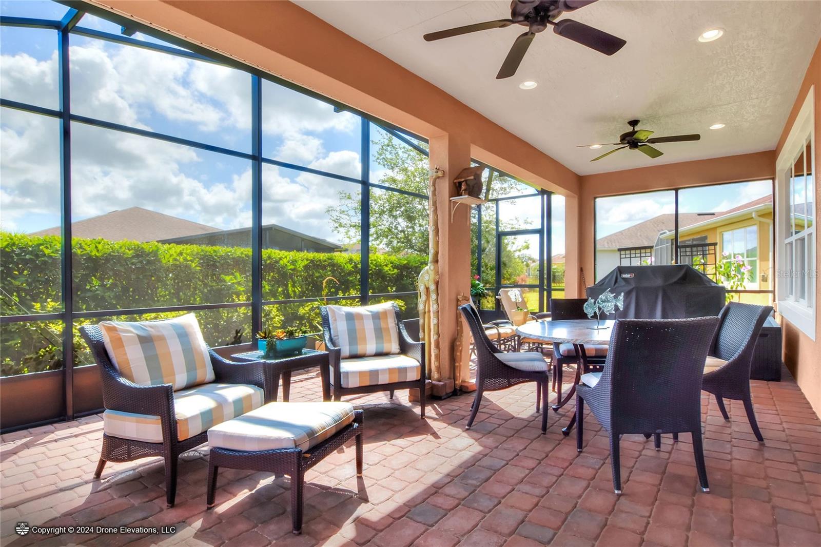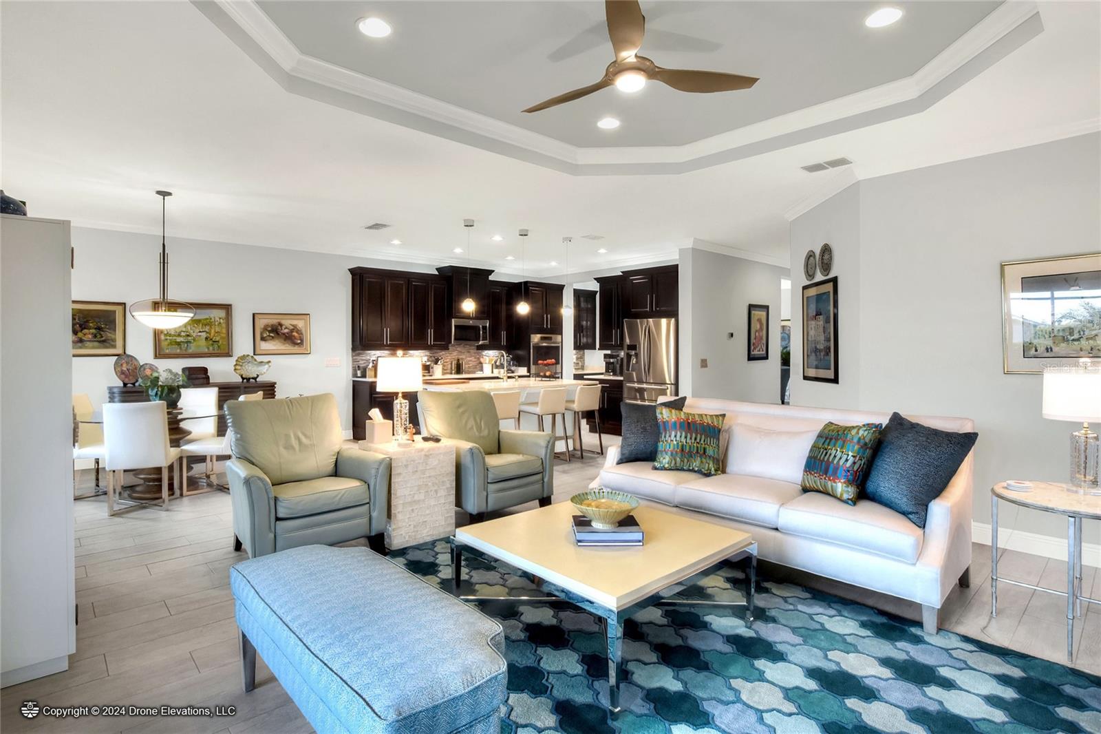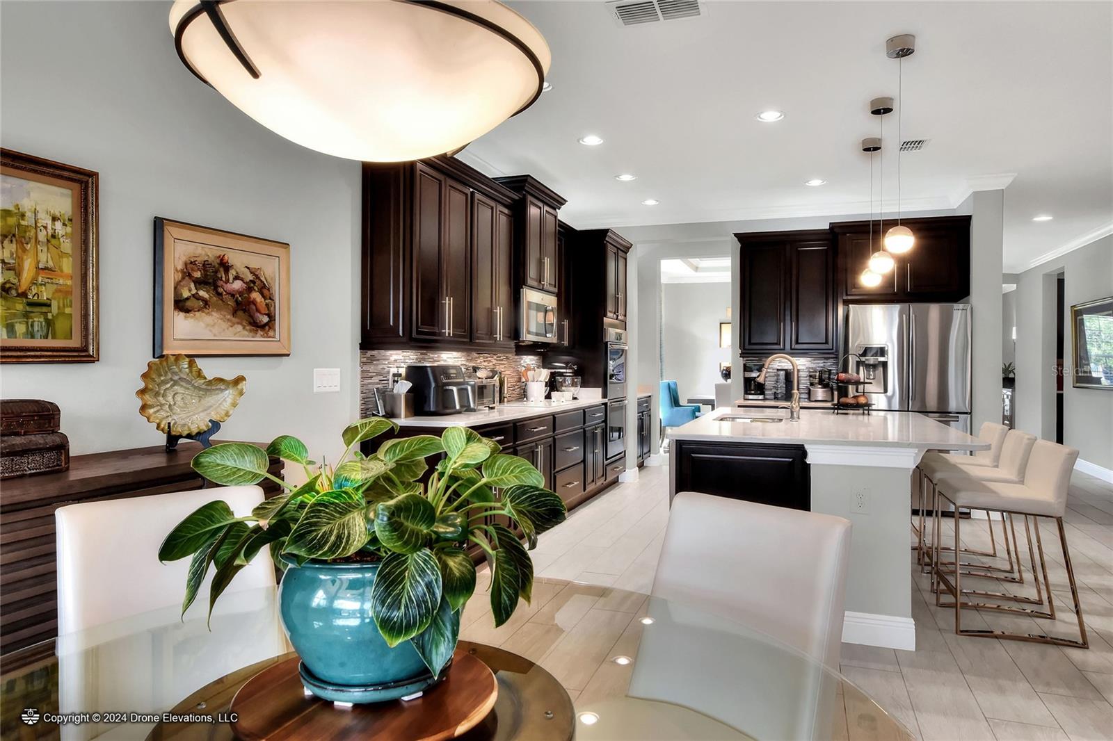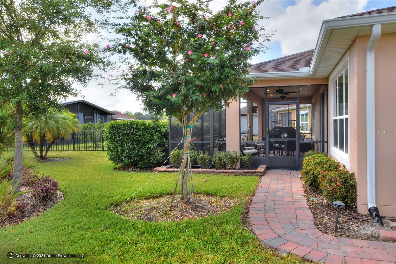 Welcome to this stunning 3-bedroom, 2-bathroom, 2-car garage home in the welcoming Solivita community! Boasting an expansive 2,241 square feet of living space, this meticulously landscaped property showcases beautiful surroundings where no detail has been left undone. Inside, you'll find tray ceilings that add a touch of elegance throughout the home. The gorgeous modern kitchen is a chef's dream, complete with quartz countertops, stainless steel appliances, and a convenient butler's pantry. A lovely dinette just off the kitchen offers a view of the backyard, creating the perfect spot for morning coffee or casual meals. The separate formal dining area and oversized family room provide ideal spaces for entertaining and relaxation. The open floor plan allows for a comfortable flow throughout the home, enhancing the sense of spaciousness.The bonus room could be used as an office, home gym, craft room, etc. Retreat to the beautiful primary suite, where you'll find an amazing en suite bathroom with dual sinks, a sit down vanity with beautiful lighting, and a separate shower and water closet. The enormous walk-in closet with built-in shelves provides ample storage and organization. Both guest suites are cozy and inviting, offering comfortable spaces for family and friends to relax. The well-appointed guest bathroom features modern fixtures and finishes, ensuring your guests have everything they need during their stay. The home also features an inside laundry room with a sink for added convenience. Step outside to the screened back patio with beautiful pavered flooring and enjoy the privacy of the backyard. As a resident of Solivita, you have access to top-notch amenities including clubhouses, fitness centers, swimming pools, golf courses, tennis courts, and a variety of clubs and social events. Don't miss your chance to call this exquisite home in Solivita yours! Schedule a showing today!