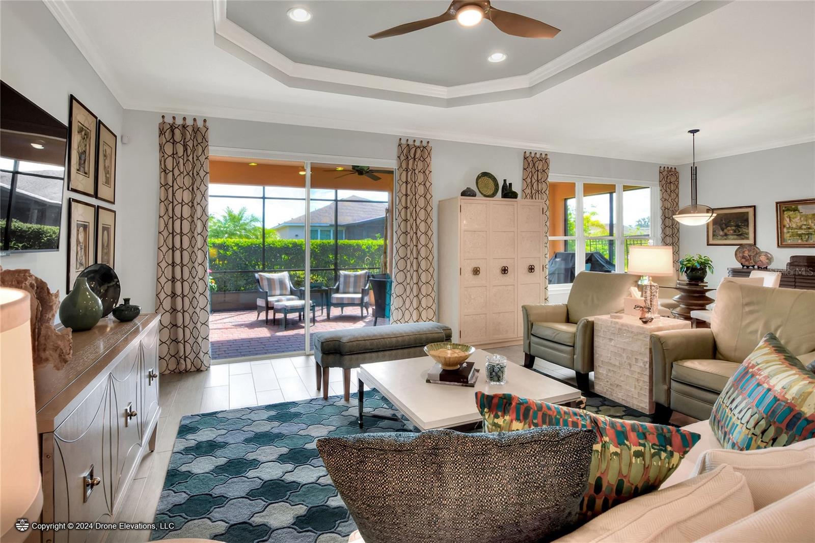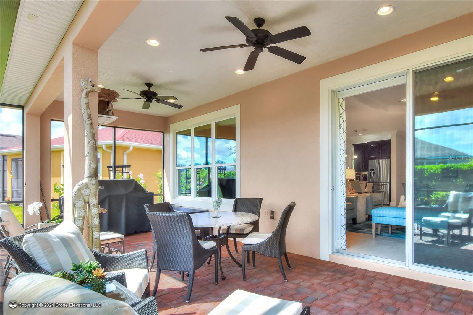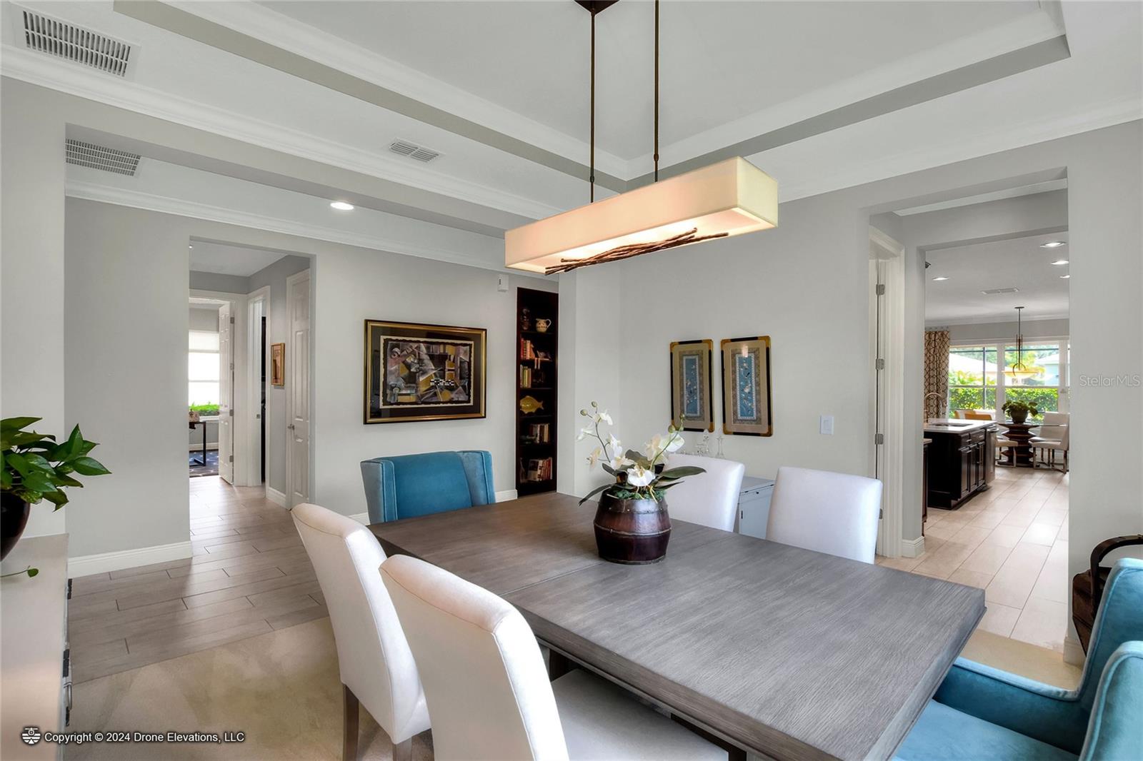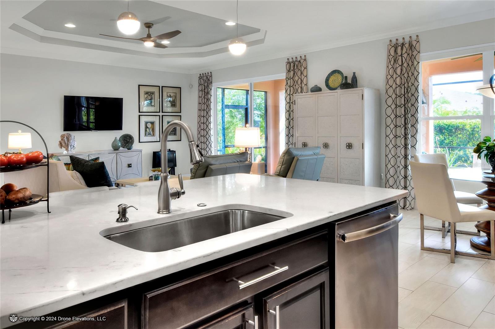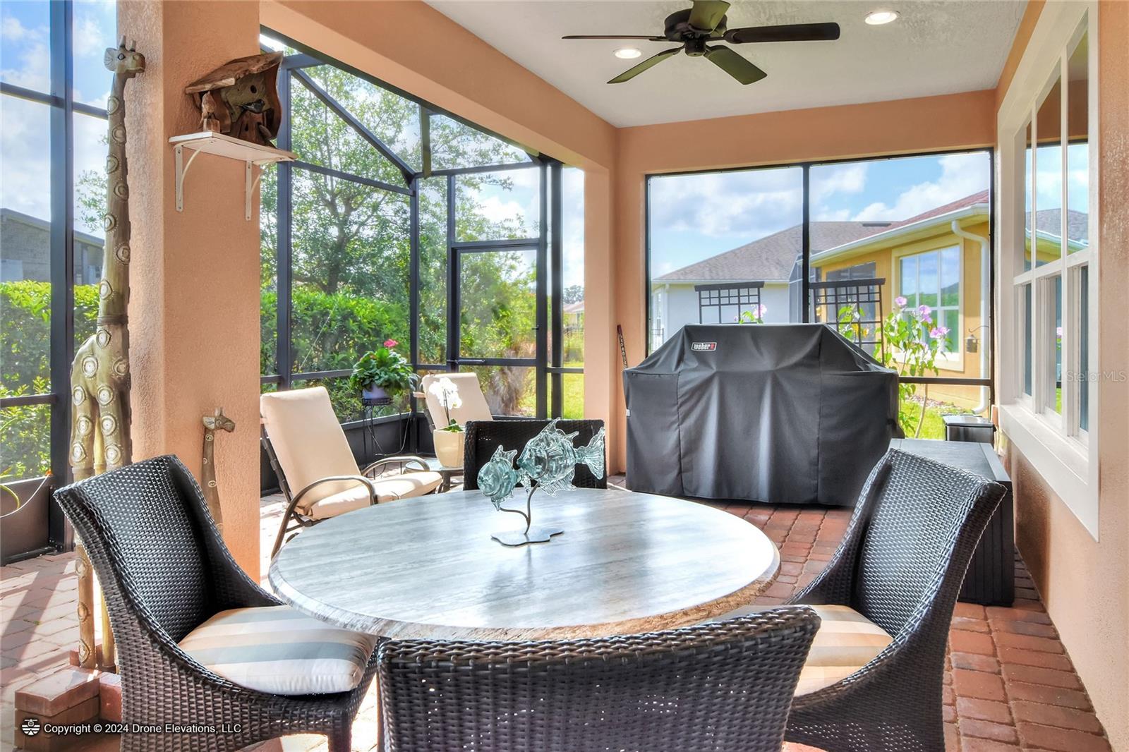 Welcome to this stunning 3-bedroom, 2-bathroom, 2-car garage home in the welcoming Solivita community! Boasting an expansive 2,241 square feet of living space, this meticulously landscaped property showcases beautiful surroundings where no detail has been left undone. Inside, you'll find tray ceilings that add a touch of elegance throughout the home. The gorgeous modern kitchen is a chef's dream, complete with quartz countertops, stainless steel appliances, and a convenient butler's pantry. A lovely dinette just off the kitchen offers a view of the backyard, creating the perfect spot for morning coffee or casual meals. The separate formal dining area and oversized family room provide ideal spaces for entertaining and relaxation. The open floor plan allows for a comfortable flow throughout the home, enhancing the sense of spaciousness.The bonus room could be used as an office, home gym, craft room, etc. Retreat to the beautiful primary suite, where you'll find an amazing en suite bathroom with dual sinks, a sit down vanity with beautiful lighting, and a separate shower and water closet. The enormous walk-in closet with built-in shelves provides ample storage and organization. Both guest suites are cozy and inviting, offering comfortable spaces for family and friends to relax. The well-appointed guest bathroom features modern fixtures and finishes, ensuring your guests have everything they need during their stay. The home also features an inside laundry room with a sink for added convenience. Step outside to the screened back patio with beautiful pavered flooring and enjoy the privacy of the backyard. As a resident of Solivita, you have access to top-notch amenities including clubhouses, fitness centers, swimming pools, golf courses, tennis courts, and a variety of clubs and social events. Don't miss your chance to call this exquisite home in Solivita yours! Schedule a showing today!