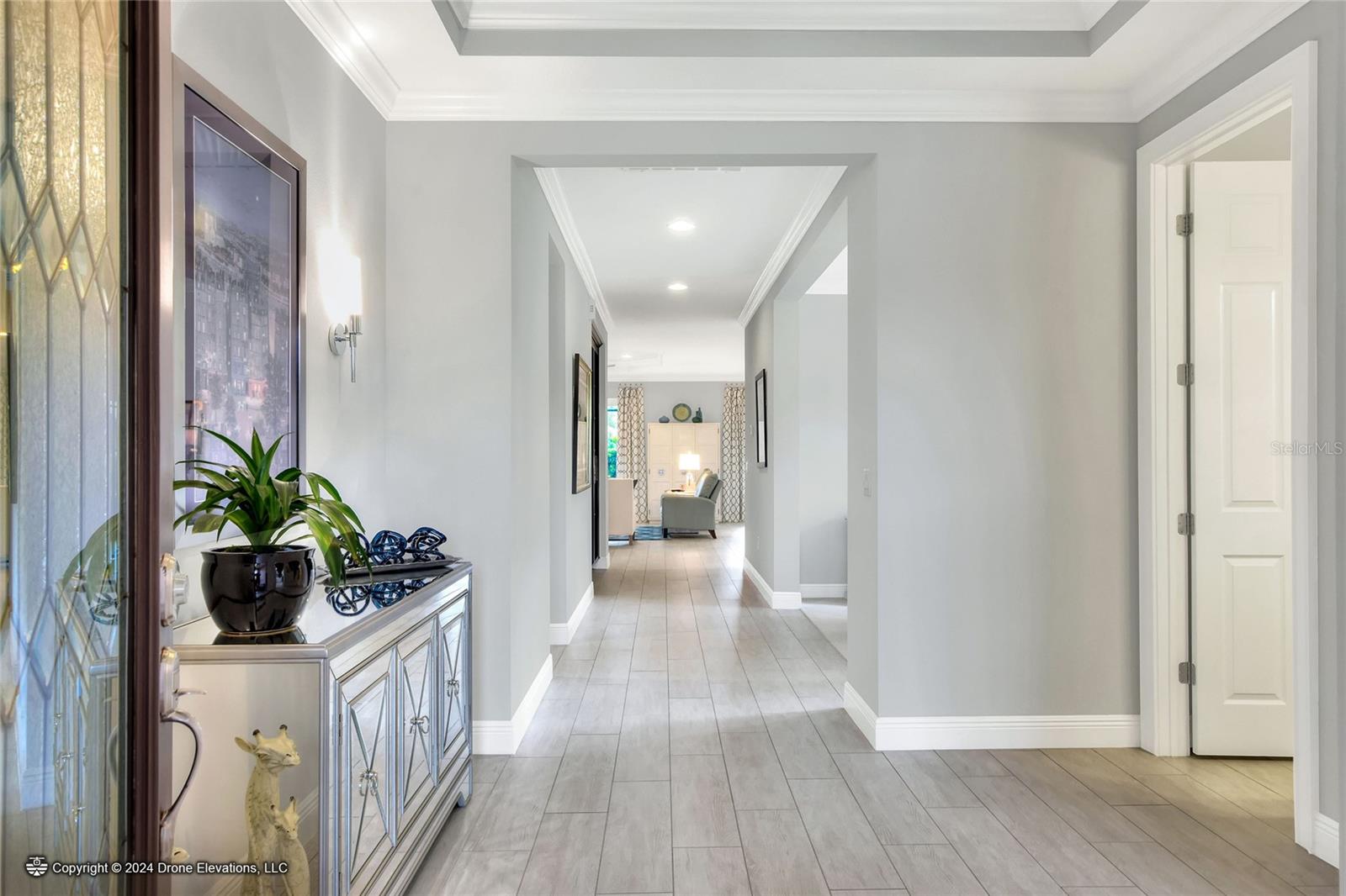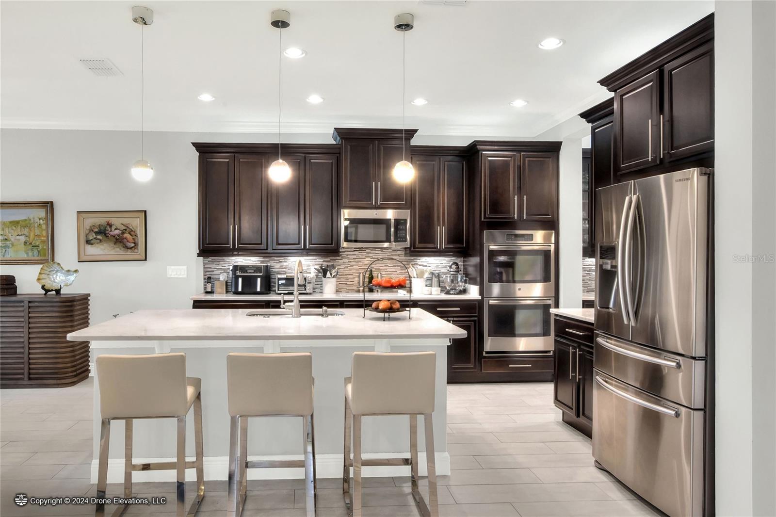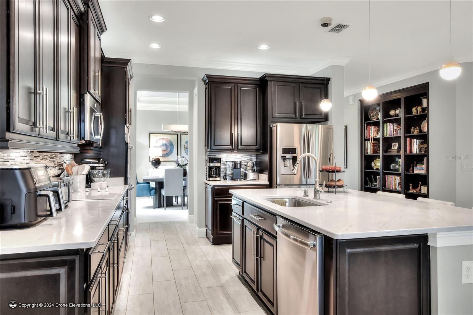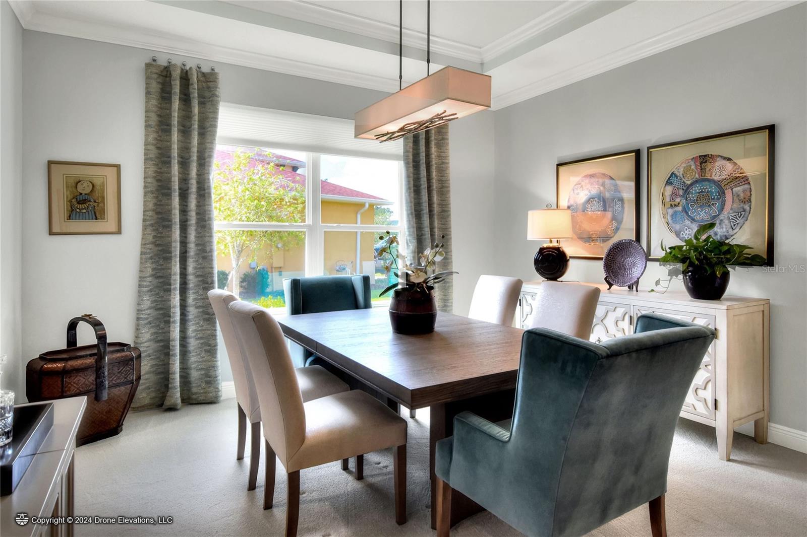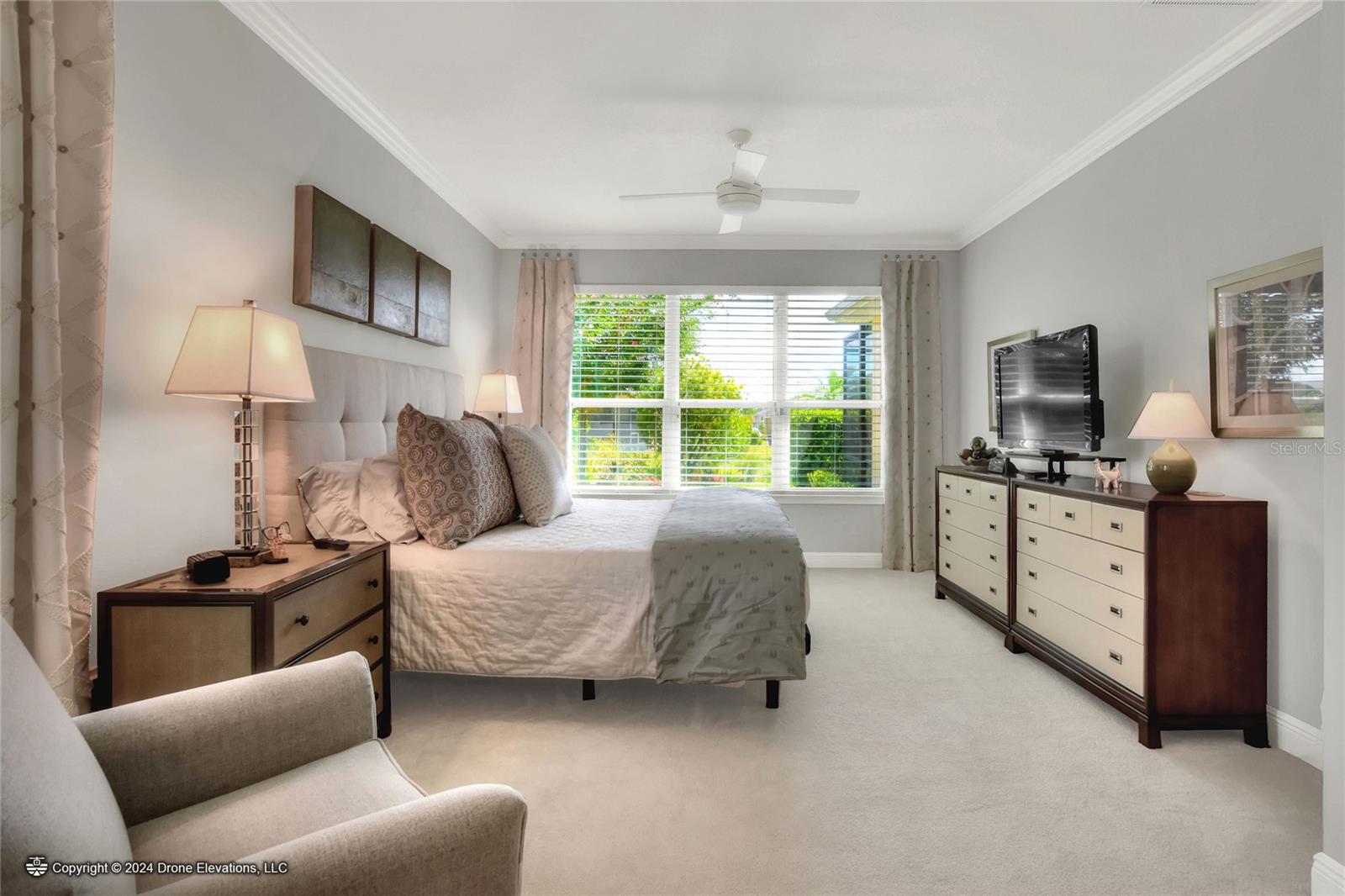 Welcome to this stunning 3-bedroom, 2-bathroom, 2-car garage home in the welcoming Solivita community! Boasting an expansive 2,241 square feet of living space, this meticulously landscaped property showcases beautiful surroundings where no detail has been left undone. Inside, you'll find tray ceilings that add a touch of elegance throughout the home. The gorgeous modern kitchen is a chef's dream, complete with quartz countertops, stainless steel appliances, and a convenient butler's pantry. A lovely dinette just off the kitchen offers a view of the backyard, creating the perfect spot for morning coffee or casual meals. The separate formal dining area and oversized family room provide ideal spaces for entertaining and relaxation. The open floor plan allows for a comfortable flow throughout the home, enhancing the sense of spaciousness.The bonus room could be used as an office, home gym, craft room, etc. Retreat to the beautiful primary suite, where you'll find an amazing en suite bathroom with dual sinks, a sit down vanity with beautiful lighting, and a separate shower and water closet. The enormous walk-in closet with built-in shelves provides ample storage and organization. Both guest suites are cozy and inviting, offering comfortable spaces for family and friends to relax. The well-appointed guest bathroom features modern fixtures and finishes, ensuring your guests have everything they need during their stay. The home also features an inside laundry room with a sink for added convenience. Step outside to the screened back patio with beautiful pavered flooring and enjoy the privacy of the backyard. As a resident of Solivita, you have access to top-notch amenities including clubhouses, fitness centers, swimming pools, golf courses, tennis courts, and a variety of clubs and social events. Don't miss your chance to call this exquisite home in Solivita yours! Schedule a showing today!