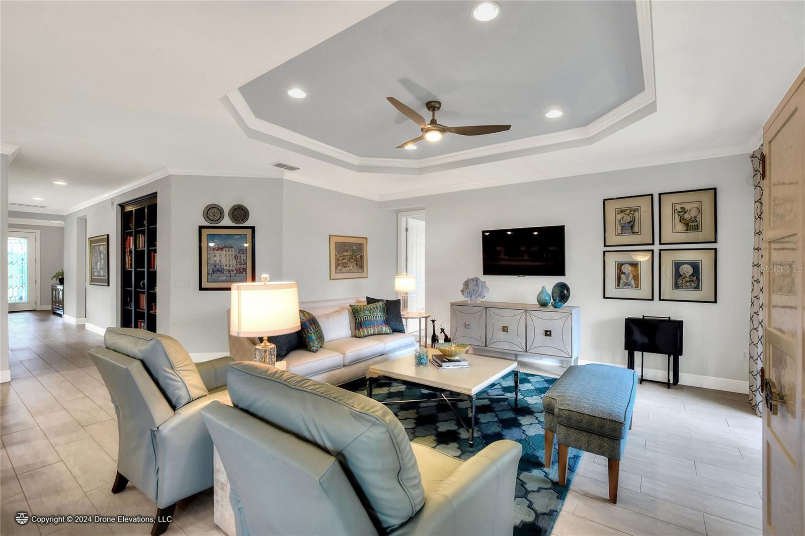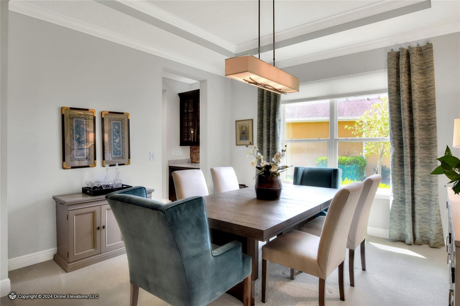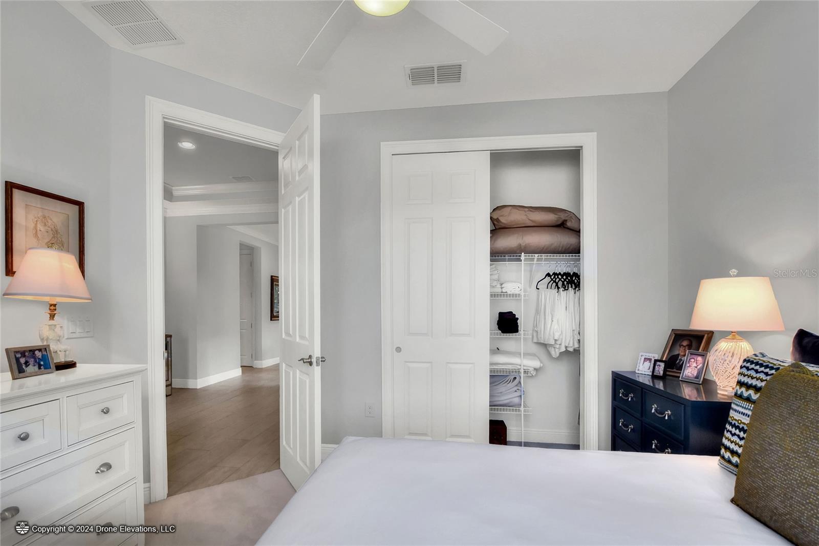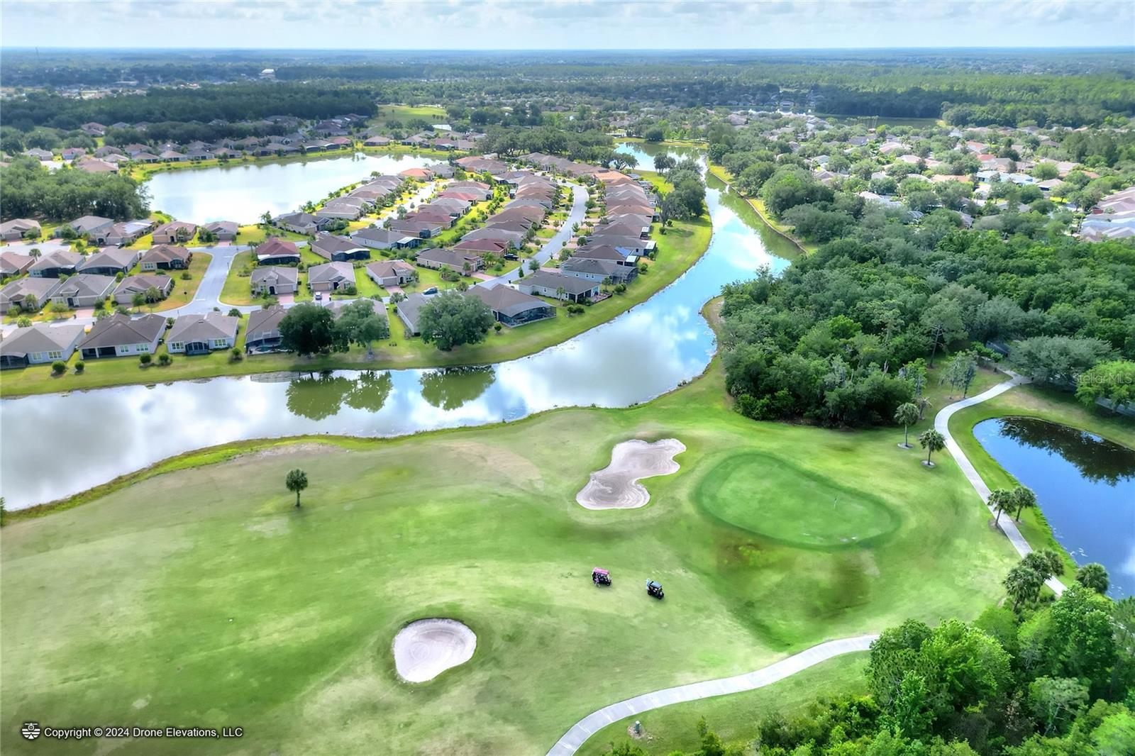 Welcome to this stunning 3-bedroom, 2-bathroom, 2-car garage home in the welcoming Solivita community! Boasting an expansive 2,241 square feet of living space, this meticulously landscaped property showcases beautiful surroundings where no detail has been left undone. Inside, you'll find tray ceilings that add a touch of elegance throughout the home. The gorgeous modern kitchen is a chef's dream, complete with quartz countertops, stainless steel appliances, and a convenient butler's pantry. A lovely dinette just off the kitchen offers a view of the backyard, creating the perfect spot for morning coffee or casual meals. The separate formal dining area and oversized family room provide ideal spaces for entertaining and relaxation. The open floor plan allows for a comfortable flow throughout the home, enhancing the sense of spaciousness.The bonus room could be used as an office, home gym, craft room, etc. Retreat to the beautiful primary suite, where you'll find an amazing en suite bathroom with dual sinks, a sit down vanity with beautiful lighting, and a separate shower and water closet. The enormous walk-in closet with built-in shelves provides ample storage and organization. Both guest suites are cozy and inviting, offering comfortable spaces for family and friends to relax. The well-appointed guest bathroom features modern fixtures and finishes, ensuring your guests have everything they need during their stay. The home also features an inside laundry room with a sink for added convenience. Step outside to the screened back patio with beautiful pavered flooring and enjoy the privacy of the backyard. As a resident of Solivita, you have access to top-notch amenities including clubhouses, fitness centers, swimming pools, golf courses, tennis courts, and a variety of clubs and social events. Don't miss your chance to call this exquisite home in Solivita yours! Schedule a showing today!