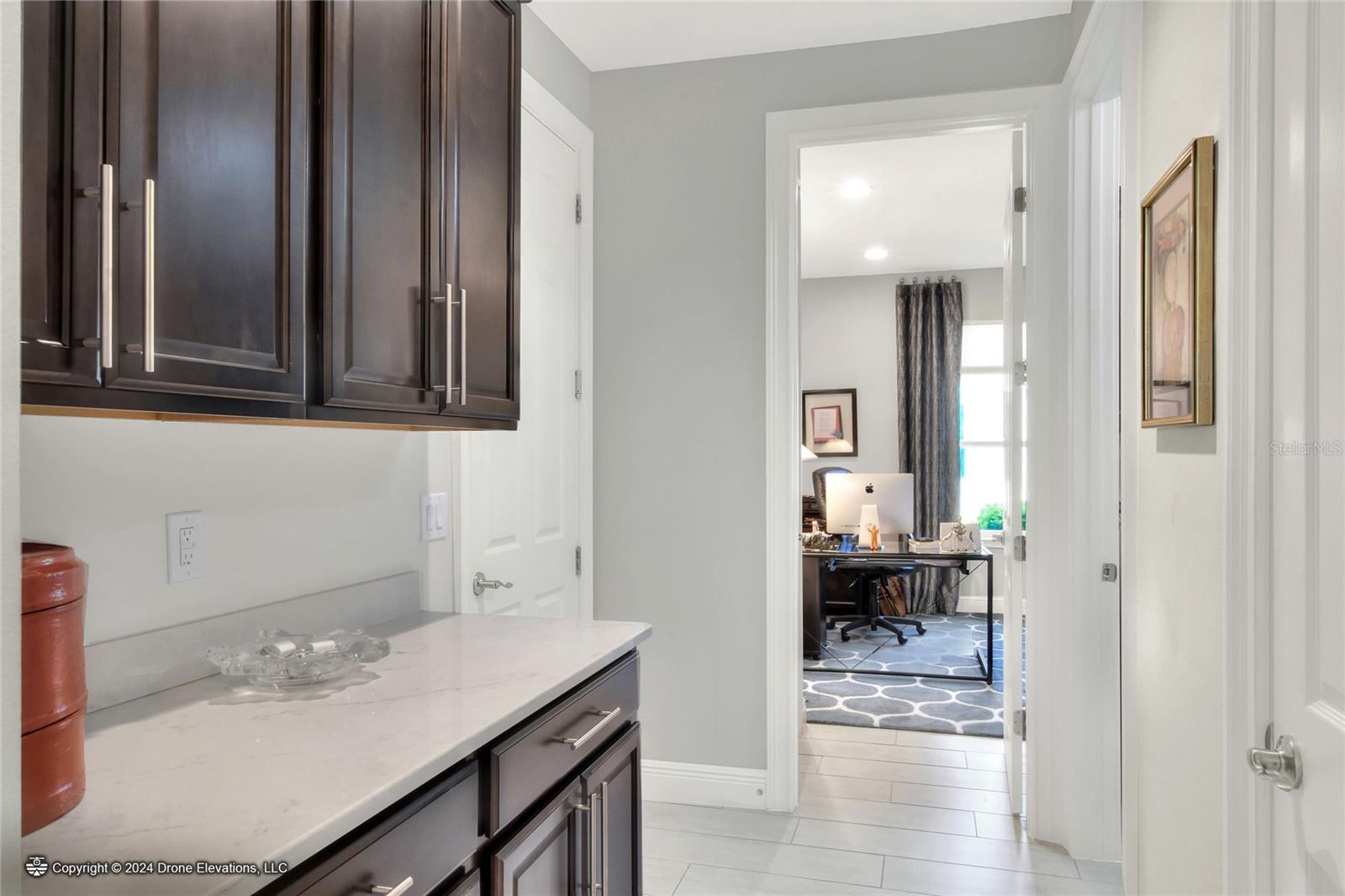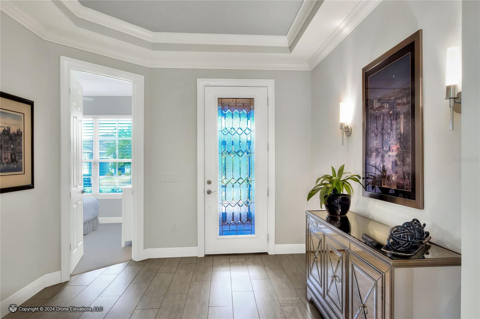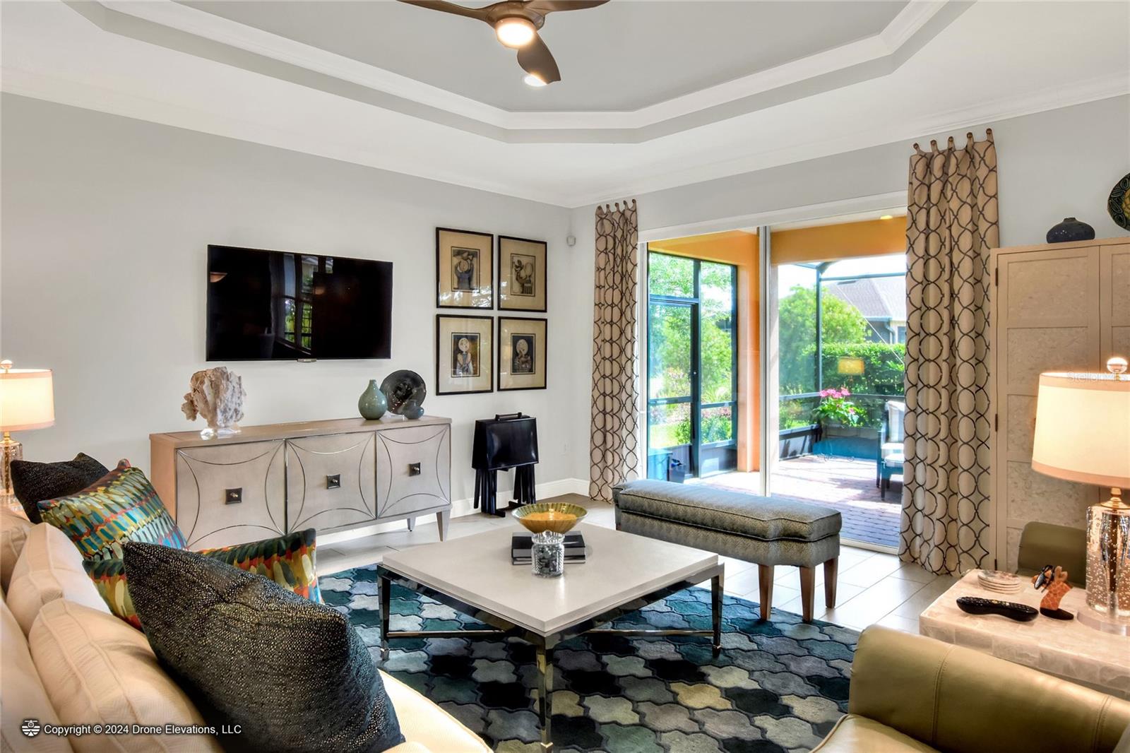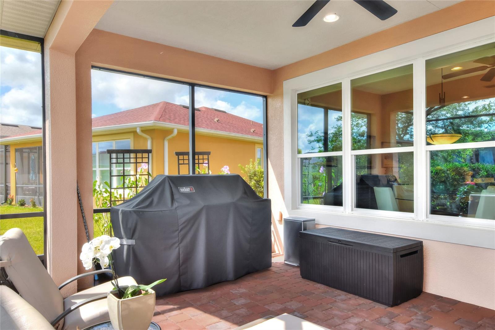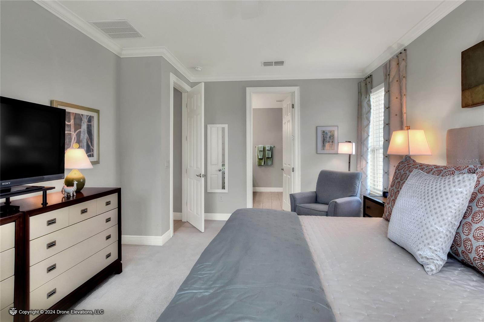 Welcome to this stunning 3-bedroom, 2-bathroom, 2-car garage home in the welcoming Solivita community! Boasting an expansive 2,241 square feet of living space, this meticulously landscaped property showcases beautiful surroundings where no detail has been left undone. Inside, you'll find tray ceilings that add a touch of elegance throughout the home. The gorgeous modern kitchen is a chef's dream, complete with quartz countertops, stainless steel appliances, and a convenient butler's pantry. A lovely dinette just off the kitchen offers a view of the backyard, creating the perfect spot for morning coffee or casual meals. The separate formal dining area and oversized family room provide ideal spaces for entertaining and relaxation. The open floor plan allows for a comfortable flow throughout the home, enhancing the sense of spaciousness.The bonus room could be used as an office, home gym, craft room, etc. Retreat to the beautiful primary suite, where you'll find an amazing en suite bathroom with dual sinks, a sit down vanity with beautiful lighting, and a separate shower and water closet. The enormous walk-in closet with built-in shelves provides ample storage and organization. Both guest suites are cozy and inviting, offering comfortable spaces for family and friends to relax. The well-appointed guest bathroom features modern fixtures and finishes, ensuring your guests have everything they need during their stay. The home also features an inside laundry room with a sink for added convenience. Step outside to the screened back patio with beautiful pavered flooring and enjoy the privacy of the backyard. As a resident of Solivita, you have access to top-notch amenities including clubhouses, fitness centers, swimming pools, golf courses, tennis courts, and a variety of clubs and social events. Don't miss your chance to call this exquisite home in Solivita yours! Schedule a showing today!