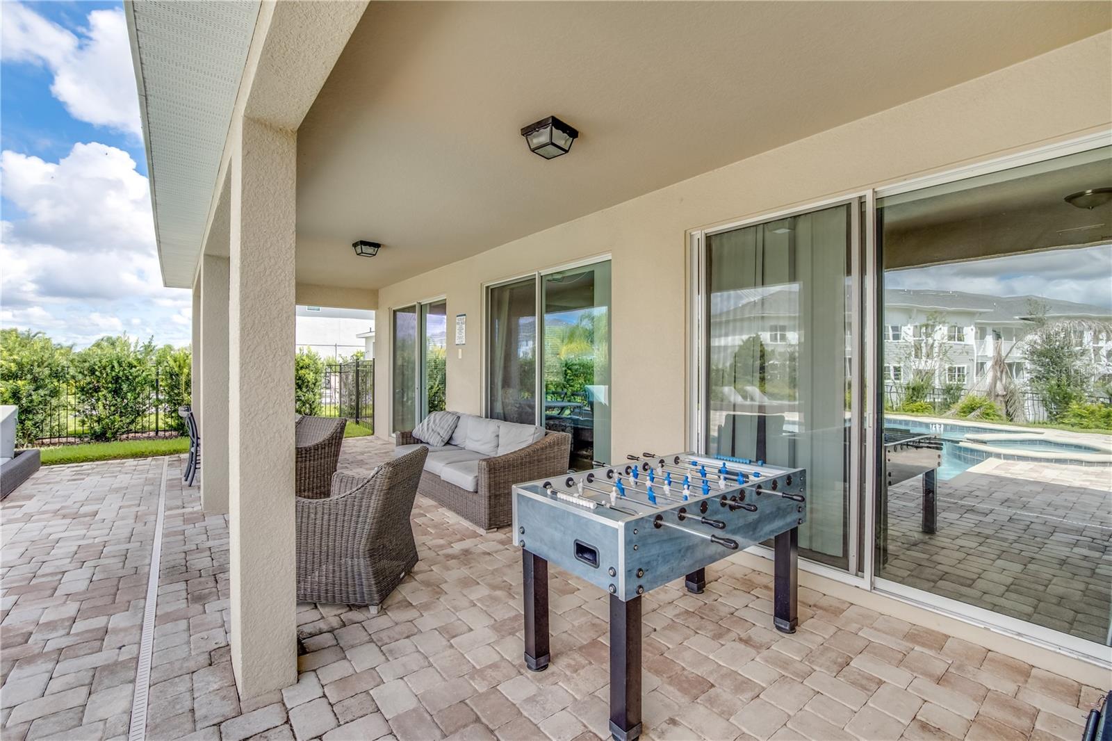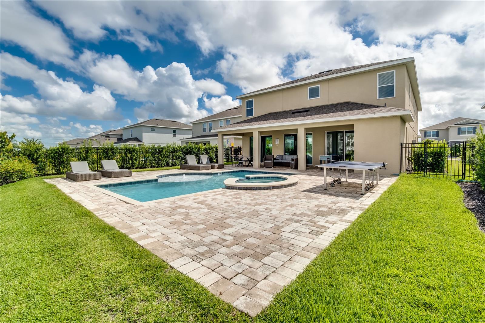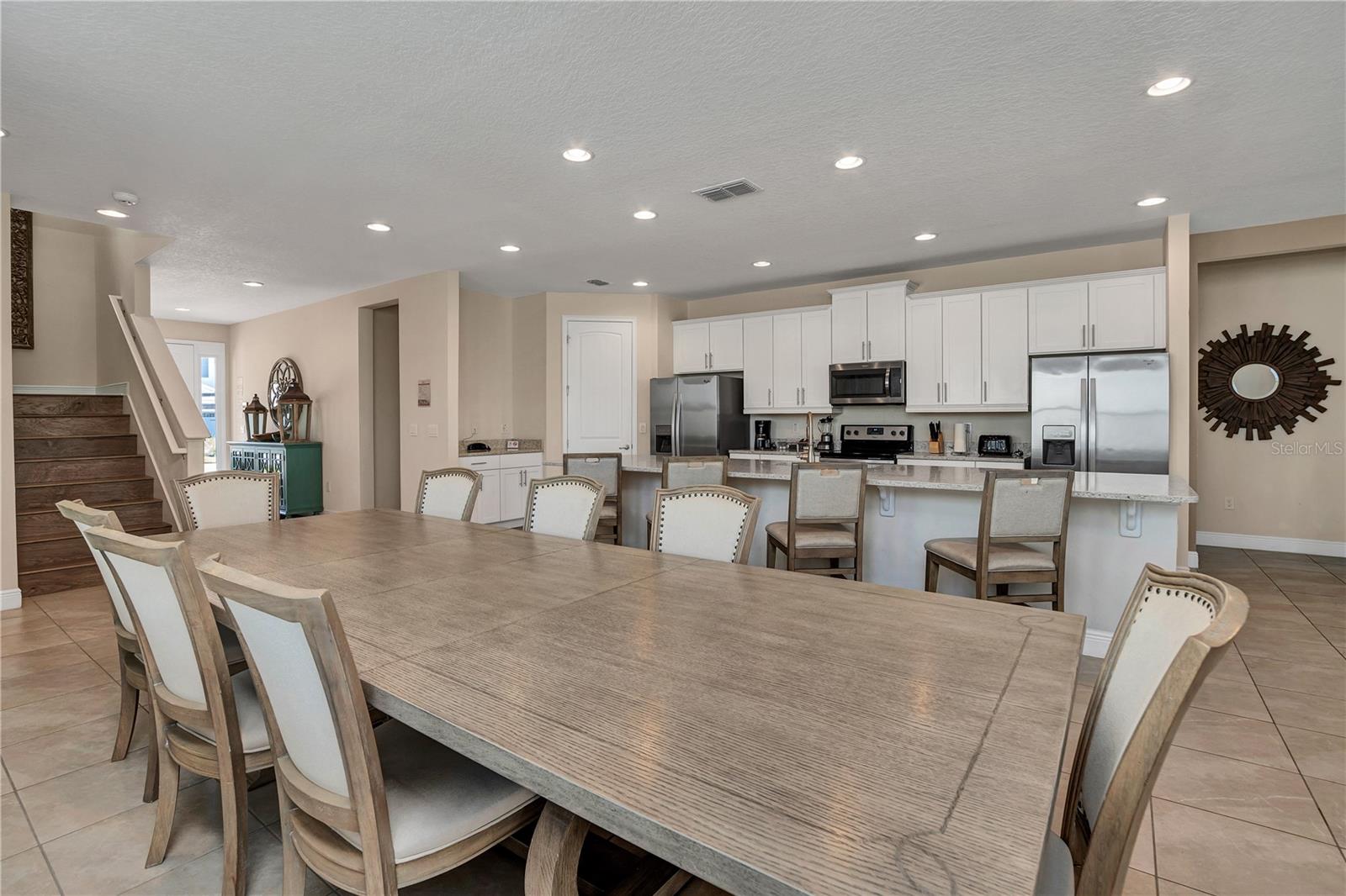 Welcome to the gated community of Encore Resort at Reunion, this stunning 8-bedroom, 8.5-bathroom home is located close to major highways and theme parks. This amazing home offers open-format living, with plenty of natural lighting, dining, and kitchen space making it excellent for large family gatherings and holiday parties. The kitchen features granite countertops, stainless steel appliances, as well as a large island with plenty of space for dining. The downstairs master suite features a spacious bedroom and bathroom with a walk-in shower, tub, and dual sinks. The large second-floor area offers a large bonus room perfect for family activities. Each second-floor bedroom features an ensuite bathroom and is professionally decorated. The backyard offers a fenced-in pool, hot tub, and splash pad along with a covered lanai area. This home boasts a 2-car garage, massive paved driveway, and neighborhood water park. The HOA includes lawn and pool care, internet, and cable. This vacation property is built for residents and guests to fully enjoy the laid-back lifestyle Florida has to offer.