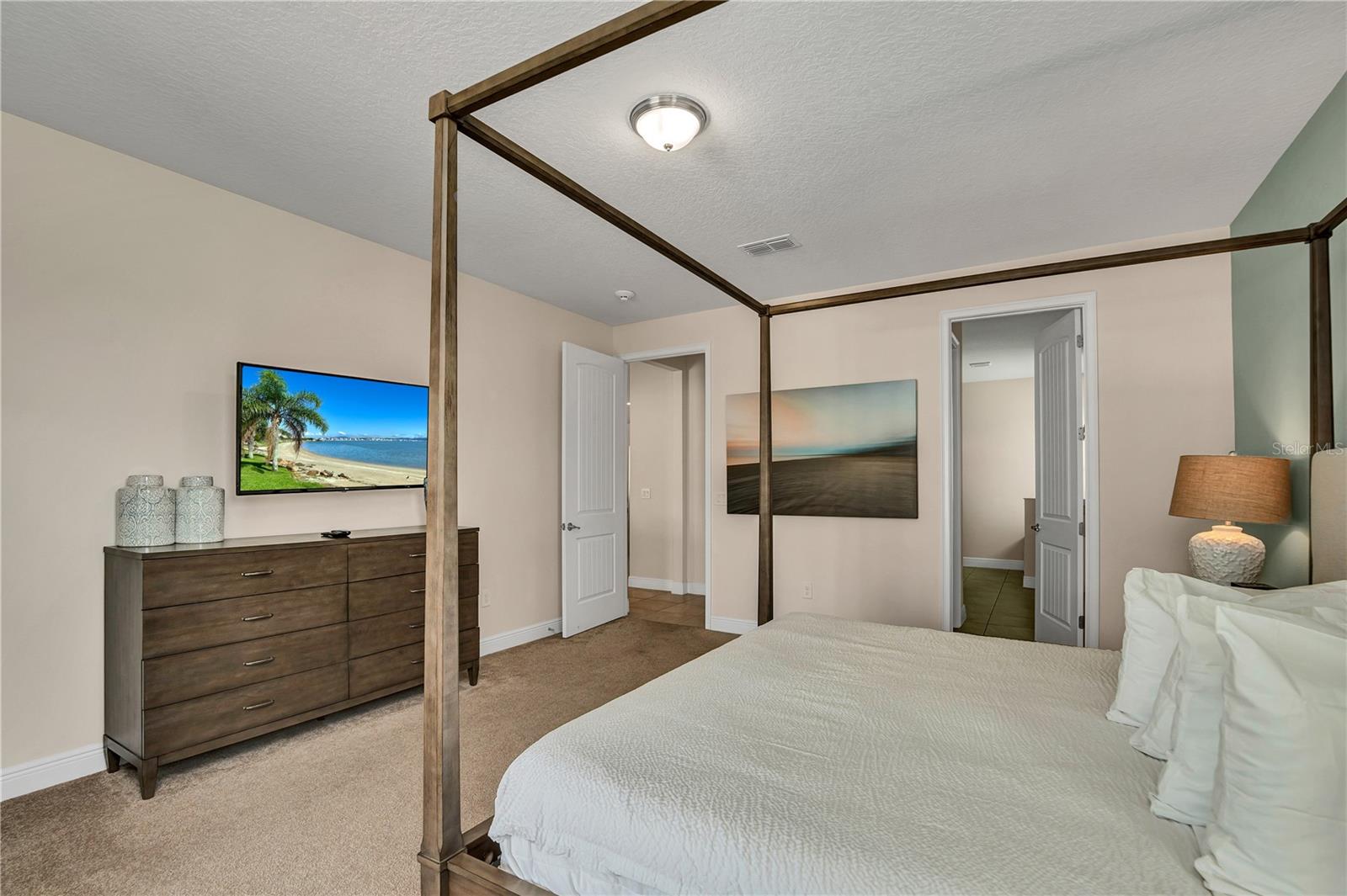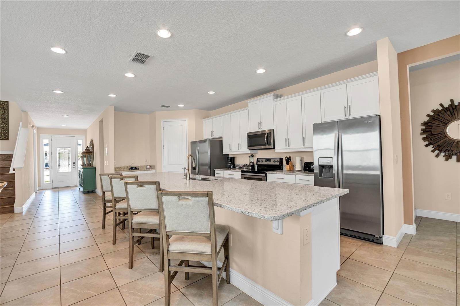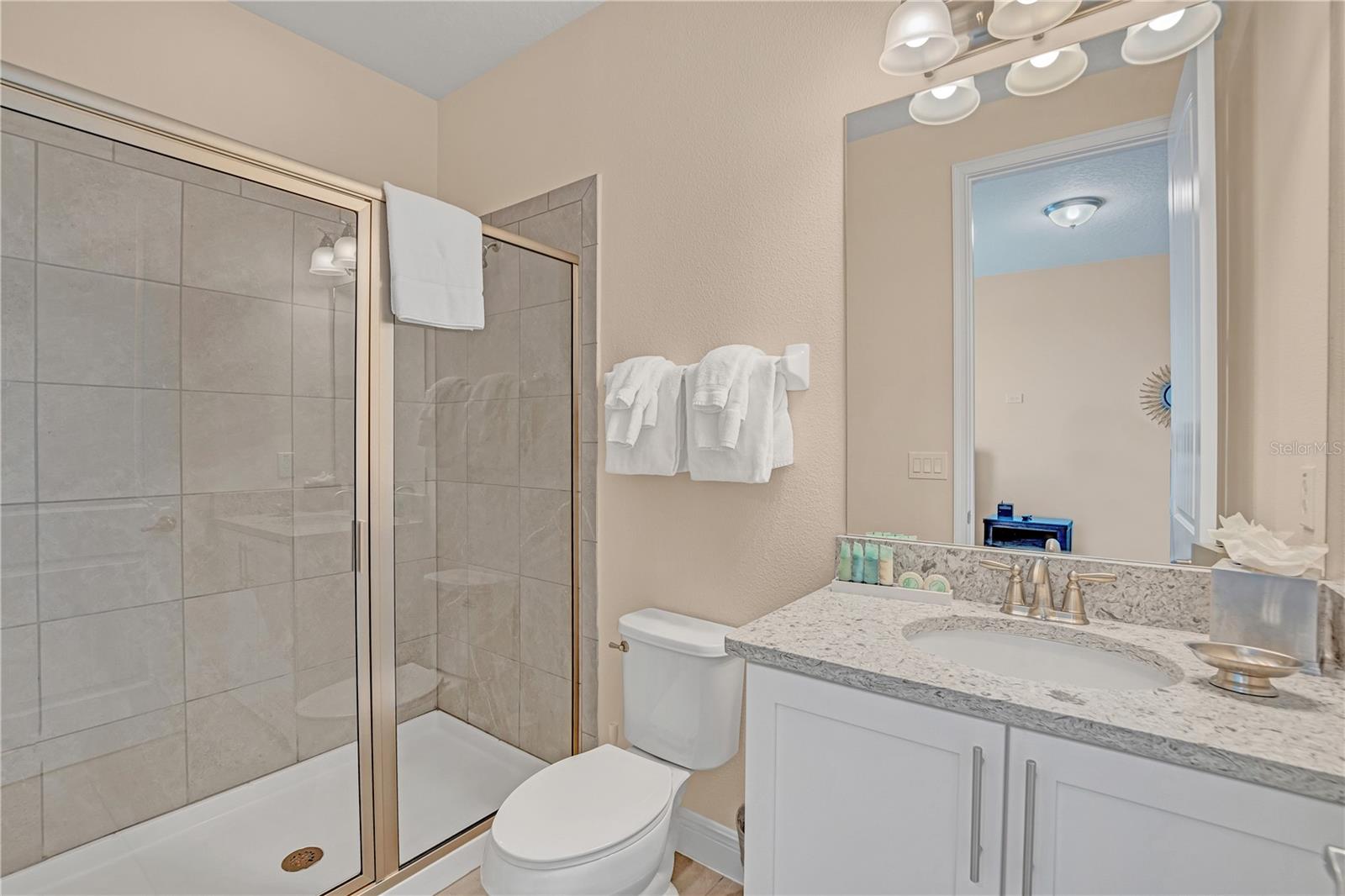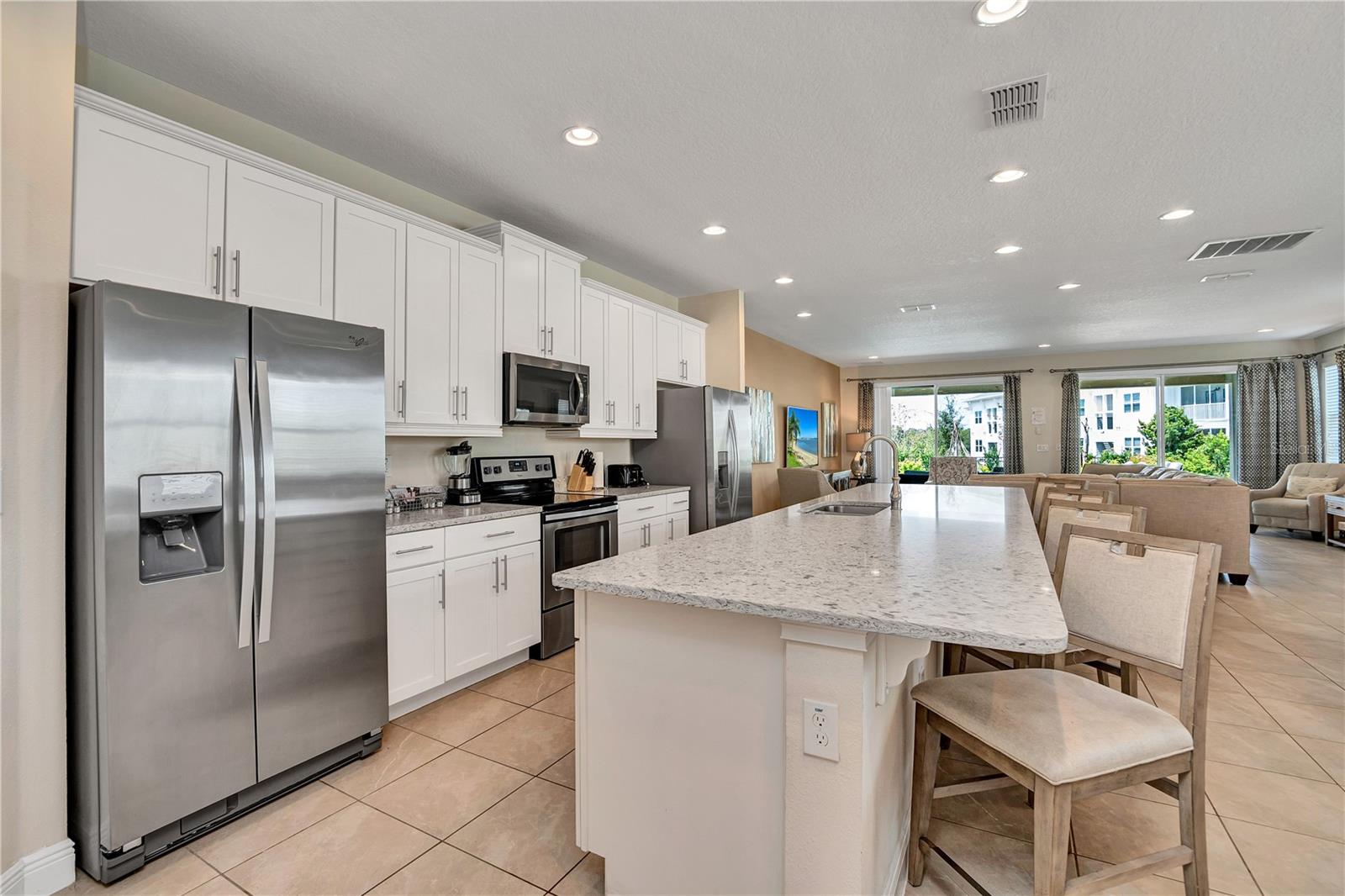 Welcome to the gated community of Encore Resort at Reunion, this stunning 8-bedroom, 8.5-bathroom home is located close to major highways and theme parks. This amazing home offers open-format living, with plenty of natural lighting, dining, and kitchen space making it excellent for large family gatherings and holiday parties. The kitchen features granite countertops, stainless steel appliances, as well as a large island with plenty of space for dining. The downstairs master suite features a spacious bedroom and bathroom with a walk-in shower, tub, and dual sinks. The large second-floor area offers a large bonus room perfect for family activities. Each second-floor bedroom features an ensuite bathroom and is professionally decorated. The backyard offers a fenced-in pool, hot tub, and splash pad along with a covered lanai area. This home boasts a 2-car garage, massive paved driveway, and neighborhood water park. The HOA includes lawn and pool care, internet, and cable. This vacation property is built for residents and guests to fully enjoy the laid-back lifestyle Florida has to offer.