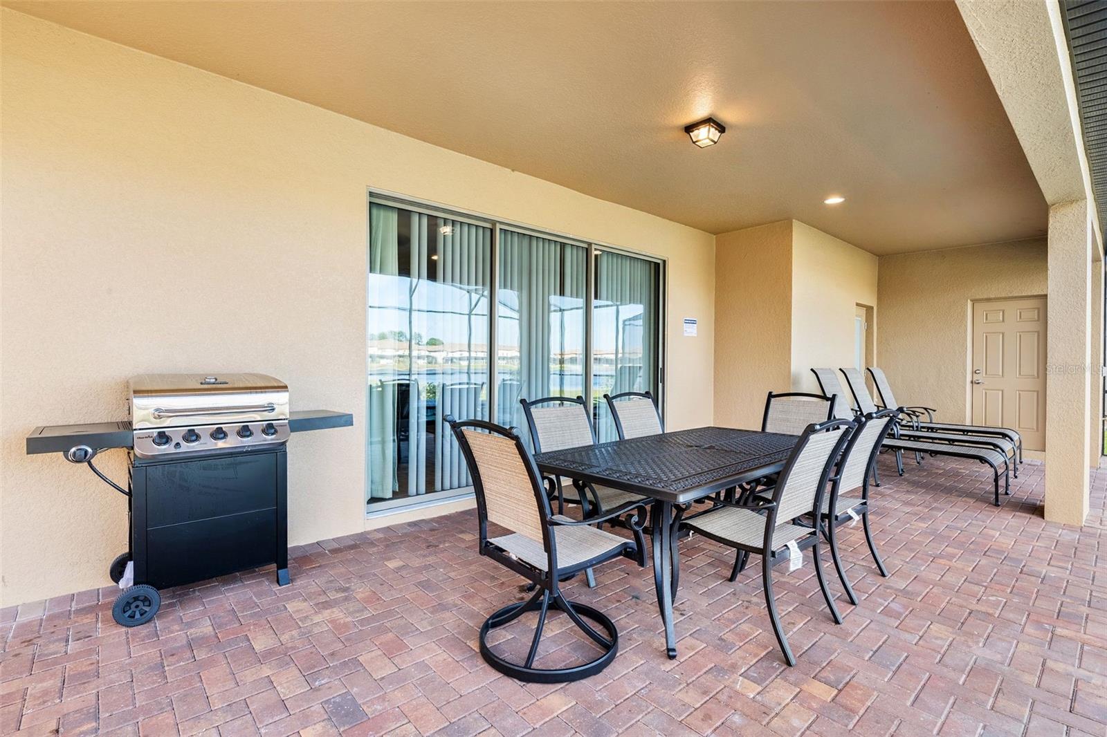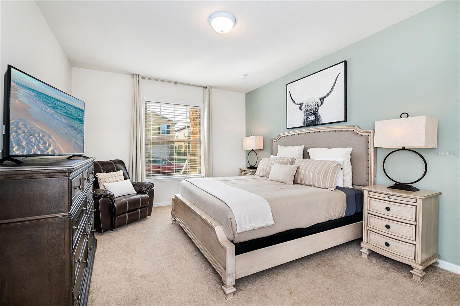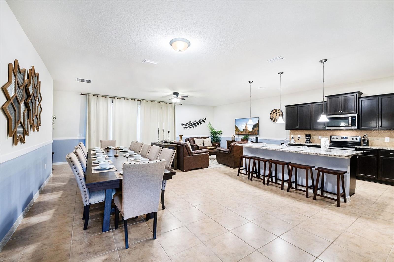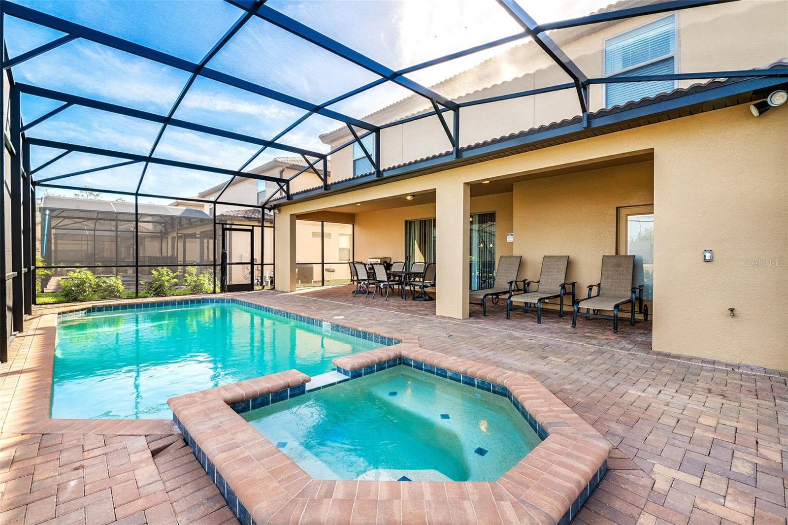 This marvelous water view vacation home has 9-bedrooms and 6-bathrooms and is located in the beautiful Windsor at Westside Resort! The home is beautifully decorated and being sold fully furnished. The open floor plan boasts a lavish kitchen with dark wood cabinets, stone counters, and stainless steel appliances that include a brand new refrigerator, dishwasher and microwave! A large breakfast bar overlooks the living area offers plenty of space to entertaining and for all guests to spread out and the dining area is ideal to share a meal around the elegant dining table. Other features include a spacious loft on the second floor, a garage that has been converted to a games room, a large master bedroom on the first floor, a huge, covered lanai and a large, heated pool has a brand new heater and comes with a spa and a brick paver deck, best of all there are no rear neighbors!....Windsor at Westside is a gated community just a few minutes from Disney with outstanding community amenities including a resort-style clubhouse, heated pool and spa, lazy river, water playground, fitness center, on-site store, sand volleyball, tennis and basketball courts, games room, and a restaurant and bar. Best of all it's just a short drive to Disney World and all the famous Central Florida attractions!