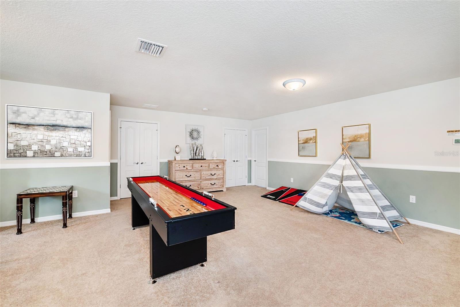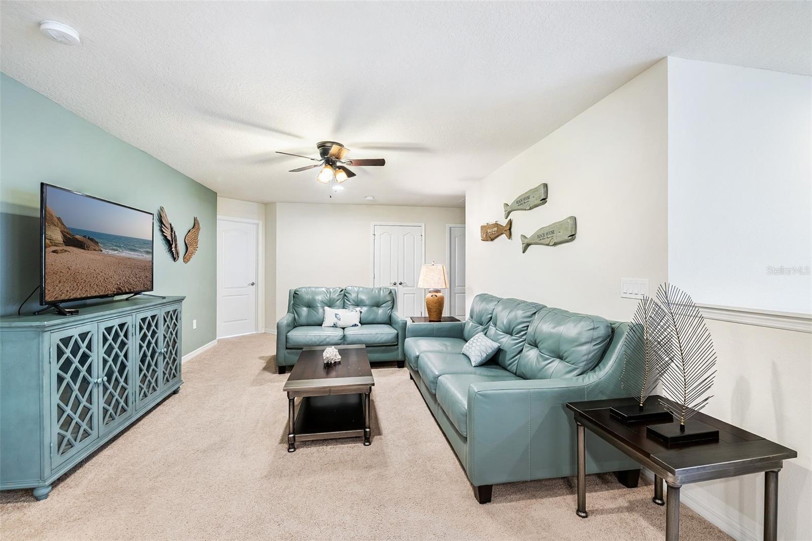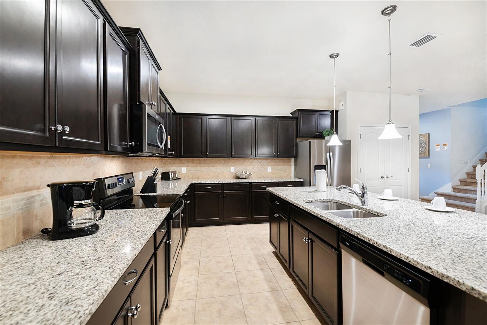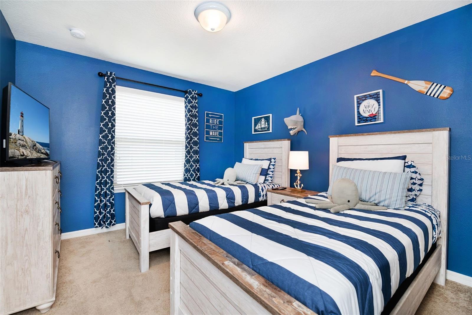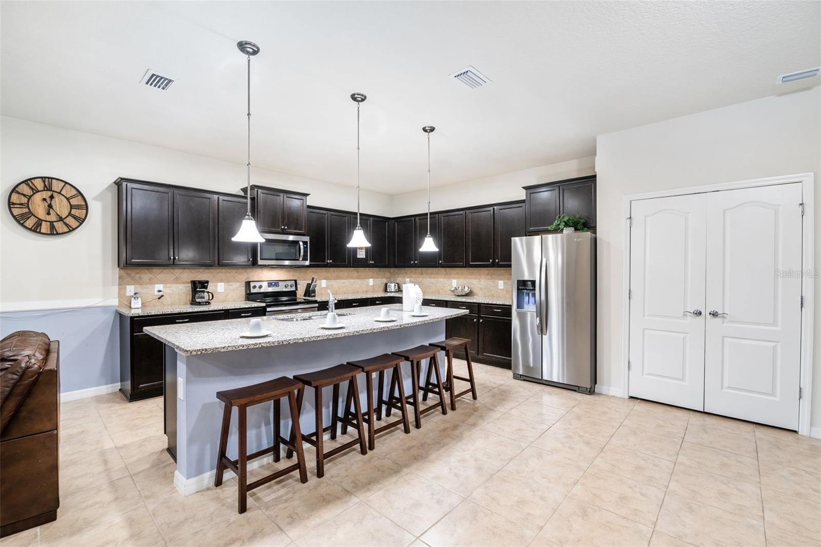 This marvelous water view vacation home has 9-bedrooms and 6-bathrooms and is located in the beautiful Windsor at Westside Resort! The home is beautifully decorated and being sold fully furnished. The open floor plan boasts a lavish kitchen with dark wood cabinets, stone counters, and stainless steel appliances that include a brand new refrigerator, dishwasher and microwave! A large breakfast bar overlooks the living area offers plenty of space to entertaining and for all guests to spread out and the dining area is ideal to share a meal around the elegant dining table. Other features include a spacious loft on the second floor, a garage that has been converted to a games room, a large master bedroom on the first floor, a huge, covered lanai and a large, heated pool has a brand new heater and comes with a spa and a brick paver deck, best of all there are no rear neighbors!....Windsor at Westside is a gated community just a few minutes from Disney with outstanding community amenities including a resort-style clubhouse, heated pool and spa, lazy river, water playground, fitness center, on-site store, sand volleyball, tennis and basketball courts, games room, and a restaurant and bar. Best of all it's just a short drive to Disney World and all the famous Central Florida attractions!