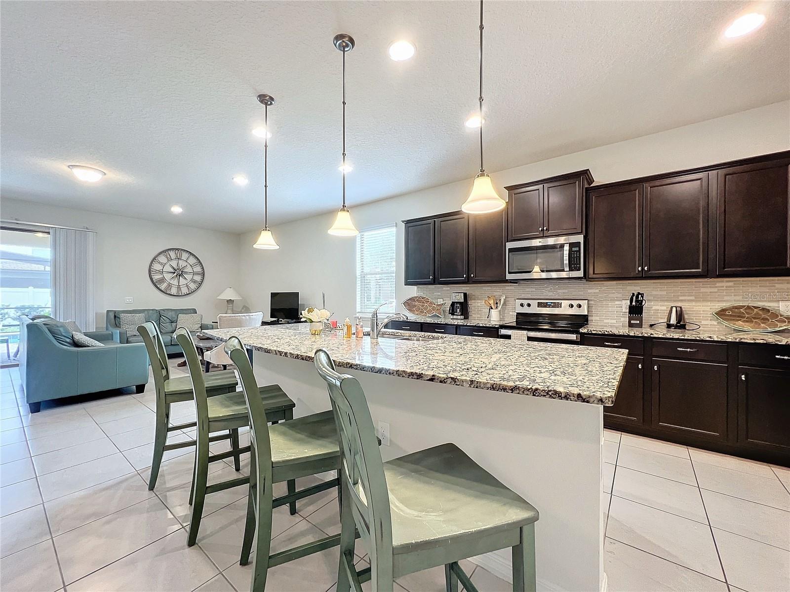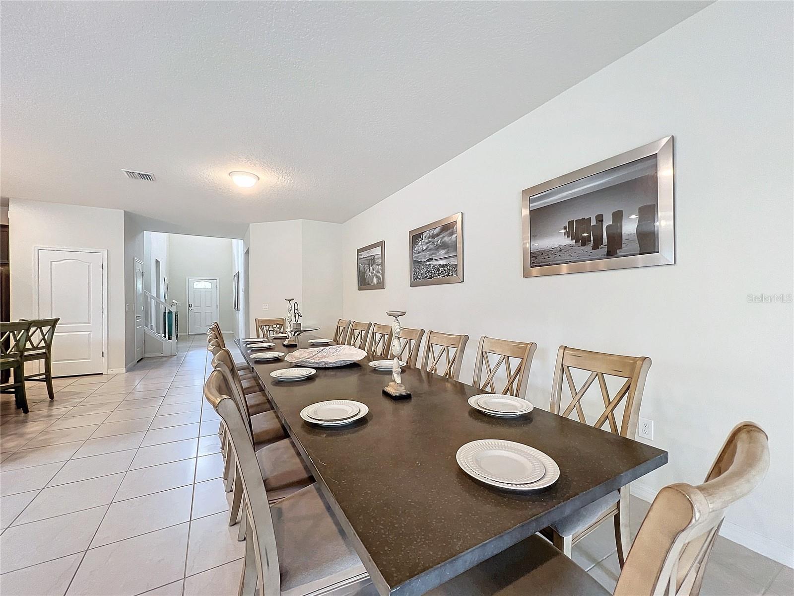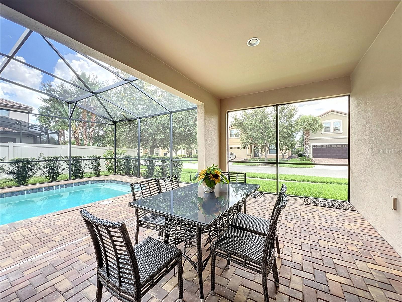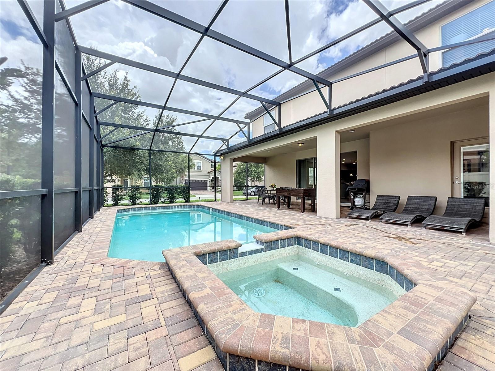 Located in the popular resort community of Windsor at Westside this beautiful 8-bedroom, 6-bathroom executive pool home has a fantastic location and is being sold fully furnished! It boasts an open floor plan with tile beautiful flooring throughout all of the living areas and sits on one of the best lots in the community right across the street from the magnificent community center that features a resort-style clubhouse, heated pool and spa, lazy river, water playground, fitness center, on-site store, sand volleyball, tennis and basketball courts, games room, and a restaurant and bar. With over 4000 square feet of living space the home has plenty of room to accommodate large parties and is great for great for entertaining or family gatherings. The kitchen boasts granite counter tops, 42-inch dark wood cabinets, stainless steel appliances and a large island sink with a breakfast bar. The convenient first-floor master suite is a wonderful retreat with its own private bathroom and it has direct access to the lanai and there is another bedroom on the first floor that offers extra flexibility for families. Upstairs there are 6 more bedrooms a huge loft area that can be used as a games room, movie theater or play area. Out back there's a huge covered lanai that overlooks the pool with spa where you can enjoy a morning cup of coffee or cap off a busy day at the theme parks! Windsor at Westside is a guard gated community and the grounds maintenance, basic cable, internet and daily trash valet are all covered in the monthly HOA fee. The community has one of the best locations for vacation rentals being just minutes from Walt Disney World, restaurants, golf courses, shopping, and all major attractions