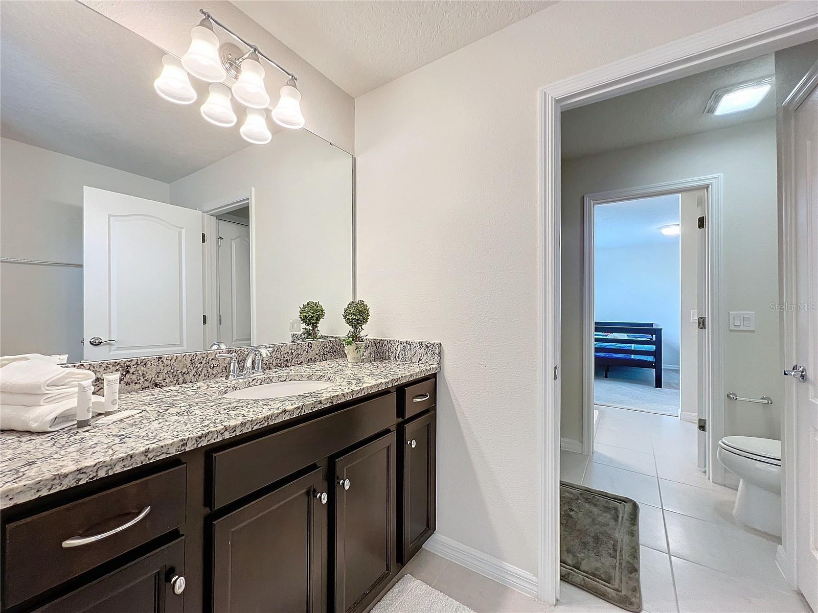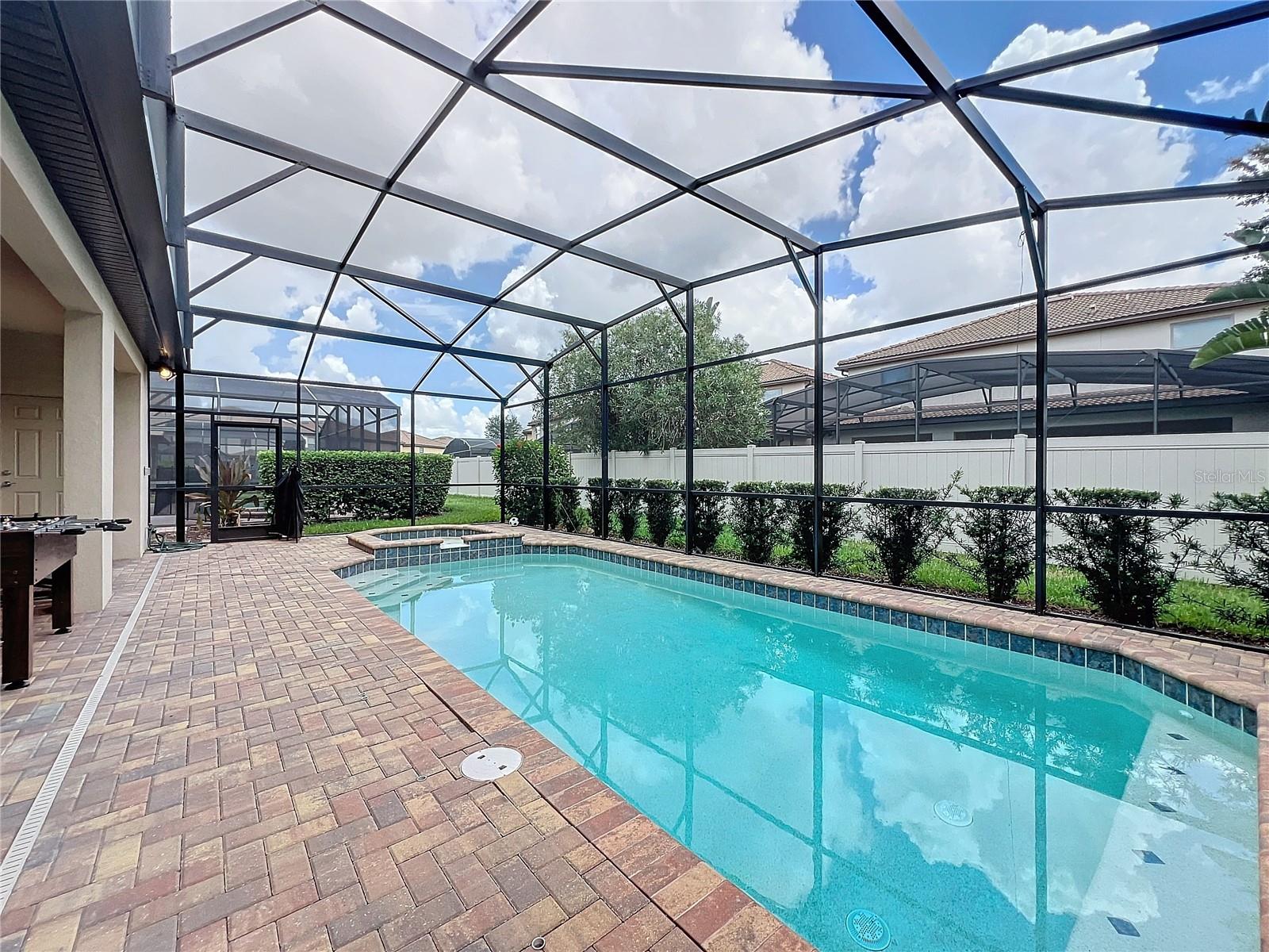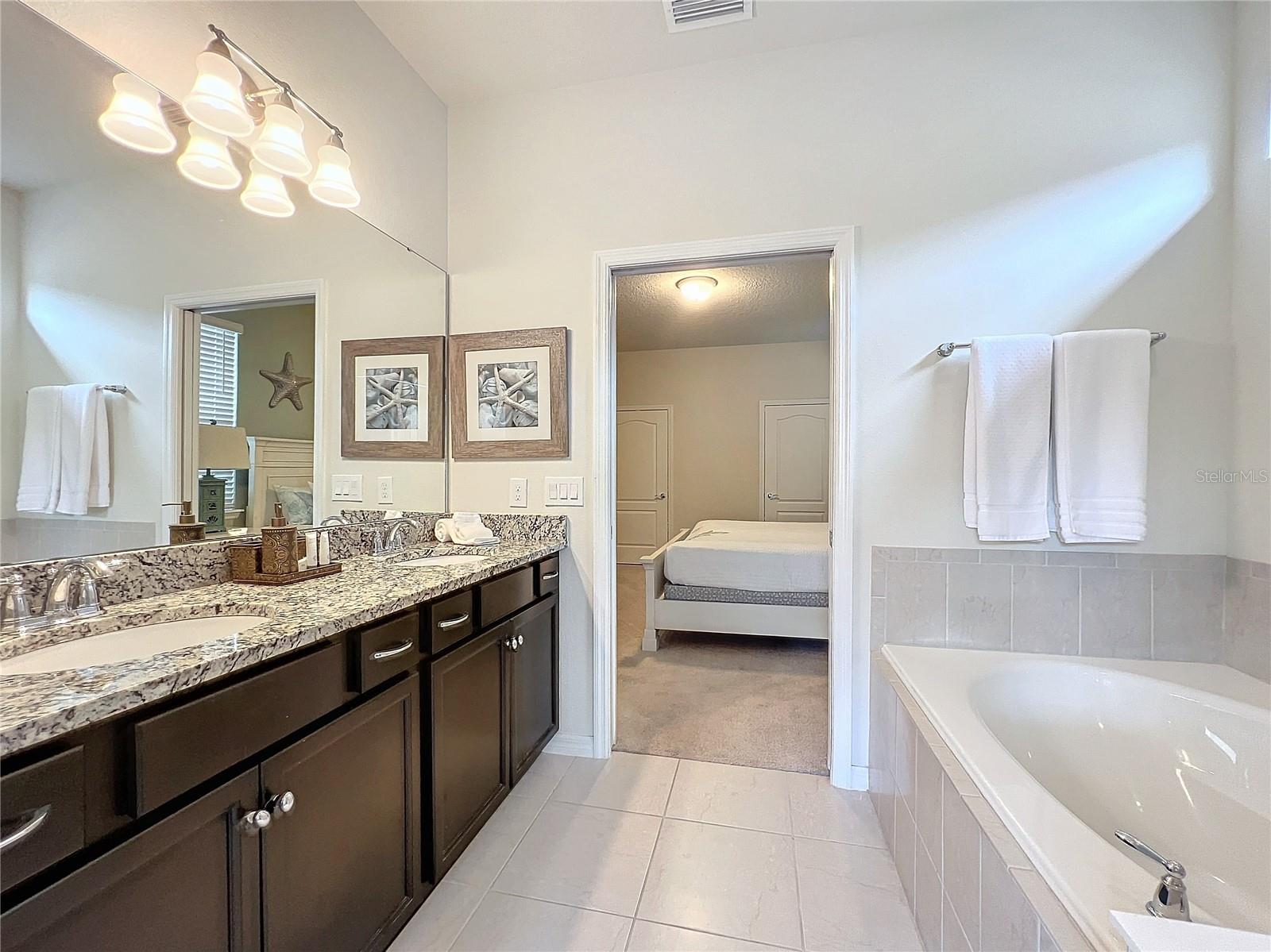 Located in the popular resort community of Windsor at Westside this beautiful 8-bedroom, 6-bathroom executive pool home has a fantastic location and is being sold fully furnished! It boasts an open floor plan with tile beautiful flooring throughout all of the living areas and sits on one of the best lots in the community right across the street from the magnificent community center that features a resort-style clubhouse, heated pool and spa, lazy river, water playground, fitness center, on-site store, sand volleyball, tennis and basketball courts, games room, and a restaurant and bar. With over 4000 square feet of living space the home has plenty of room to accommodate large parties and is great for great for entertaining or family gatherings. The kitchen boasts granite counter tops, 42-inch dark wood cabinets, stainless steel appliances and a large island sink with a breakfast bar. The convenient first-floor master suite is a wonderful retreat with its own private bathroom and it has direct access to the lanai and there is another bedroom on the first floor that offers extra flexibility for families. Upstairs there are 6 more bedrooms a huge loft area that can be used as a games room, movie theater or play area. Out back there's a huge covered lanai that overlooks the pool with spa where you can enjoy a morning cup of coffee or cap off a busy day at the theme parks! Windsor at Westside is a guard gated community and the grounds maintenance, basic cable, internet and daily trash valet are all covered in the monthly HOA fee. The community has one of the best locations for vacation rentals being just minutes from Walt Disney World, restaurants, golf courses, shopping, and all major attractions