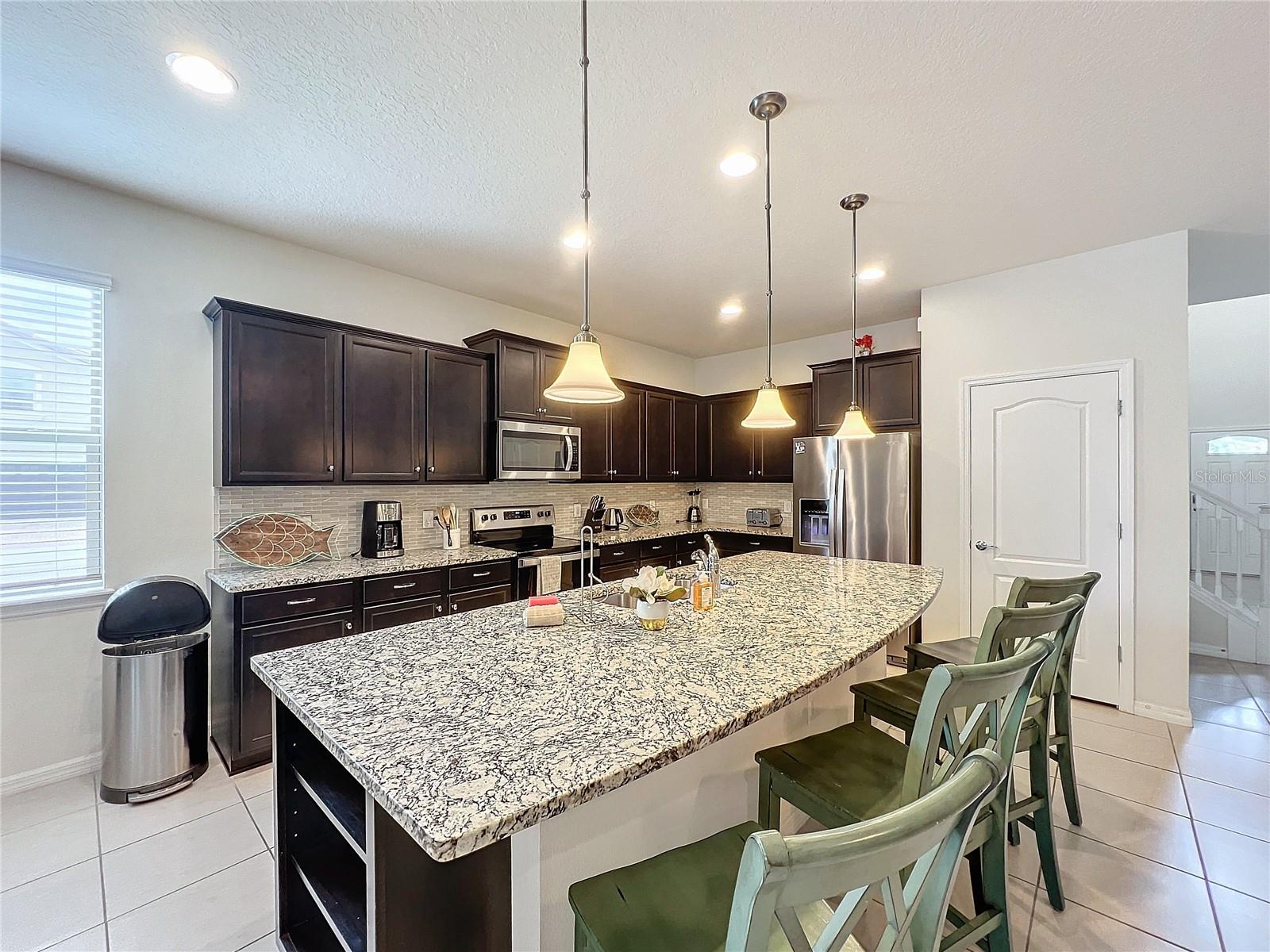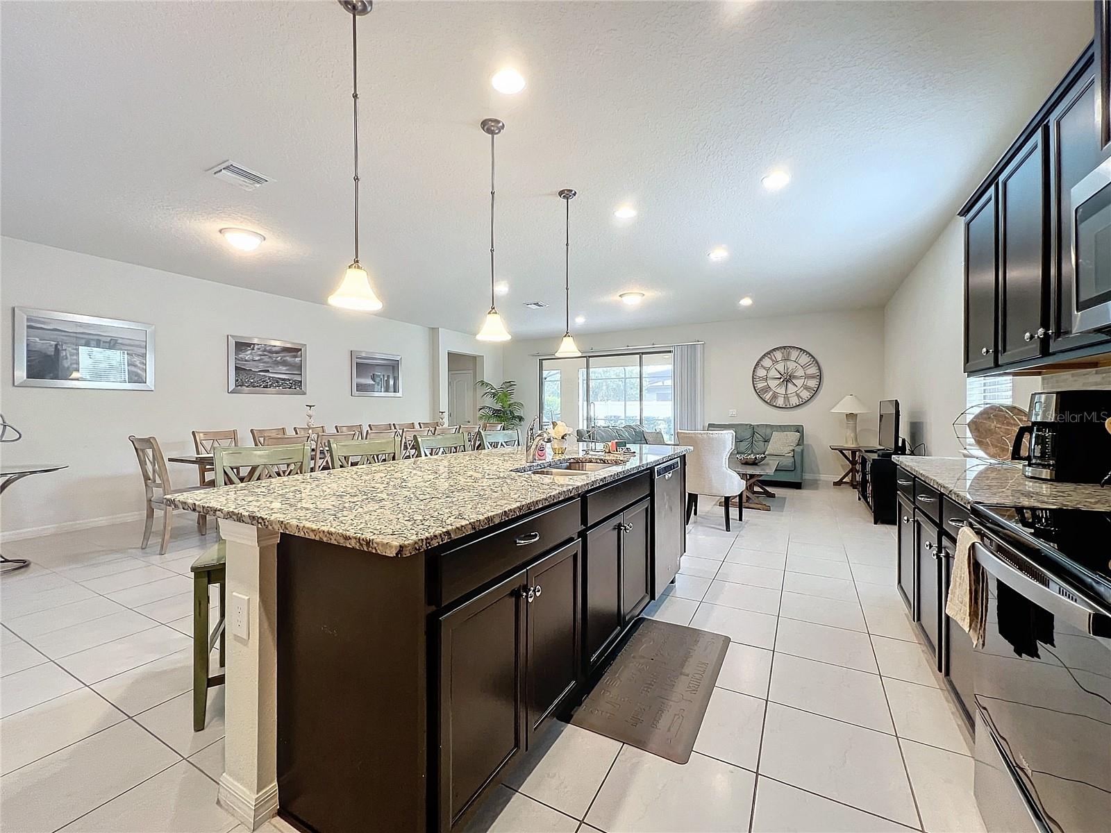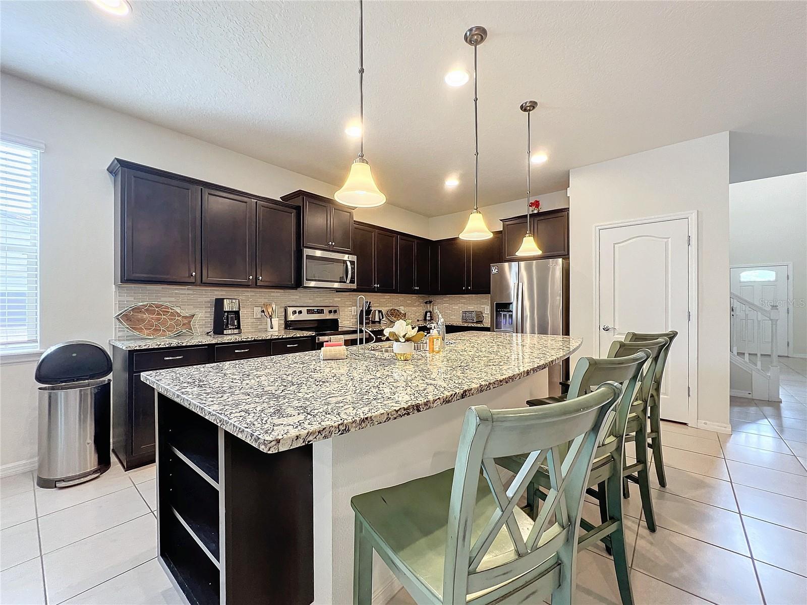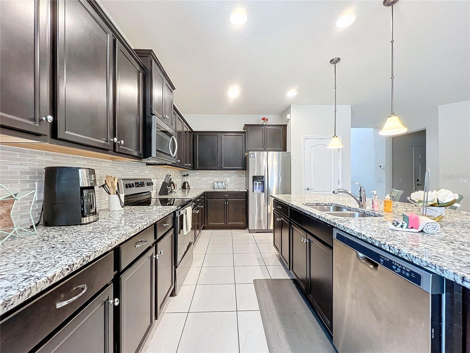 Located in the popular resort community of Windsor at Westside this beautiful 8-bedroom, 6-bathroom executive pool home has a fantastic location and is being sold fully furnished! It boasts an open floor plan with tile beautiful flooring throughout all of the living areas and sits on one of the best lots in the community right across the street from the magnificent community center that features a resort-style clubhouse, heated pool and spa, lazy river, water playground, fitness center, on-site store, sand volleyball, tennis and basketball courts, games room, and a restaurant and bar. With over 4000 square feet of living space the home has plenty of room to accommodate large parties and is great for great for entertaining or family gatherings. The kitchen boasts granite counter tops, 42-inch dark wood cabinets, stainless steel appliances and a large island sink with a breakfast bar. The convenient first-floor master suite is a wonderful retreat with its own private bathroom and it has direct access to the lanai and there is another bedroom on the first floor that offers extra flexibility for families. Upstairs there are 6 more bedrooms a huge loft area that can be used as a games room, movie theater or play area. Out back there's a huge covered lanai that overlooks the pool with spa where you can enjoy a morning cup of coffee or cap off a busy day at the theme parks! Windsor at Westside is a guard gated community and the grounds maintenance, basic cable, internet and daily trash valet are all covered in the monthly HOA fee. The community has one of the best locations for vacation rentals being just minutes from Walt Disney World, restaurants, golf courses, shopping, and all major attractions