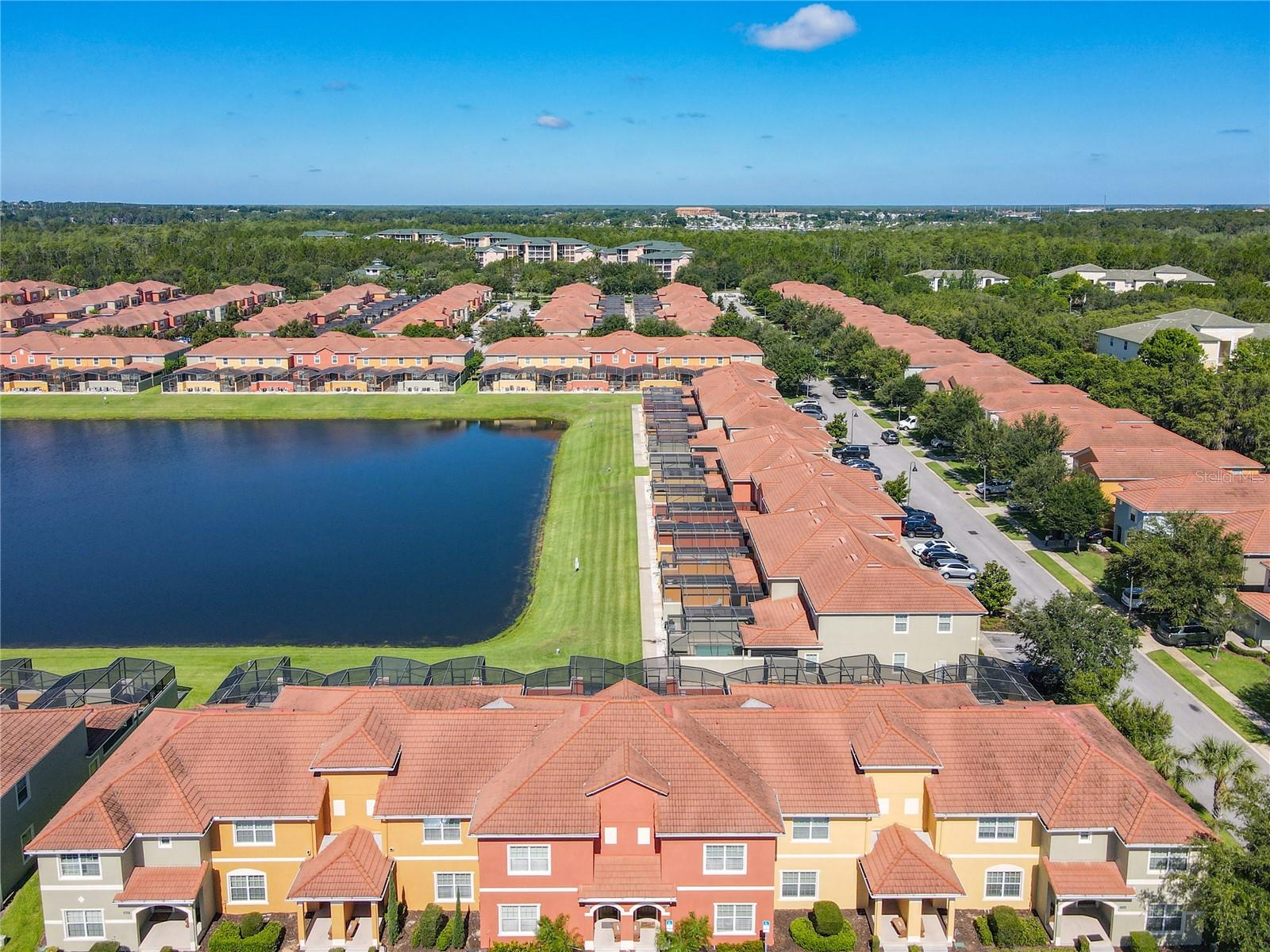 WOW!! 4/3 REMODELED townhouse on the exclusive Resort Style community "Paradise Palm Resort". Entirely furnished townhouse with Waterview and private pool. Modern design all over the place, living and dining room with brand new furniture, gourmet kitchen with granite countertop and breakfast bar, brand new luxury vinyl floor bedroom with 3 closet & 1 full bathroom. The elegant recently done stair will take you to a spacious second floor all new Luxury water resistant vinyl floors in hallway and bedrooms, the spectacular master bedroom with in-suite bathroom offers brand new furniture, drapes & energy efficient LED lighting fixtures, night lamps with usb-cell phone charger. The en-suite bathroom with double sink, shower-tub combination and private toilet room for a unique privacy. the hallway will lead you to bedrooms 2 where the magic of Disney comes alive, all furnished and Disney themed but keeping a modern touch. Bedroom 3 all furnished, and Marvel themed for the younger. a private and elegant hallway bathroom with dual sink and private toilet-shower room. The lanai offers a secluded pool area with outdoor furniture and grill with a stunning view to a pond. This home is perfect for vacation rental, airbnb, vacation home or for all resort lifestyle lovers. Paradise palm resort has many amenities such as lagoon style pool with slides, 2 hot tubs, pool bar, kid's water splash, tennis court, basketball court, volleyball court, clubhouse, gym, sauna, convenient store and a wonderful movie theater with daily showings. Brand new A/C installed on March 2023. This amazing home is located close to shopping plazas, restaurants, water park, major highways and 10 minutes away for the MAGICAL WORLD of Walt Disney World theme parks. you can' miss this opportunity to live on a resort style place. schedule your showing today.