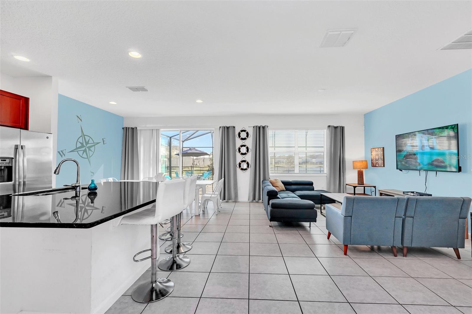 This beautiful FULLY FURNISHED VACATION HOME is now available at BellaVida Resort!!! This lakeview 8br 5bth modern home features a impressive 2-level open floorplan with 2 living areas, allowing your guests to enjoy a relaxing vacation without feeling on top of each other. In the kitchen you will find luxurious features such as solid surface countertops, solid wood cabinets, and stainless-steel appliances. To accommodate the extra guests this home can house, 2 refrigerators and 2 dishwashers are included!!! On the first level you will find the main living area, kitchen, master bedroom, and a guest room. Upstairs is the 2nd living area and 6 additional bedrooms!!! Walk outside and you will find a lake view, enclosed patio, and private swimming pool. Bellavida Resort also features several great amenities. These amenities include a clubhouse, community pool, fitness room, game room, movie theater, and more!!!