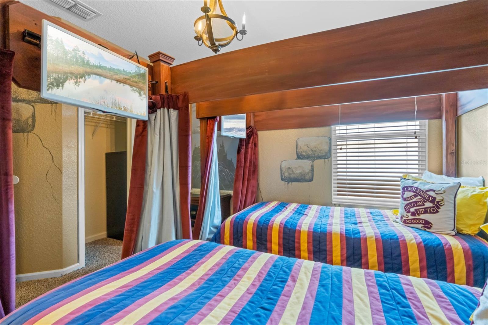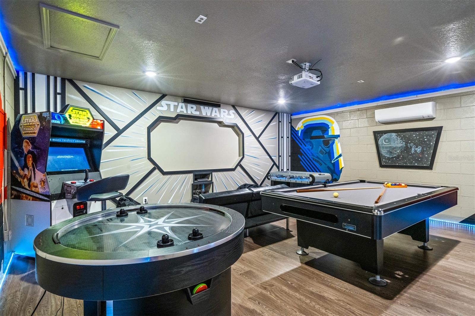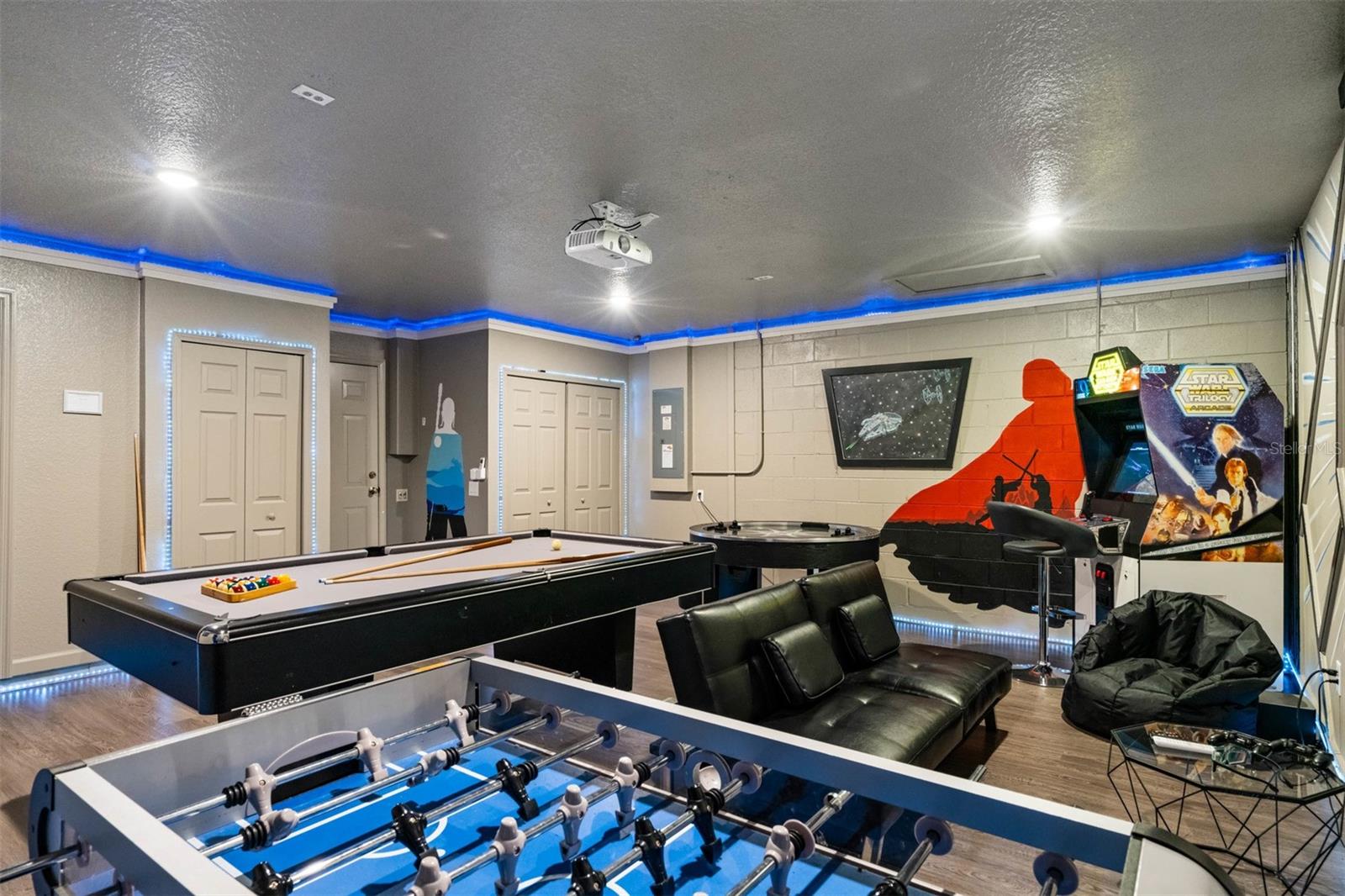 Attention investors! You now have the opportunity to own one of the top producing homes in Windsor Hills. Already managed by a top producing company for vacation rentals, high end rental rates and has future bookings! Windsor Hills is only minutes from Central Florida's World renowned Walt Disney World Resorts, Universal Studios & Islands of Adventure, Sea World & Aquatica theme parks and a vast array of restaurants and shopping. Upon entry is the welcoming foyer with over 17 ft ceiling. Beyond that is a spacious, bright, and open plan, family room with sliding patio doors opening onto the sunny expansive paved pool deck and sparkling pool with hot. There is a full bathroom for each of the five bedrooms themed rooms. In addition, the garage is a fully converted Galaxy Themed game room with a projection screen, pool table, air hockey, foosball table, and Star Wars Arcade game. This home is short walk from the amazing Windsor Hills Clubhouse, the heart of Windsor Hills. Community amenities include, a double olympic-size pool, spiral waterslide & hot tub, Marketplace & grill, 40-seat movie theater, tennis courts, basketball court, sand volleyball court, putting green, and castle-themed playground.