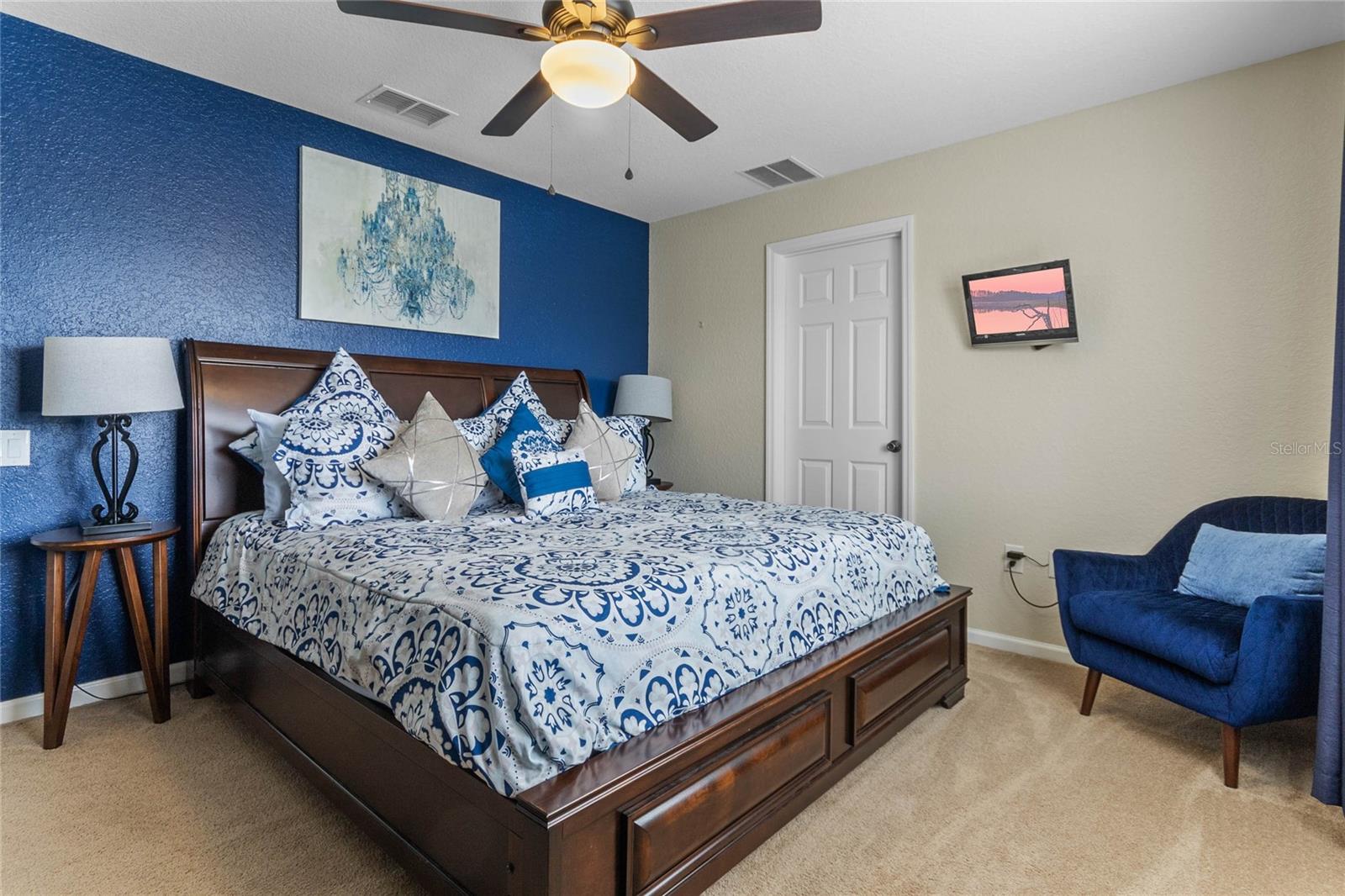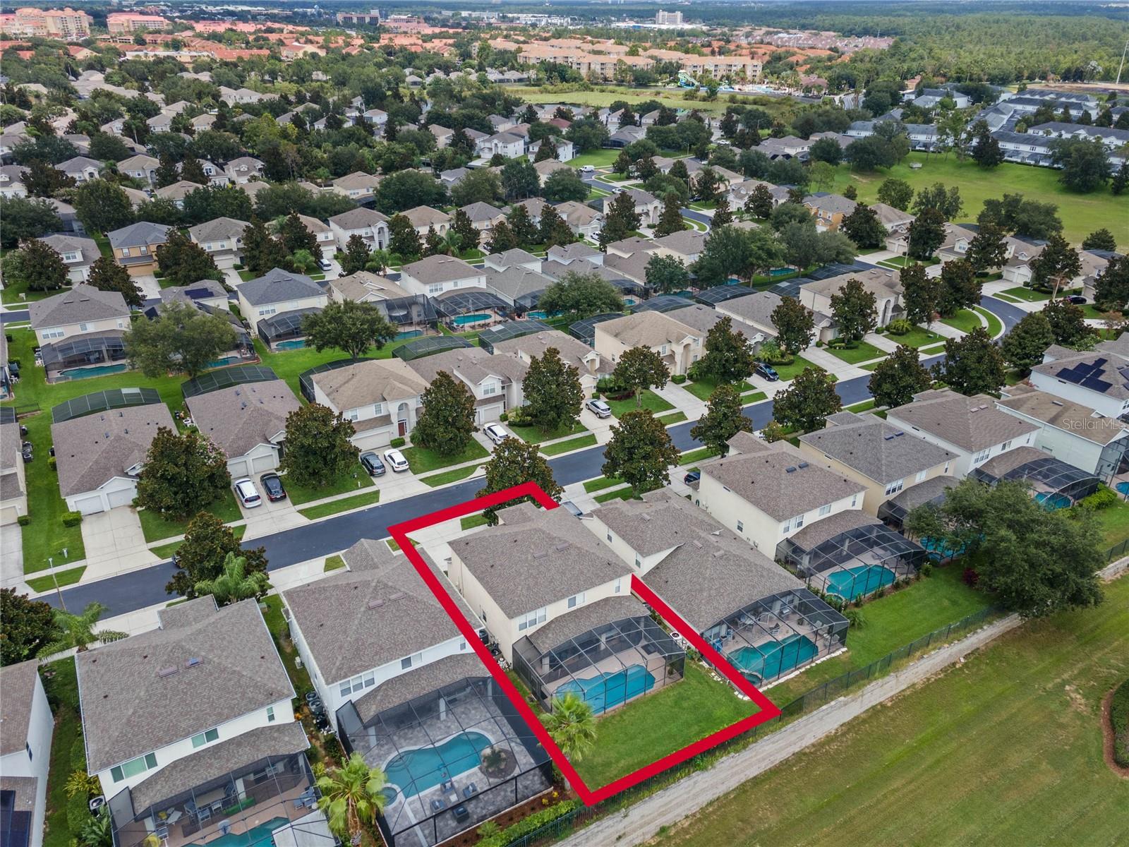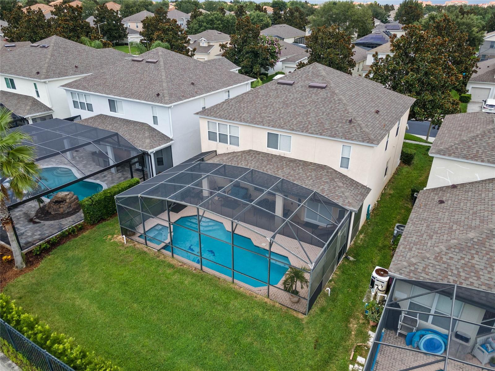 Presenting the Exquisite Windsor Estate, an embodiment of unparalleled luxury and refined living. This stunning 6-bedroom, 4-bathroom property stands as a testament to opulence at its finest. Immerse yourself in the grandeur of a large south-facing heated pool and whirlpool, encased within a screened-in sanctuary of privacy. With no rear neighbors and meticulously placed privacy screens on both sides of the pool deck, an exclusive and serene ambiance is guaranteed. The lavish estate has been thoughtfully curated, boasting a professionally decorated Game Room with its own dedicated air conditioning unit, ensuring optimal comfort for your entertainment pleasures. A main floor bedroom and a luxurious master suite, accompanied by four additional bedrooms upstairs, provide generous space for ultimate relaxation. The expansive master bathroom serves as a sanctuary of indulgence, while flat-screen televisions adorn each bedroom, the family room, and the living room, enhancing the ambiance of innovative entertainment. This magnificent property is offered fully furnished, presenting an exceptional investment opportunity as a luxurious Airbnb, ready to welcome discerning vacationers. With a new roof installed in April 2019 and a history of meticulous owner use, this residence showcases impeccable maintenance and is in impeccable condition. Additional upsides include brand new AC units ($15k each) and a pool pump replaced only three years ago. The widened driveway, mature landscaping, and no rear neighbors, coupled with the allure of a south-facing pool, add to the property's allure. Nestled within the distinguished Windsor community, residents enjoy access to a wealth of resort-style amenities, including a large pool, exhilarating slide, rejuvenating whirlpool, well-equipped gym, tennis courts, volleyball, putting green, barbecue area, movie room, and a convenient sundry shop. The community's guarded gate ensures utmost safety and security, creating an environment of tranquility and peace of mind. Embrace a truly extraordinary atmosphere and elevate your lifestyle to unparalleled heights at the Exquisite Windsor Estate.