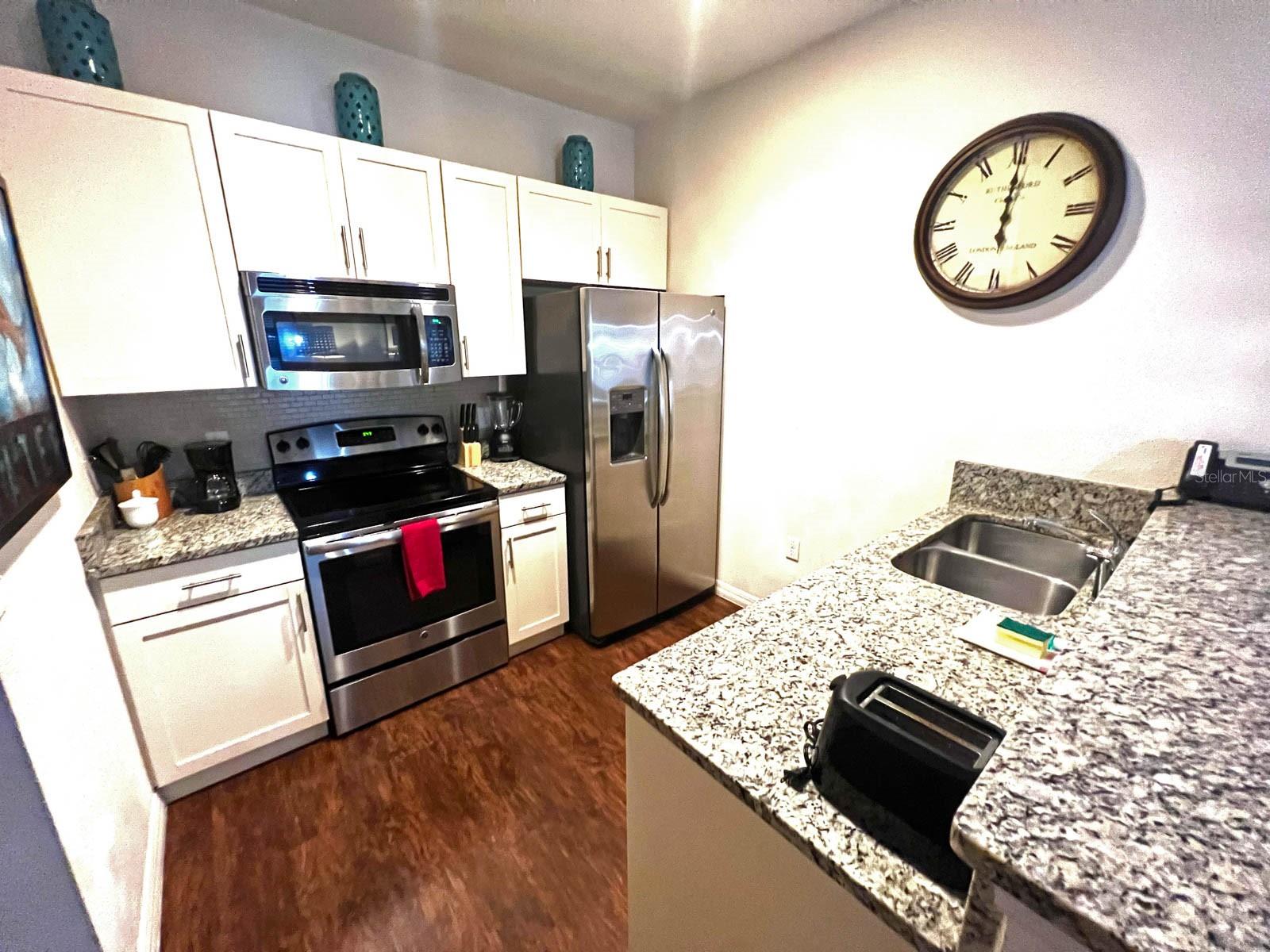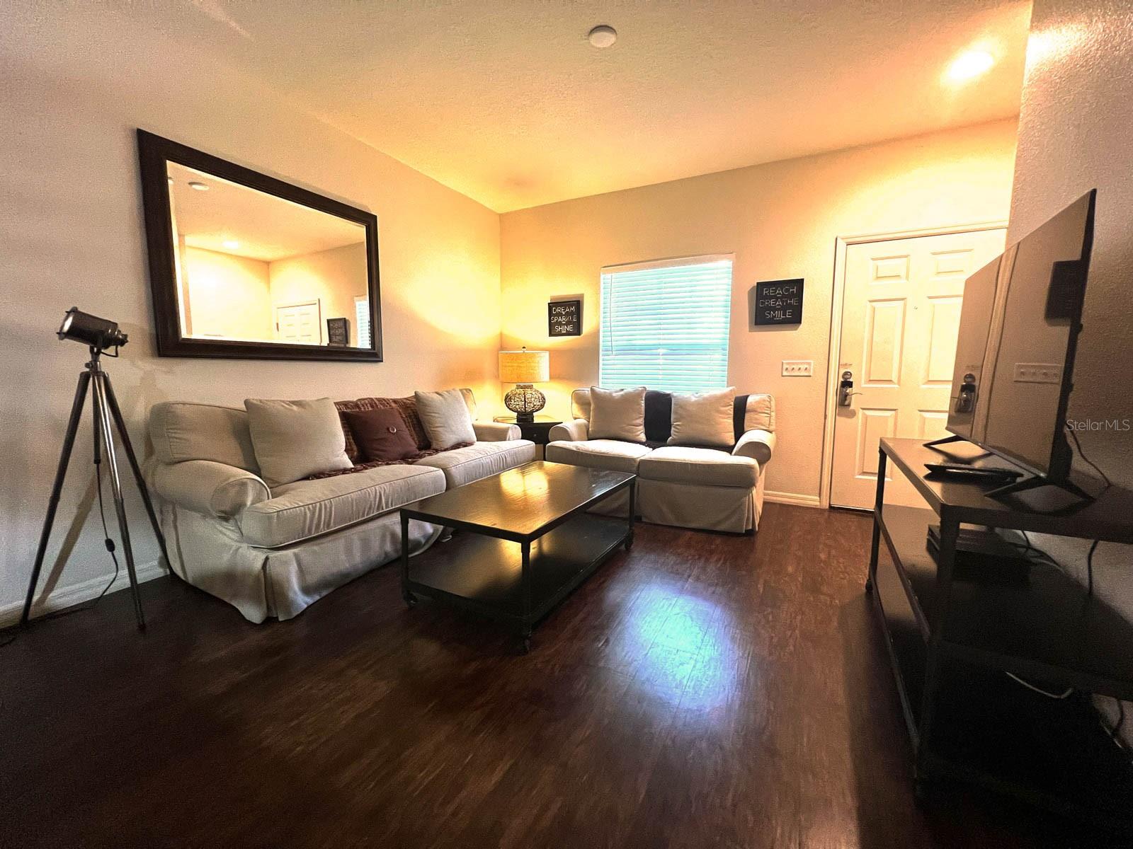 Welcome to this beautiful townhouse in the exclusive GATED Lucaya Village community, boasting resort-style amenities. Step inside to discover a spacious open-concept living room, dining area, and kitchen with elegant granite countertops and modern stainless steel appliances. Convenience meets luxury as the master suite awaits on the main floor, while upstairs houses two bedrooms, a bathroom, and a laundry closet. Outside, the community's clubhouse offers a plethora of entertainment options, including a pool, gym, playroom, cafe, playground, multi-sports court, and a barbecue pavilion—a haven for social gatherings and fun-filled days. Located near Disney, restaurants, and shopping, this townhouse combines accessibility with an array of leisure activities, making it an ideal destination for relaxation and adventure. Experience the ultimate blend of comfort and sophistication in this exceptional townhouse, where cherished memories are waiting to be made.
