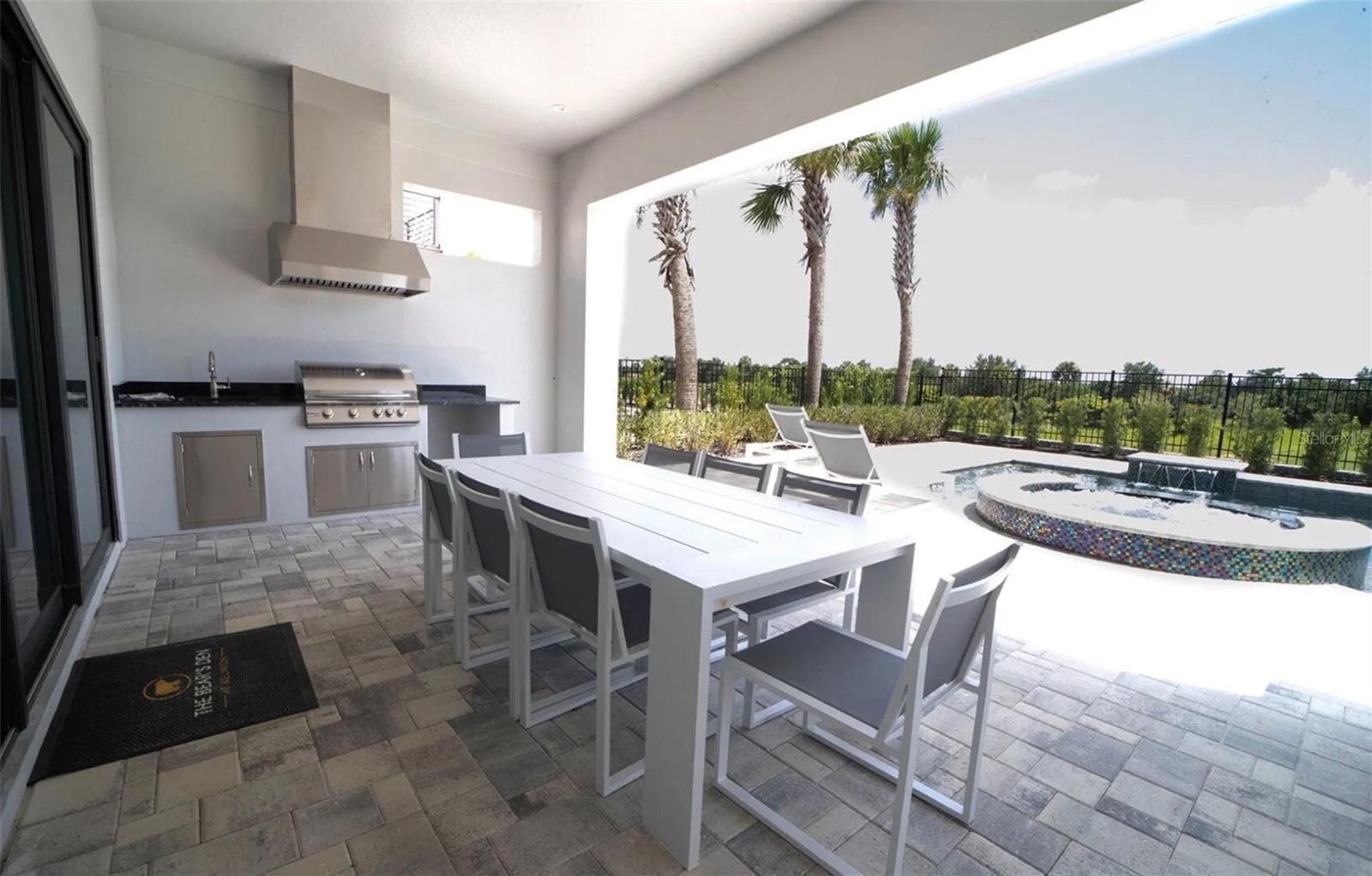 Another rare opportunity to own a home in the EXCLUSIVE ENCLAVE of the Bear's Den under $2M. Beautiful spacious layout to this FULLY FURNISHED 5BR executive home featuring a great GOLF VIEW beyond the POOL & SPA. It also features a great outdoor relaxation lanai area with POOL BATH and also a private area for dining inside. Keep this home as is or turn into your own gold mine of rental income. TRANSFERRABLE MEMBERSHIP is on the home to make available to the many guests coming or your own self enjoyment. Literally steps away to the fantastic Reunion Resort WATER PARK, TRADITIONS CLUB HOUSE and RESTAURANT or the PRIVATE PARK right across the street are a few of the highlights for this home. Come and see, you won't be disappointed!
