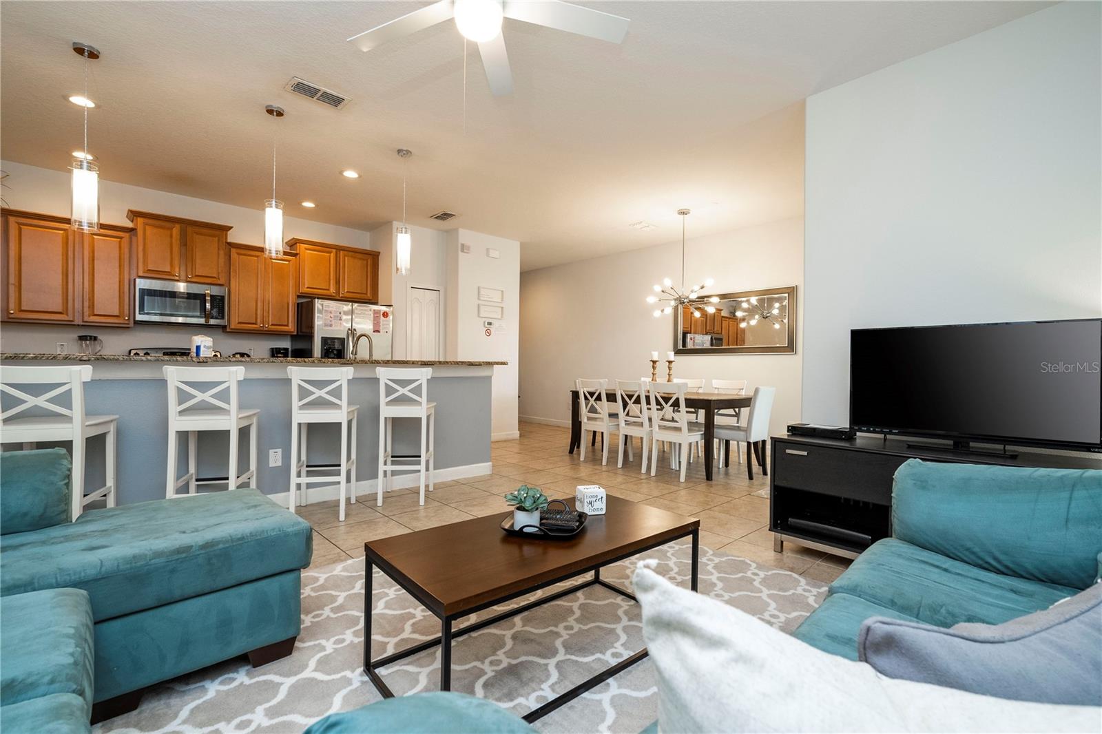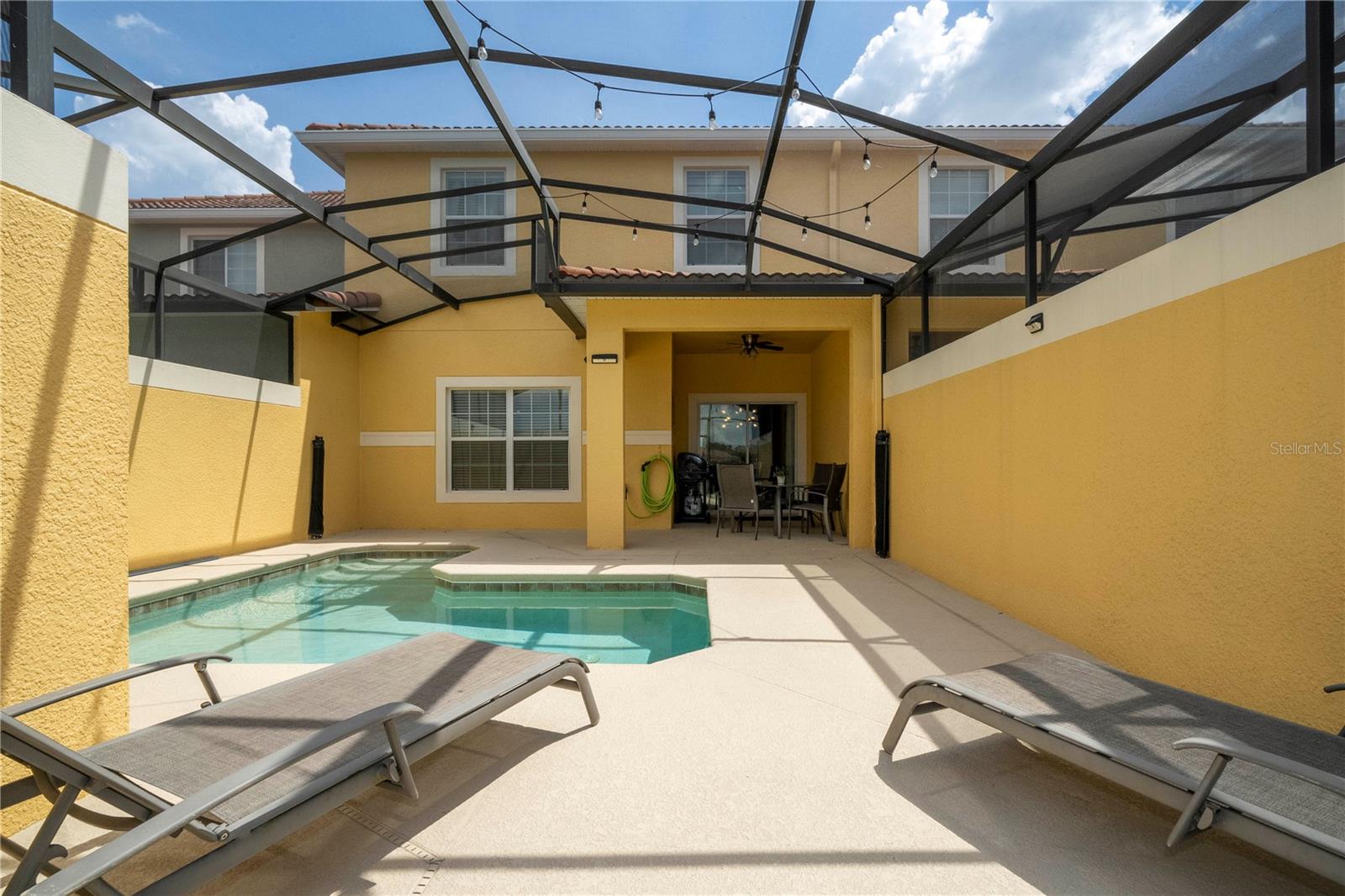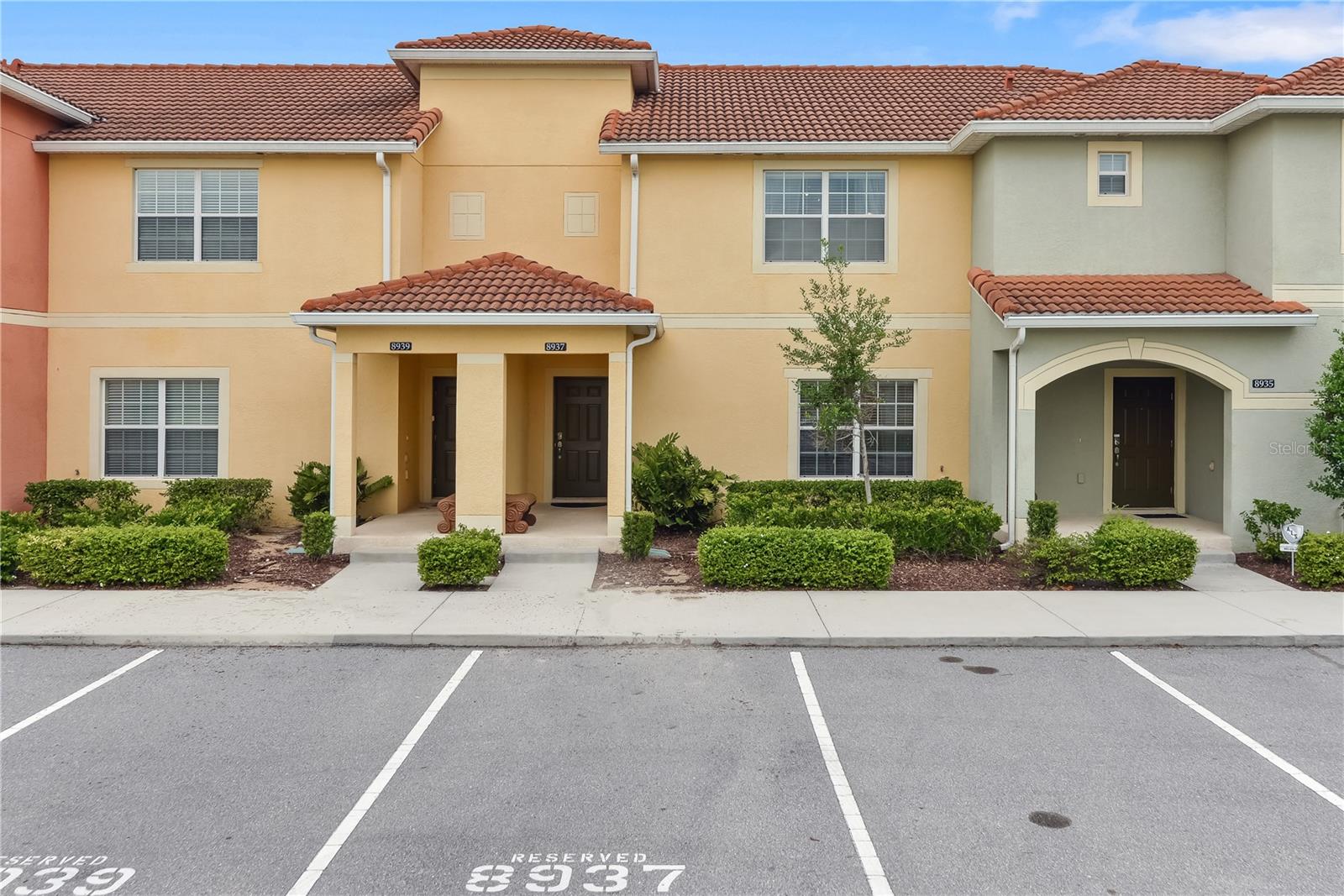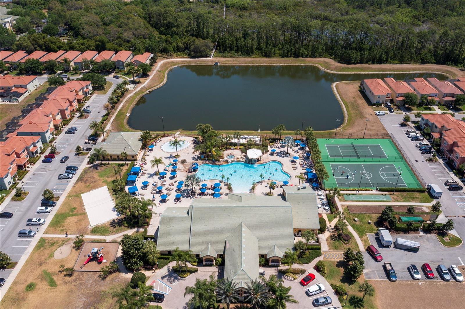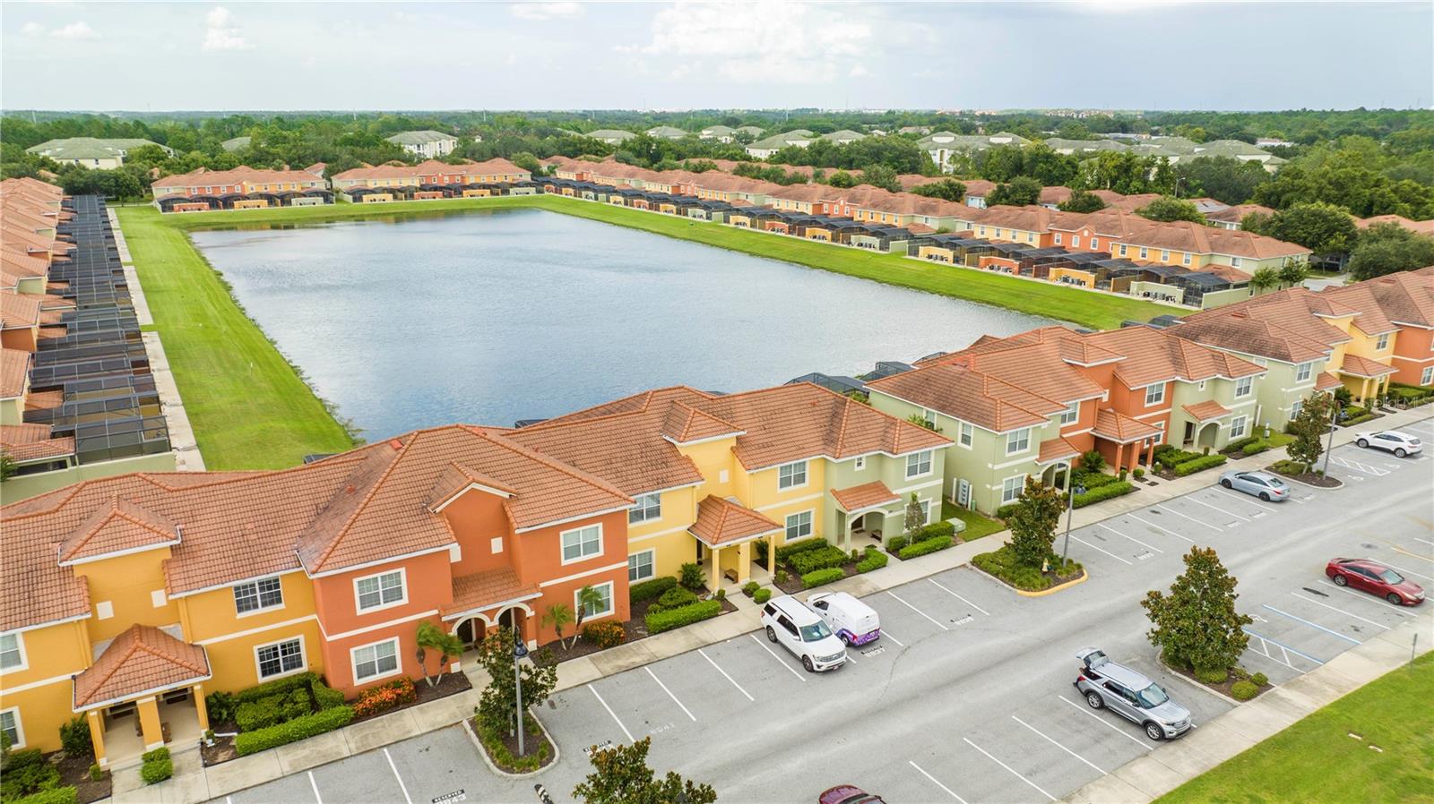 A GREAT OPPORTUNITY TO OWN THIS TOWNHOUSE! This 4-bedroom townhouse stands out from the rest being located just across from the clubhouse, with a private lake view. Paradise Palms is a great resort-style short-term rental community that has some of the best amenities. These amenities include a huge resort pool, tennis courts, movie theater, convenience store, fitness center, sauna, and playground. This home is fully furnished and already in the short-term rental program generating income. The HOA recently painted the entire community so you'll have a fresh new look for all the townhouses. Only minutes from Walt Disney World, Universal Studios, and close to popular shopping and restaurants. This home is perfect as a rental investment.