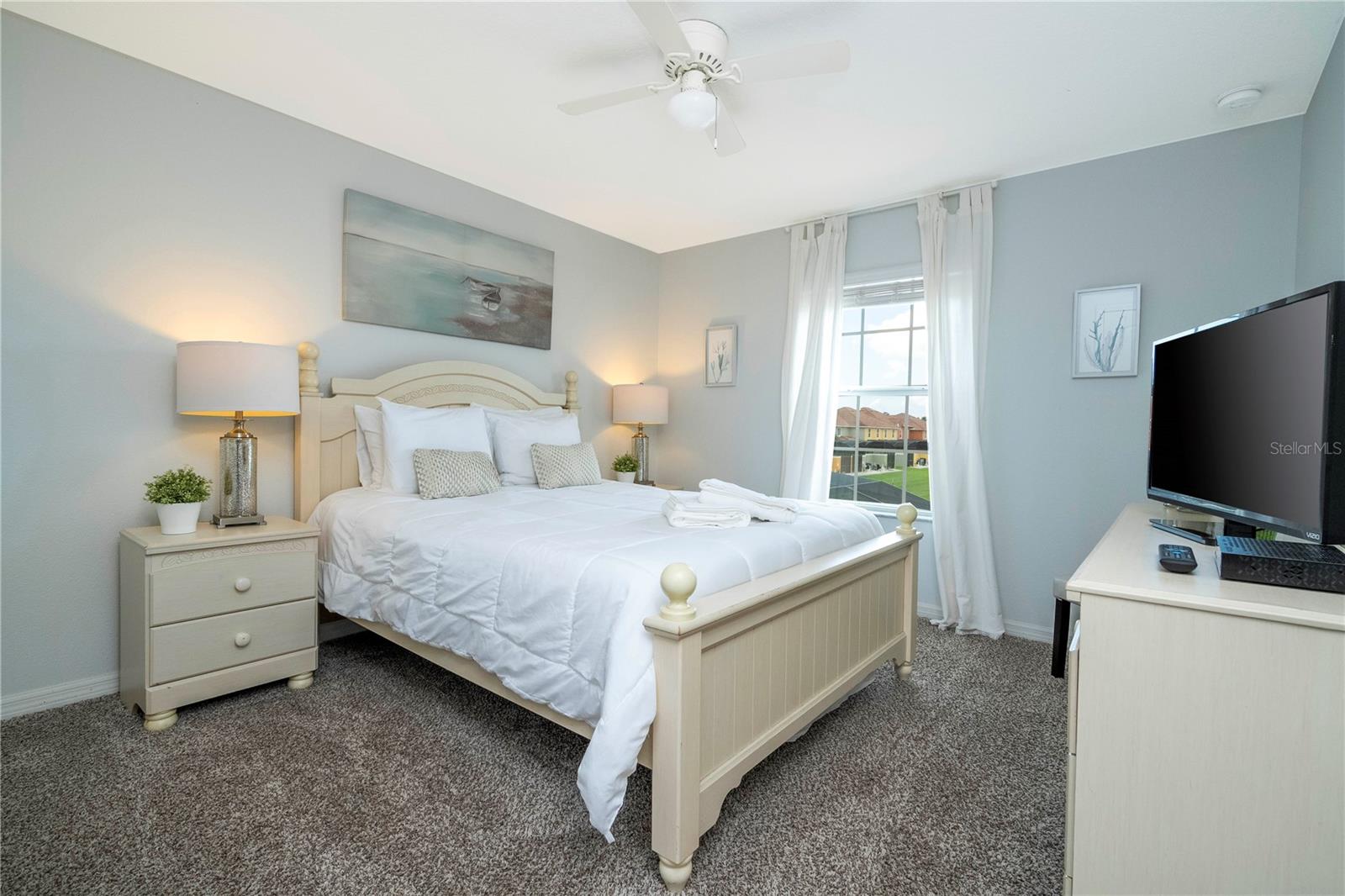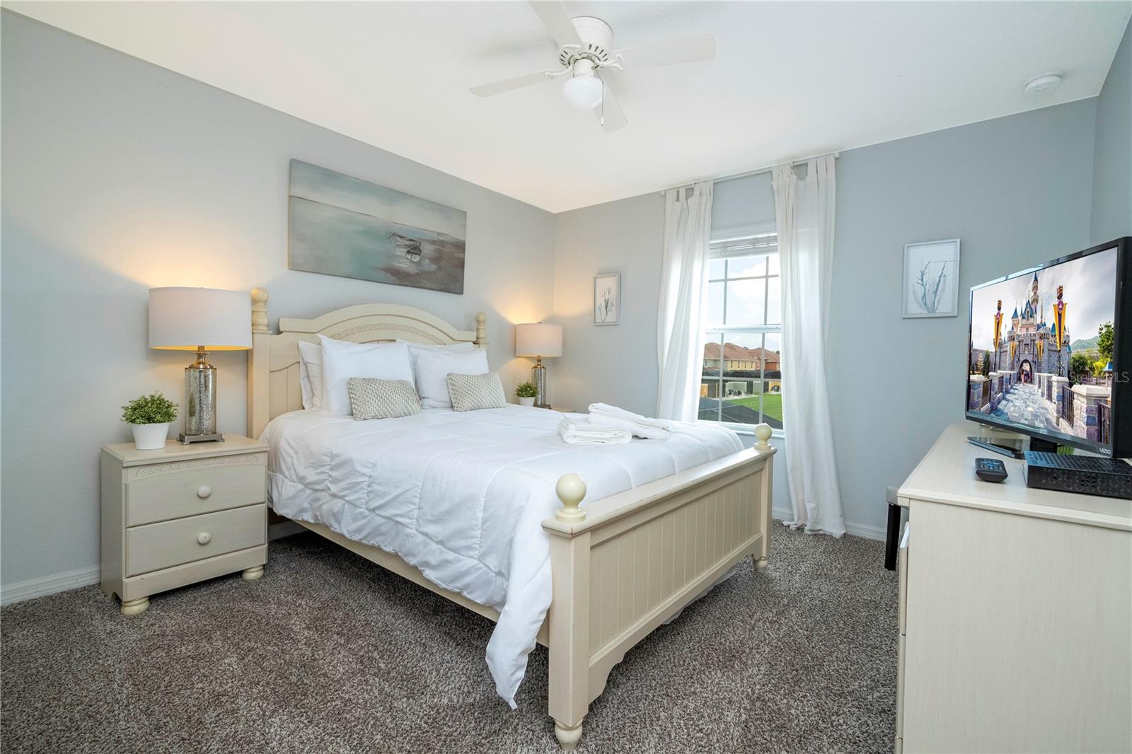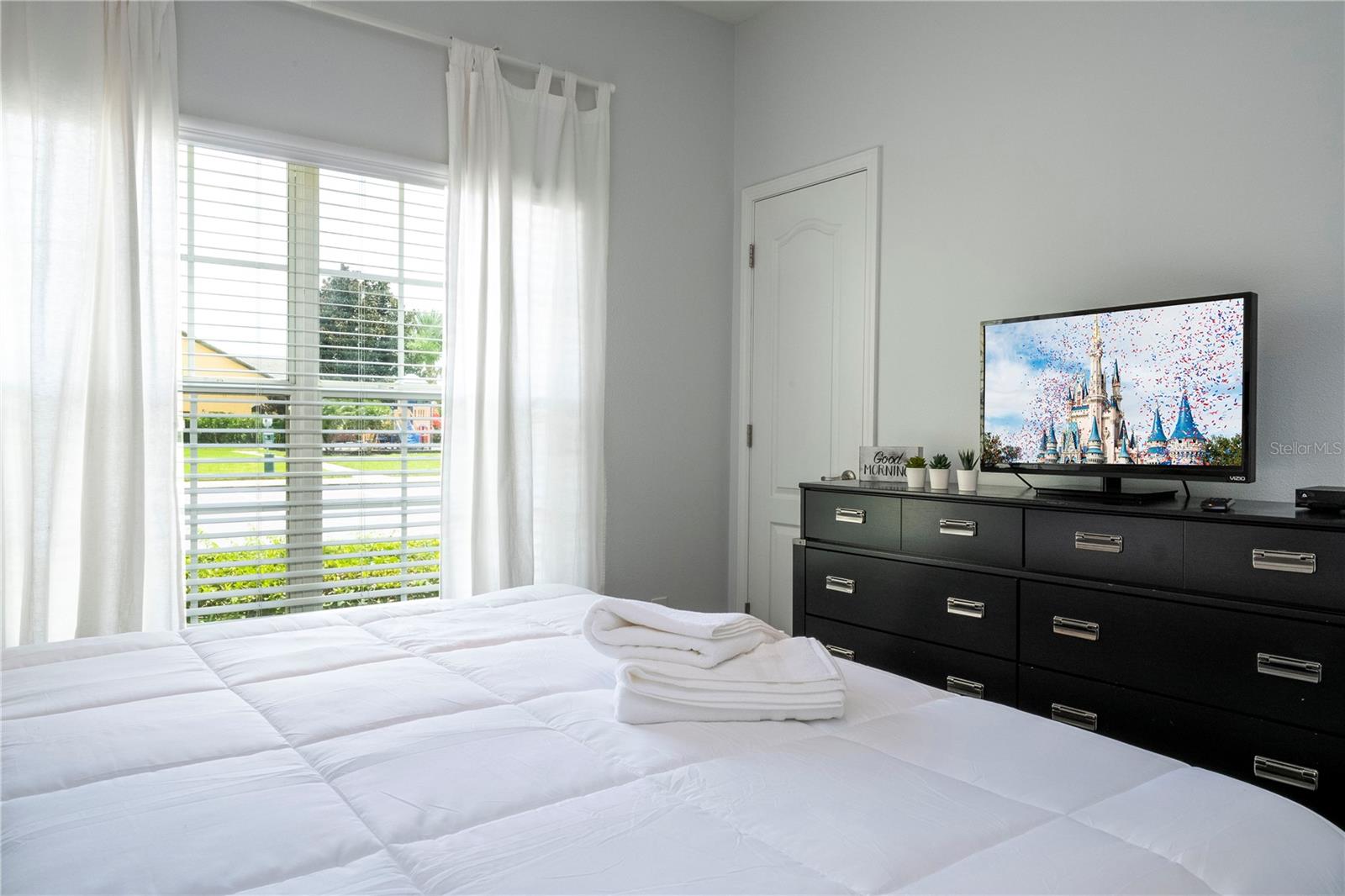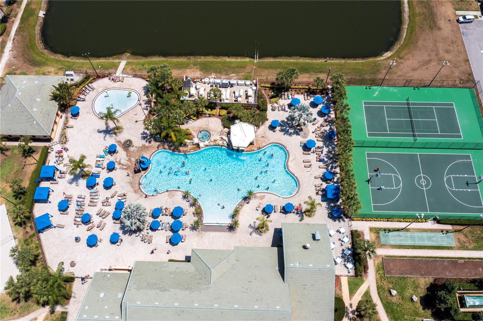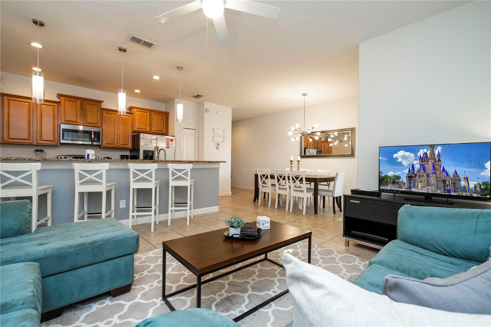 A GREAT OPPORTUNITY TO OWN THIS TOWNHOUSE! This 4-bedroom townhouse stands out from the rest being located just across from the clubhouse, with a private lake view. Paradise Palms is a great resort-style short-term rental community that has some of the best amenities. These amenities include a huge resort pool, tennis courts, movie theater, convenience store, fitness center, sauna, and playground. This home is fully furnished and already in the short-term rental program generating income. The HOA recently painted the entire community so you'll have a fresh new look for all the townhouses. Only minutes from Walt Disney World, Universal Studios, and close to popular shopping and restaurants. This home is perfect as a rental investment.