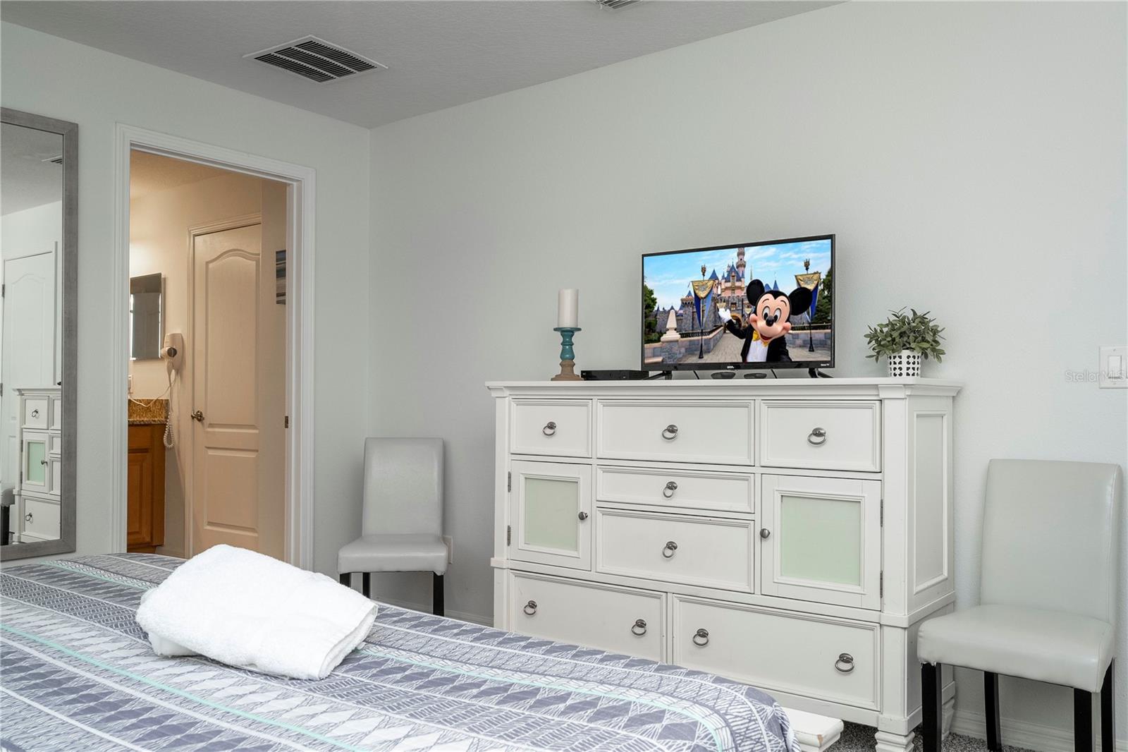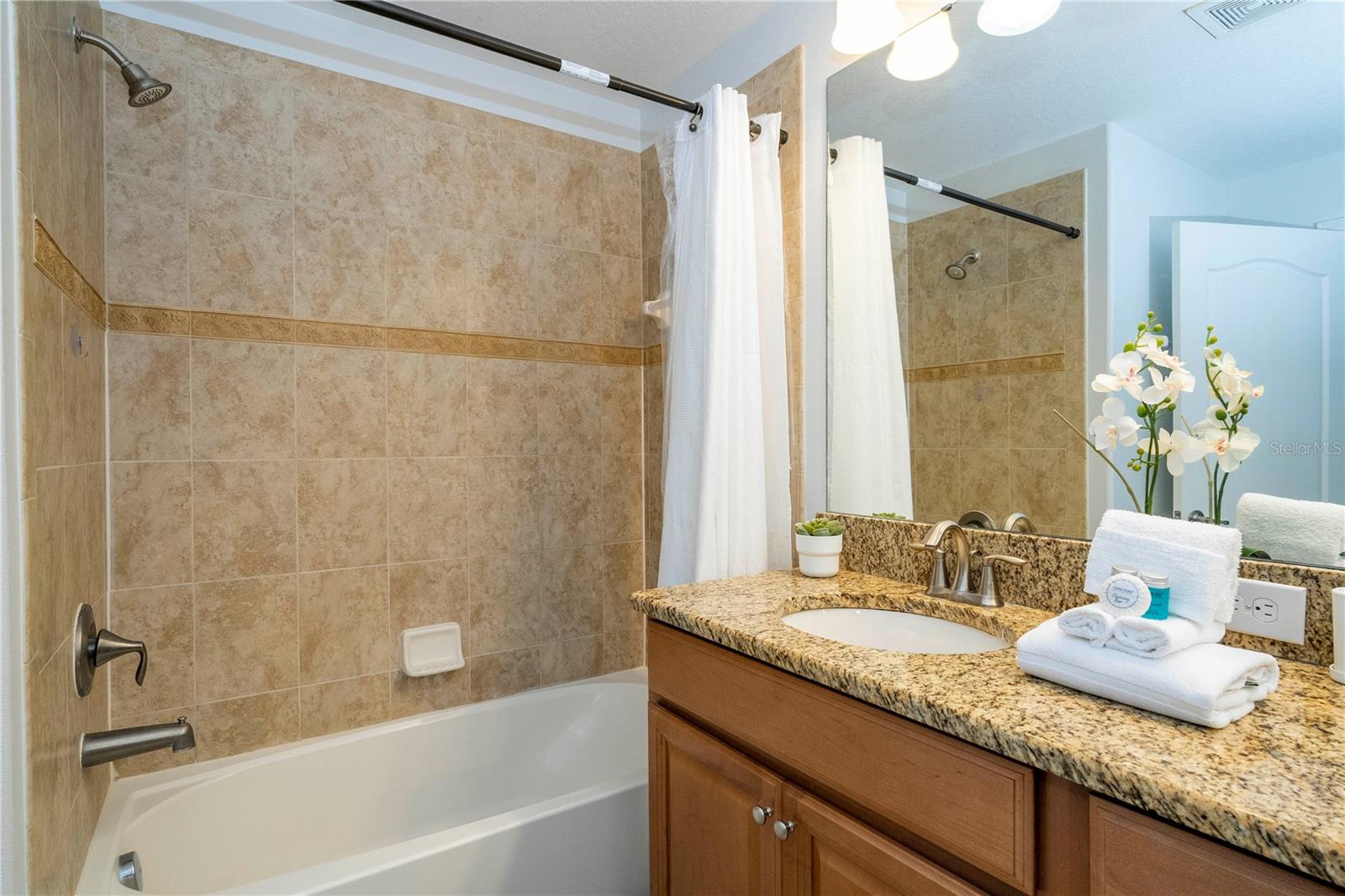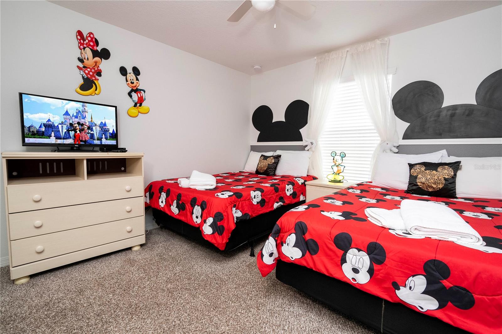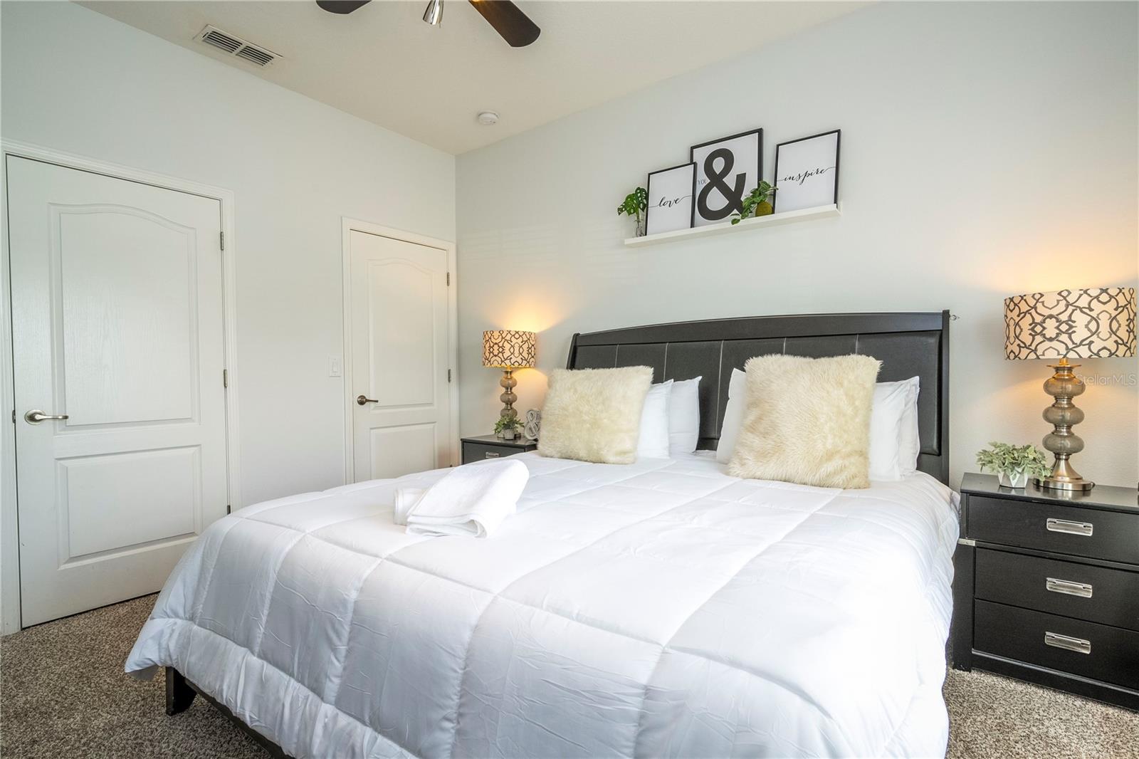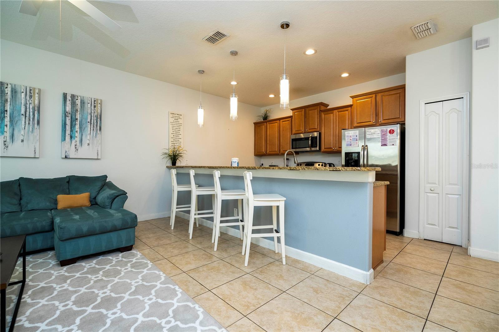 A GREAT OPPORTUNITY TO OWN THIS TOWNHOUSE! This 4-bedroom townhouse stands out from the rest being located just across from the clubhouse, with a private lake view. Paradise Palms is a great resort-style short-term rental community that has some of the best amenities. These amenities include a huge resort pool, tennis courts, movie theater, convenience store, fitness center, sauna, and playground. This home is fully furnished and already in the short-term rental program generating income. The HOA recently painted the entire community so you'll have a fresh new look for all the townhouses. Only minutes from Walt Disney World, Universal Studios, and close to popular shopping and restaurants. This home is perfect as a rental investment.