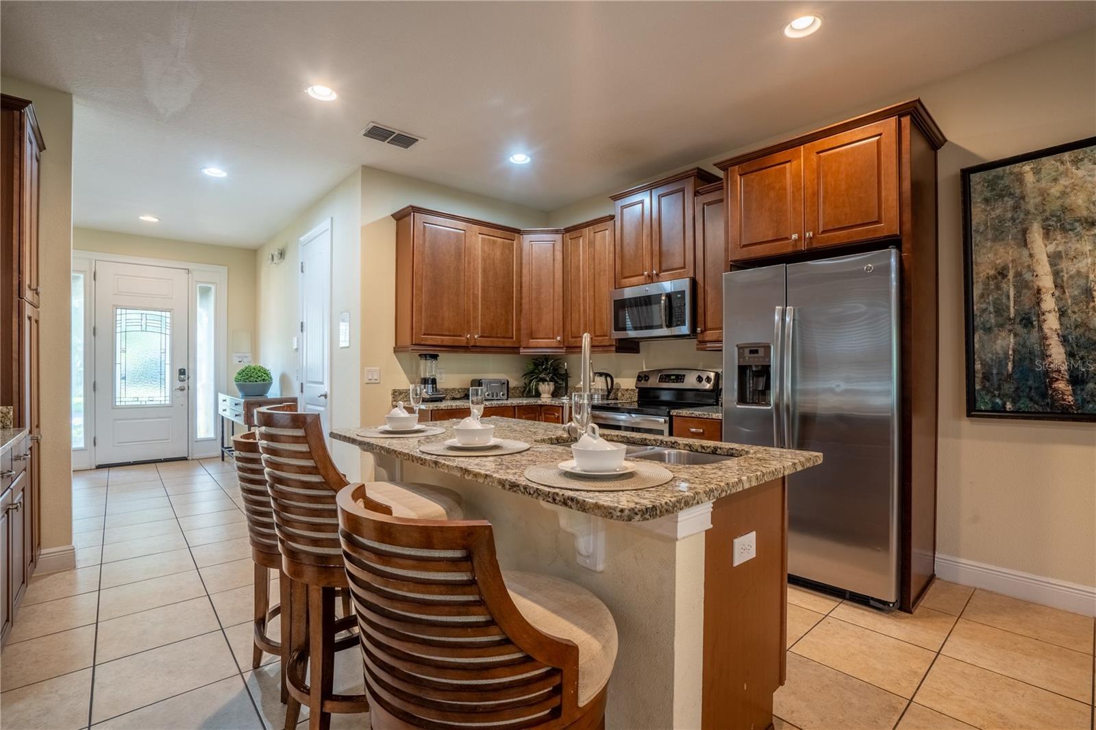 Location! Location! Location! An incredible opportunity awaits with this remarkable 8-bedroom, 7-bathroom POOL home nestled in the highly desirable Encore Club at Reunion Resort also known as Reunion West located less than 10 minutes away from Disney World. This is a fully furnished gem, exquisitely decorated with Tommy Bahama® furnishings. Of the 8 bedrooms 2 of them are master suites. Key features include a first-floor master bedroom, a 2-car garage which has been turned into a game room, an additional living/media room upstairs, an additional master suite upstairs, no rear neighbors, granite countertops throughout, energy-efficient stainless steel appliances, 9-ft ceilings, open floor plan, & luxurious pool and heated spa. For added convenience, you'll find the washer and dryer conveniently located upstairs, a beautifully paved driveway, and pool deck. This property makes the perfect vacation rental investment or a primary residence. All future bookings CONVEY! Additionally, you and your guests will relish in the luxurious amenities offered , including top-notch restaurants, bars, a marketplace, a thrilling water park featuring tube slides and an aqua park, tennis court, an arcade, basketball court, beach volleyball, a well-equipped weight room, private meeting rooms, and the security of a 24-hour manned gate. You don't want to miss out on the opportunity to own this beautiful property!