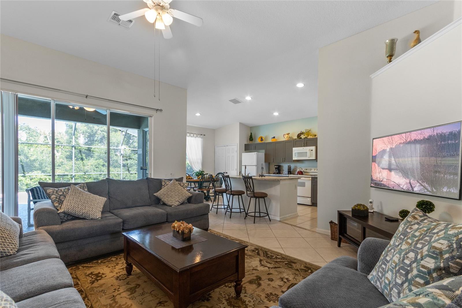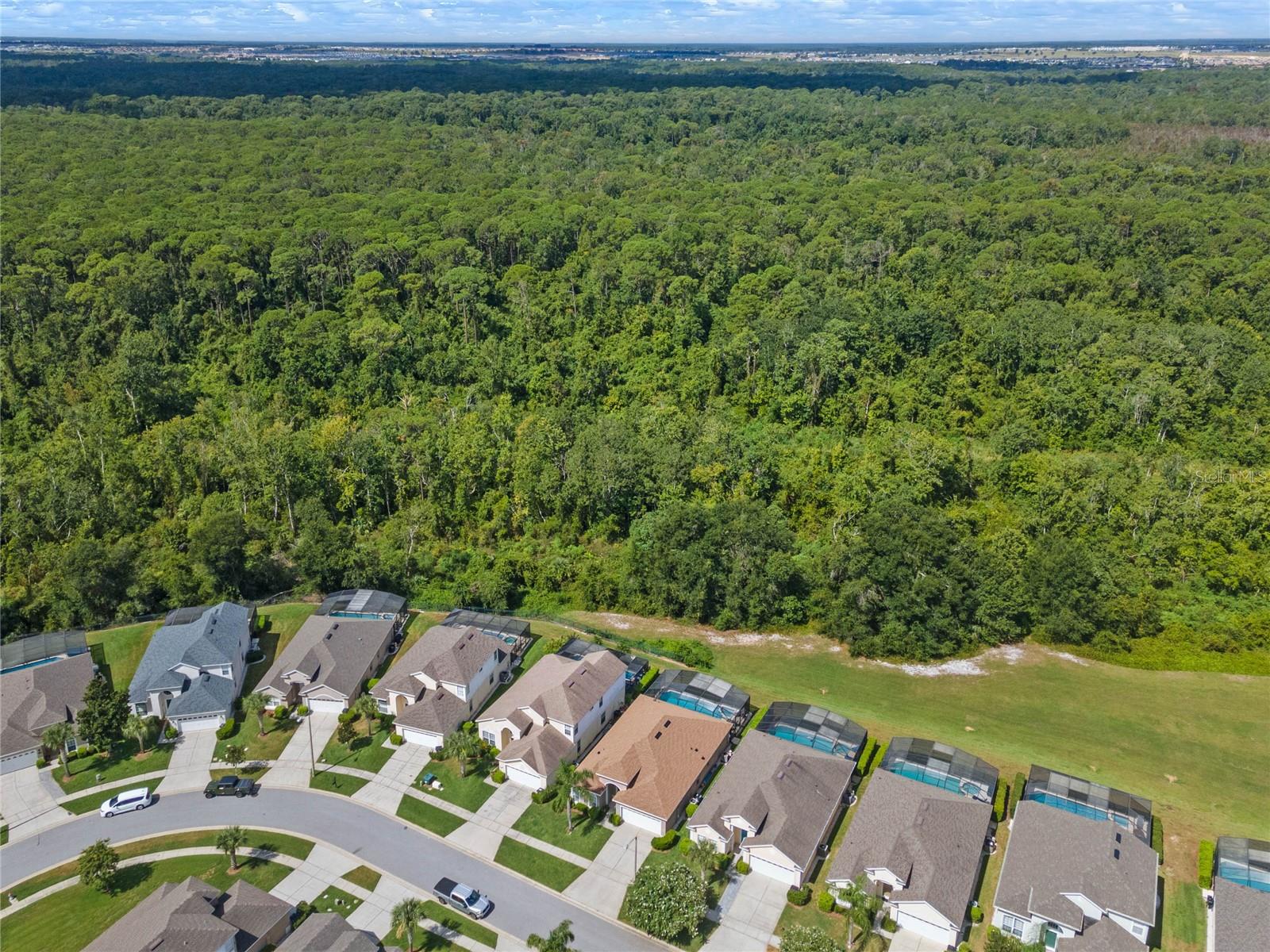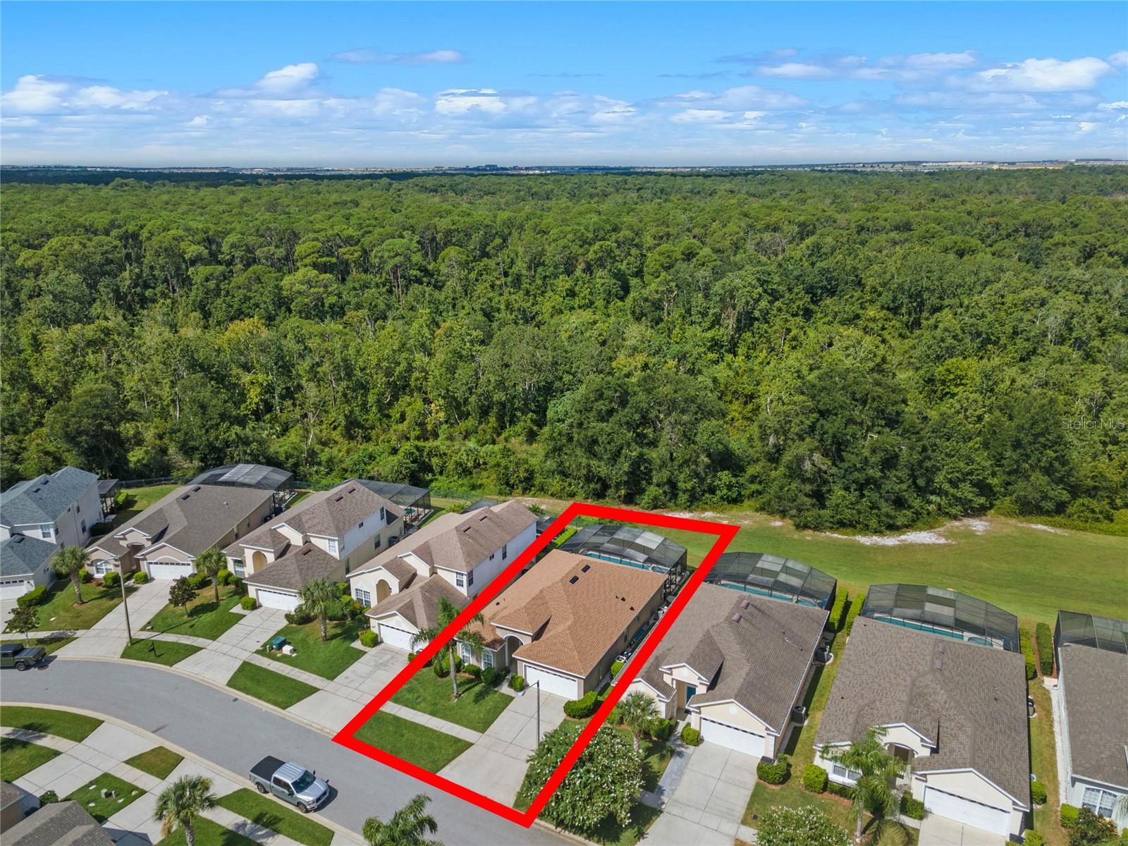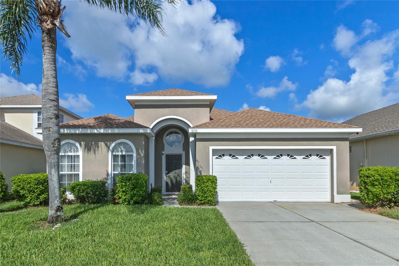 CONSERVATION VIEW TO THE REAR. NEW ROOF 2023. SALT WATER POOL/SPA. Here is a rare opportunity to purchase one of the few homes on Windsor Palms Resort that backs onto conservation land. Enjoy your morning coffee or evening meals outside while taking in the fantastic view and you might get lucky as the seller's have numerous times and see some wildlife walking by. For the sun loving vacationers, the pool and spa area enjoy the sun all day long. This well maintained 4 bedroom/3 bathroom single story home has a proven track record as an investment property. Some of the more recent upgrades include new dryer, new dishwasher, resurfaced swimming pool and spa, new kitchen cabinet doors, new kitchen countertops and new bedroom furniture. Both the primary bedroom and the second bedroom have ensuite bathrooms while the two twin bedrooms share the guest bathroom. The games room contains an eight foot slate bed pool table and table foosball for everyone's enjoyment when taking time away from the pool or nearby theme parks. Windsor Palms Resort is a gated community located close to all the theme parks in the area and onsite recreational facilities include a clubhouse with games room, movie theatre, sundry shop and fitness center. Also available in the clubhouse vicinity are tennis courts, basketball courts, a volleyball court, playground and BBQ area. The A/C was replaced in 2016. This one won't last long so schedule your private showing today.